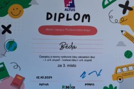 Žáci 8. a 9. tříd se mohli zúčastnit soutěže IT-SLOT, která probíhala ve dnech 05.11.–12.11. a zjišťuje znalosti z informatiky. V naší škole se přihlásilo celkem 33 žáků. Museli odpovědět na 25 otázek během 30 minut. Pro nominaci na celostátní kolo rozhodoval počet správných odpovědí a čas odeslání. Našim žákům se podařila krásná umístění, …