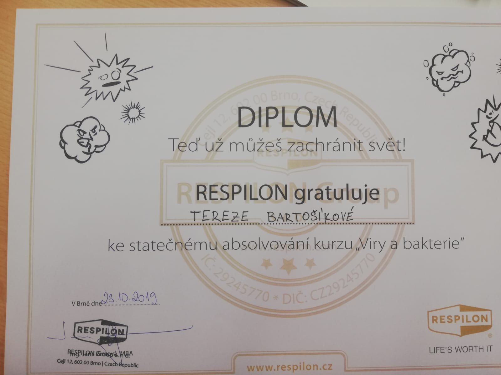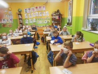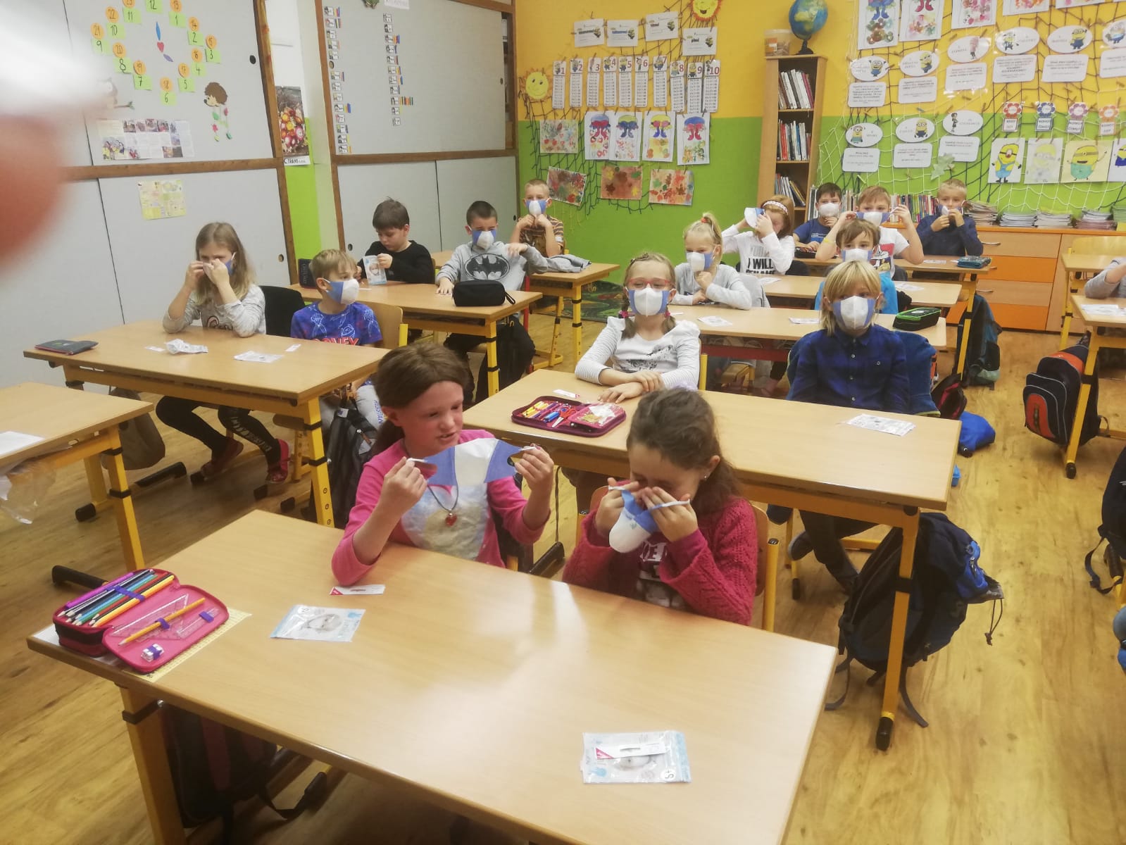 Ve středu 23. října jsme ve třídě měli zajímavou návštěvu. Přijeli za námi z firmy Respilon. Je to firma, která se zabývá výrobou ochraných roušek a šátků. Paní Zimová nám povídala o nanovláknu, které se do ochraných roušek a šátků používá. Vyzkoušeli jsme si roušky a dozvěděli se mnoho zajímavého i o projektech pro chudé děti z Afriky. A samozřejmě i pro české děti s onkologickým nebo jiným onemocněním.