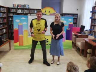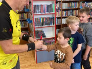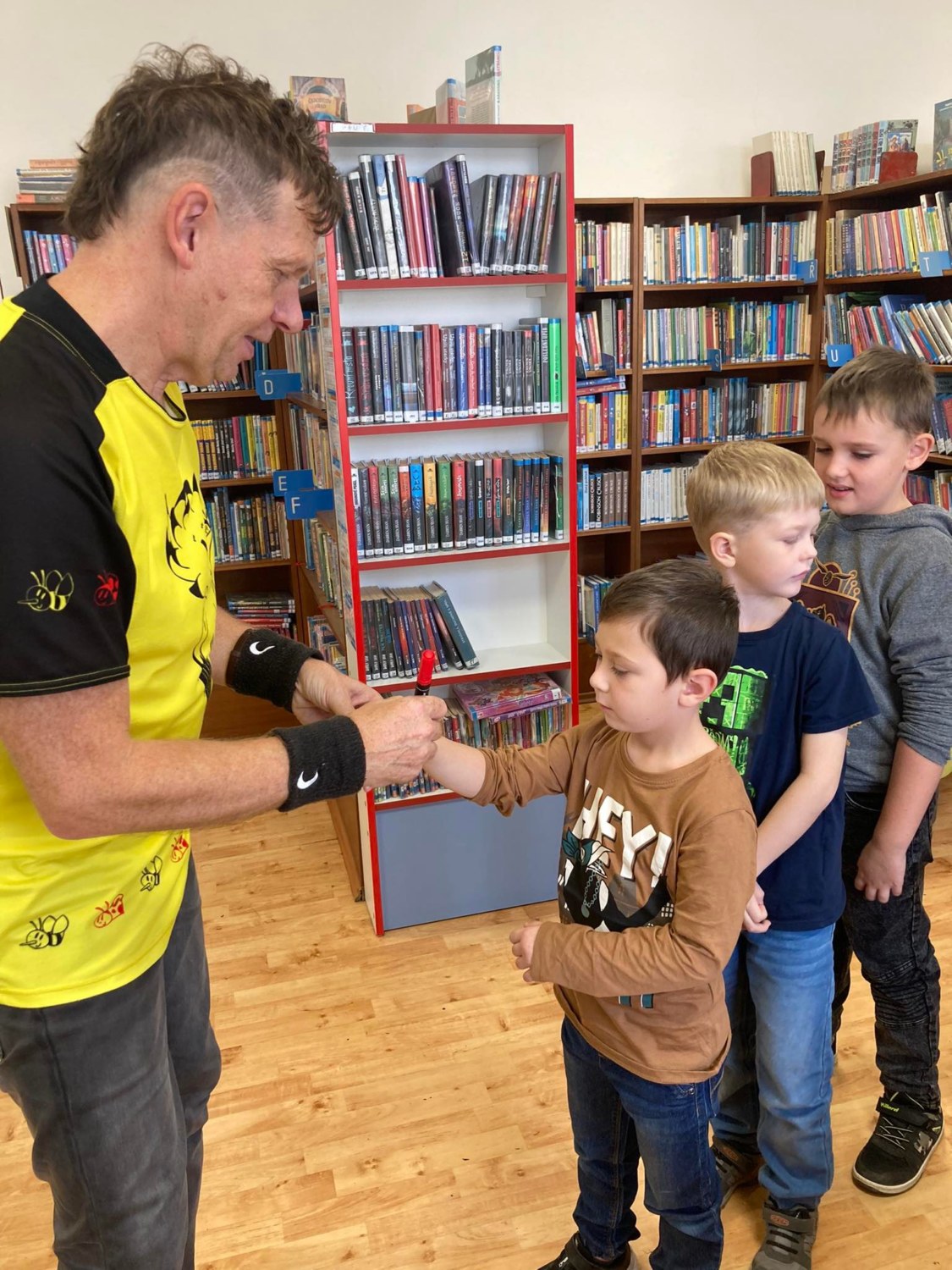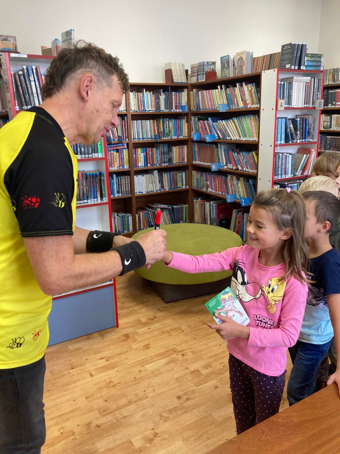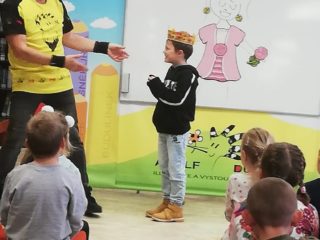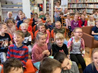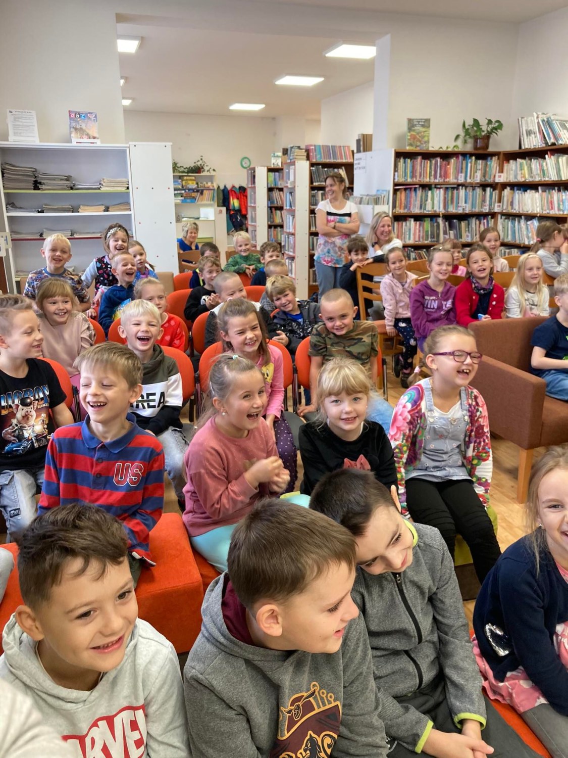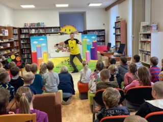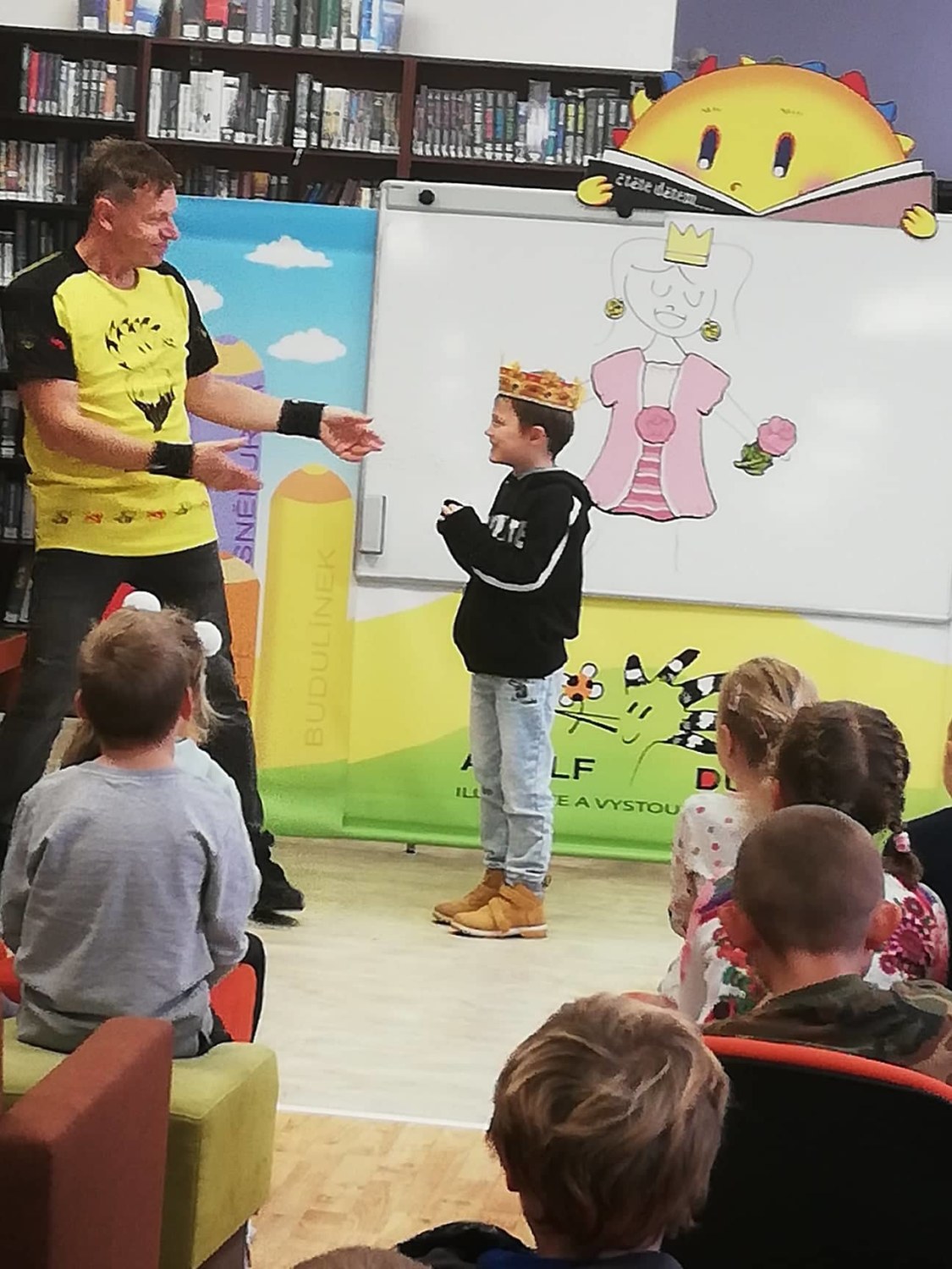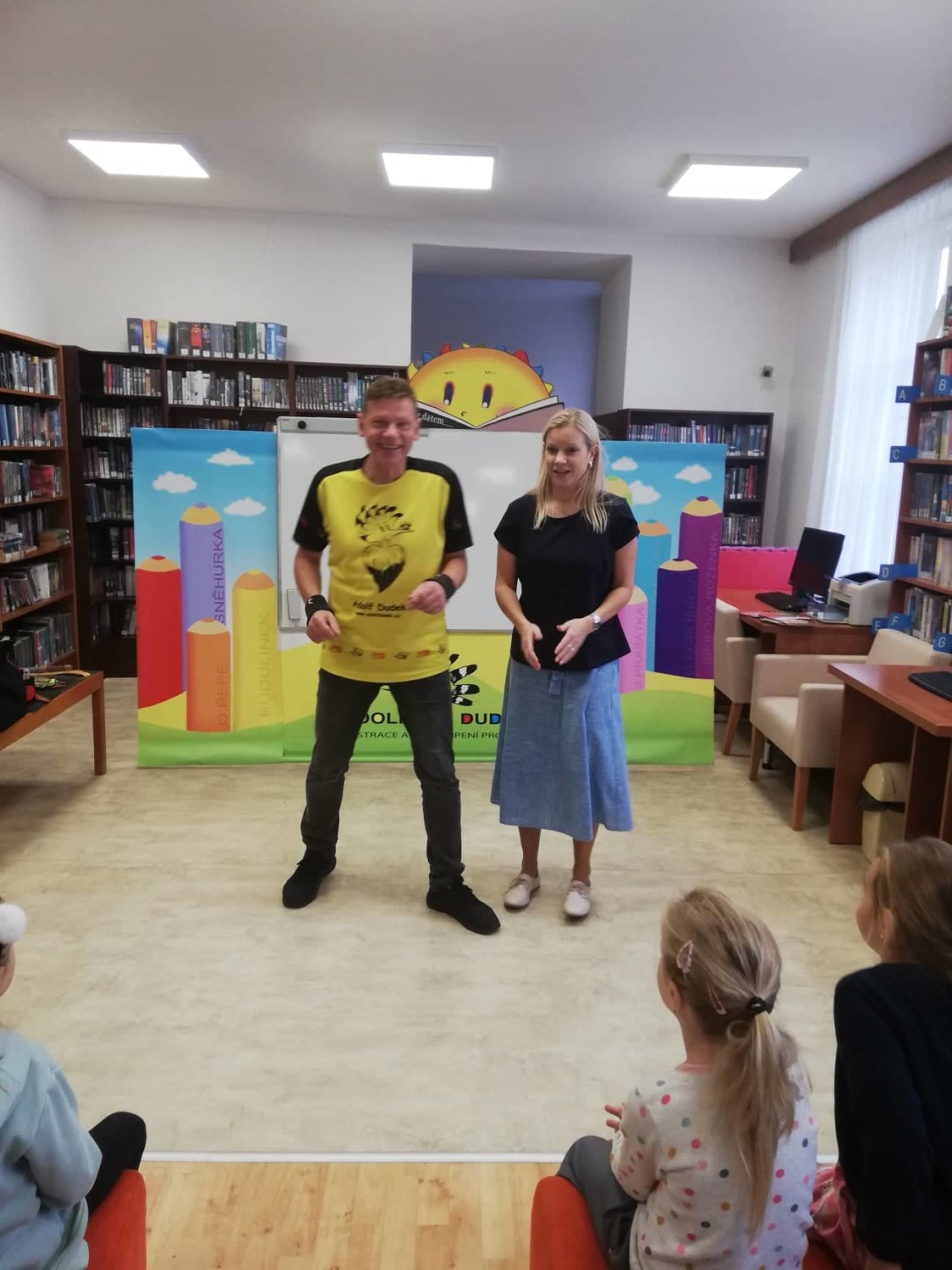 Knihovna v Lanškrouně nám nabídla, abychom přišli na besedu s ilustrátorem Adolfem Dudkem. To je nabídka, která se neodmítá. Pan Dudek je neskutečný šoumen, který rozdává hodně radosti. Děti prožily hodinu plnou aktivit, pohybu a především smíchu. Na závěr pan Dudek udělal dětem autogramiádu, kdy se jim podepsal a namaloval svojí“ podobu“ – ptáka dudka.