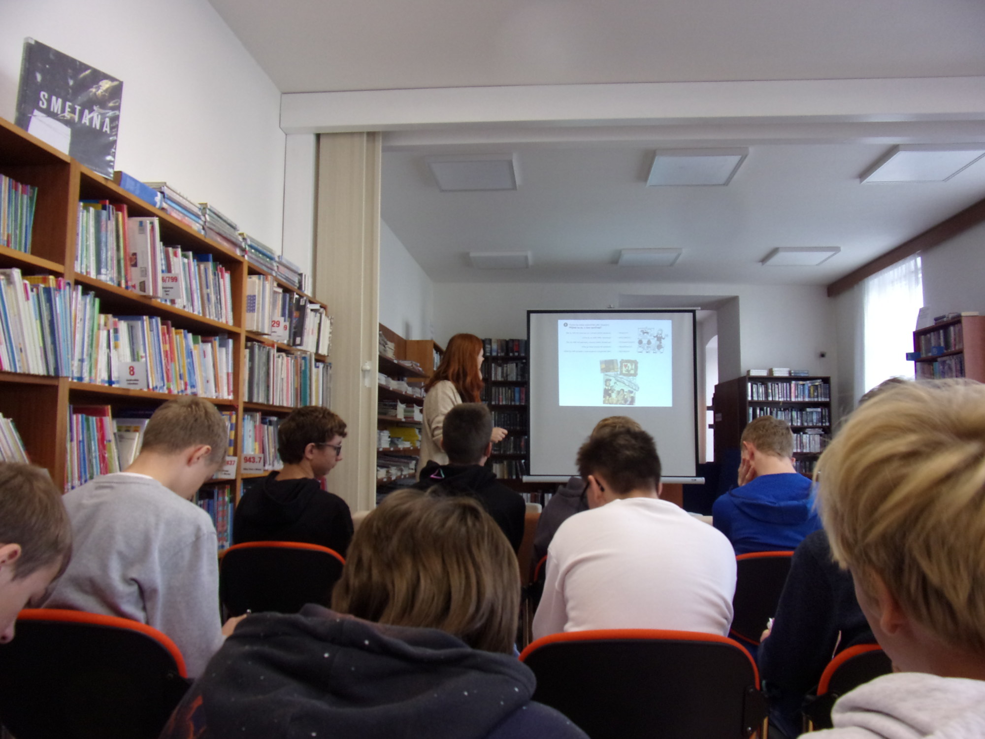 Paní autorka besedu zahájila seznámením s prací spisovatelky, tvůrčím psaním a nezapomněla zmínit odkud čerpala a čerpá náměty ke své bohaté publikační činnosti. Seznámila nás se svou knihou S Komenským do komiksu, vydanou v roce 2020. Poté navázala výkladem o J. A. Komenském. Dále jsme pokračovali individuální prací s pracovními listy, během níž žáci měli možnost zúročit vědomosti ze školní práce i domácí přípravy včetně využití pozornosti během besedy. Četnými dotazy žáky zapojovala do besedy. Řadou odpovědí ji žáci příjemně překvapili.
