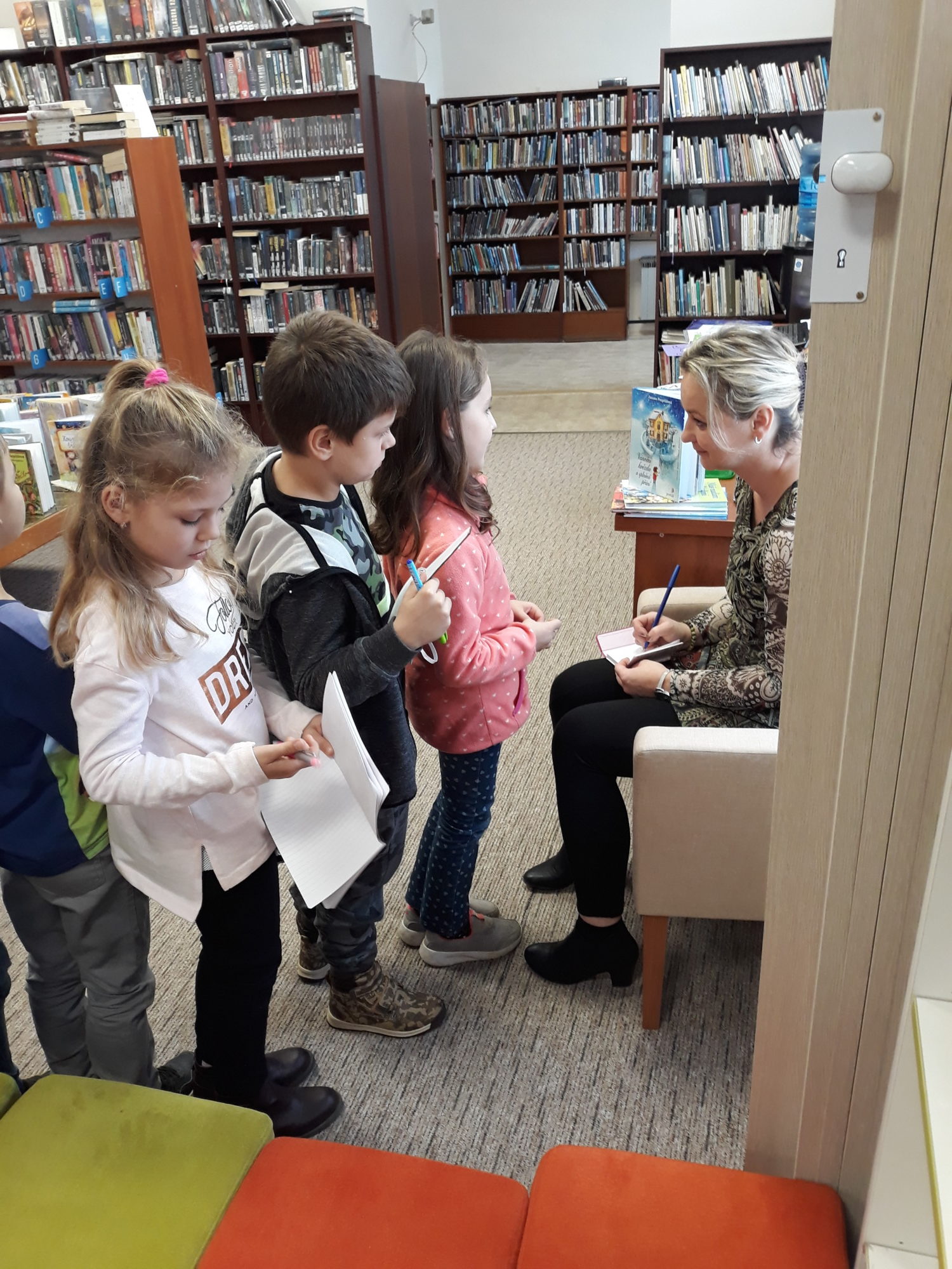 Dnešní dopoledne jsme opět strávili v knihovně. Moc jsme se na setkání s paní spisovatelkou Zuzanou Pospíšilovou těšili. Paní spisovatelka nám básničkou řekla, jak se knížky vyrábí. Také nám spoustu svých knížek představila. Nakonec nám podepsala svoje knížky, které jsme si přinesli. Setkání to bylo příjemné. Paní spisovatelka umí velmi poutavě vyprávět.