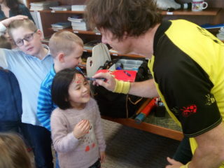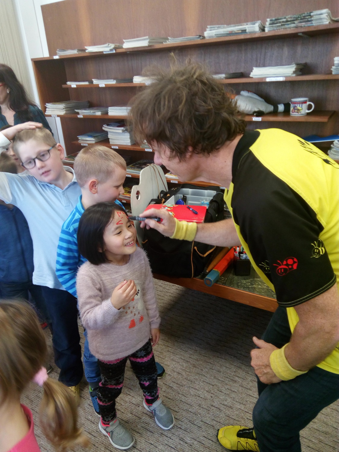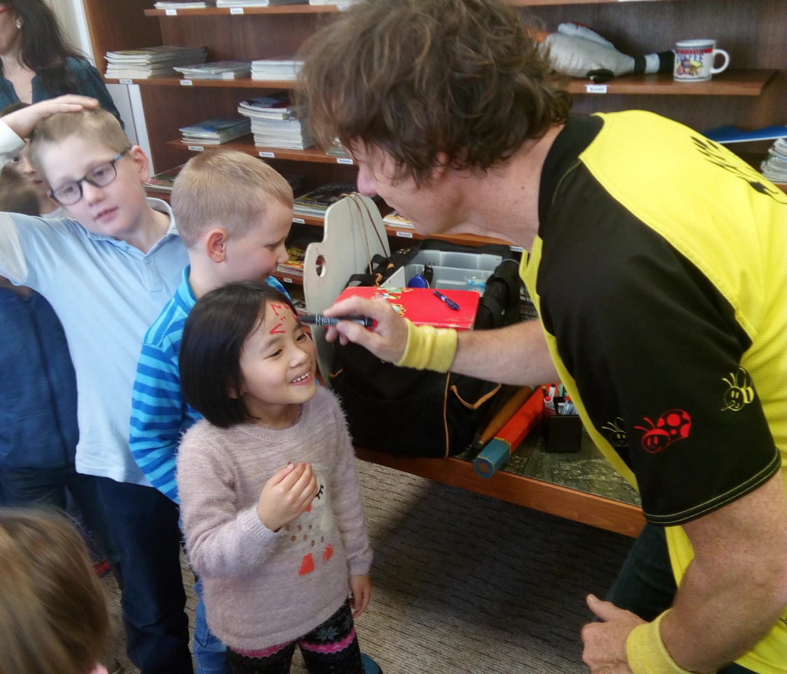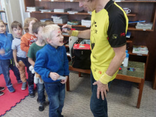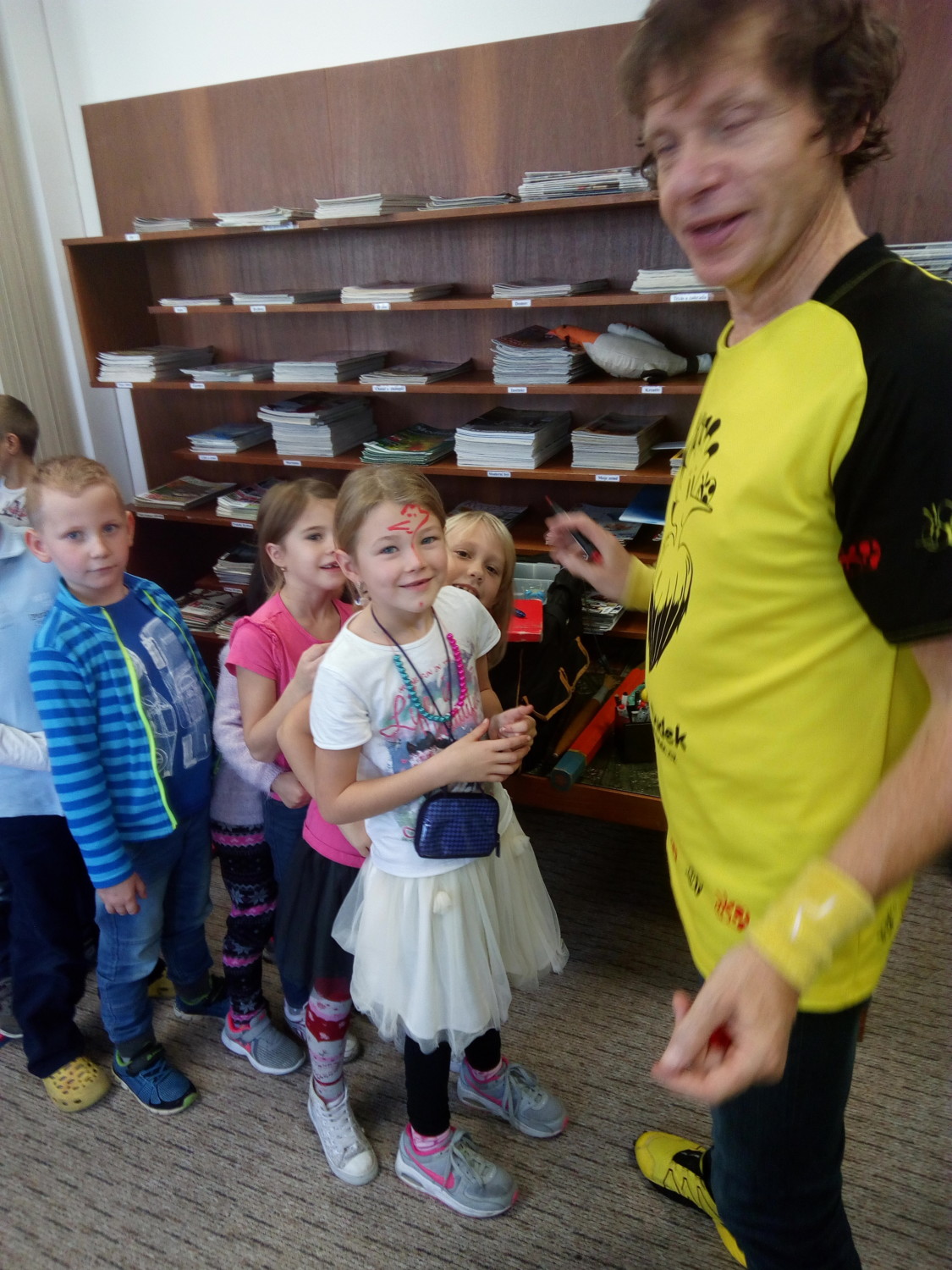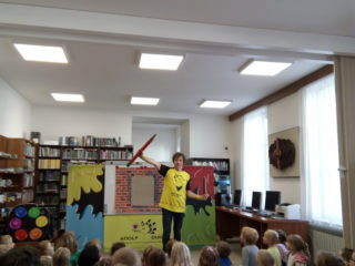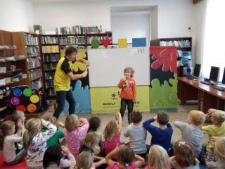 s výtvarnými technikami, a také nám poradil, jak si namalovat obrázek pomocí základních geometrických tvarů. Užili jsme si spoustu zábavy, získali nové informace a na závěr jsme dostali autogram.