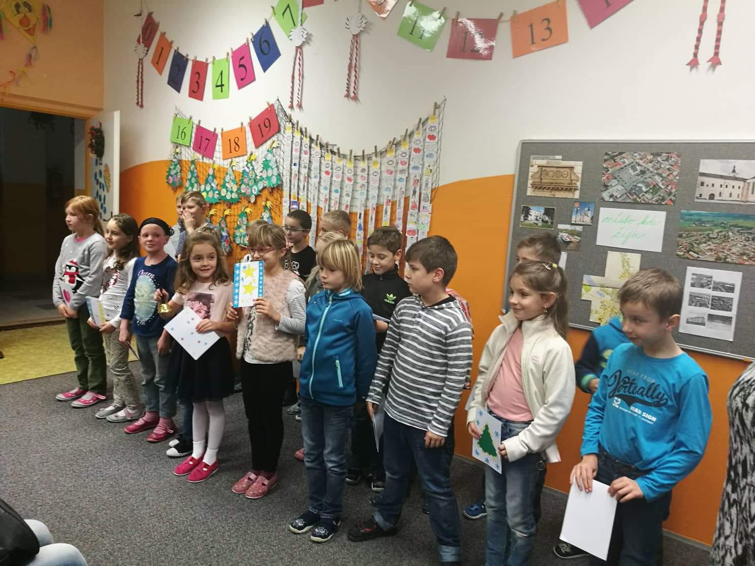 Již druhým rokem jsme s dětmi druhých tříd uspořádali vánoční besídku pro rodiče, prarodiče a ostatní příbuzné. Děti si naučily vánoční nebo zimní básničku, Nacvičily také pár koled a vánočních písniček. Děti byly netrpělivé, až se konečně budou moct předvést. Besídka se dětem povedla, rodiče byli také spokojeni. Na závěr rodiče dostali vánoční přání a ochutnali cukroví, které jim ráno děti napekly.