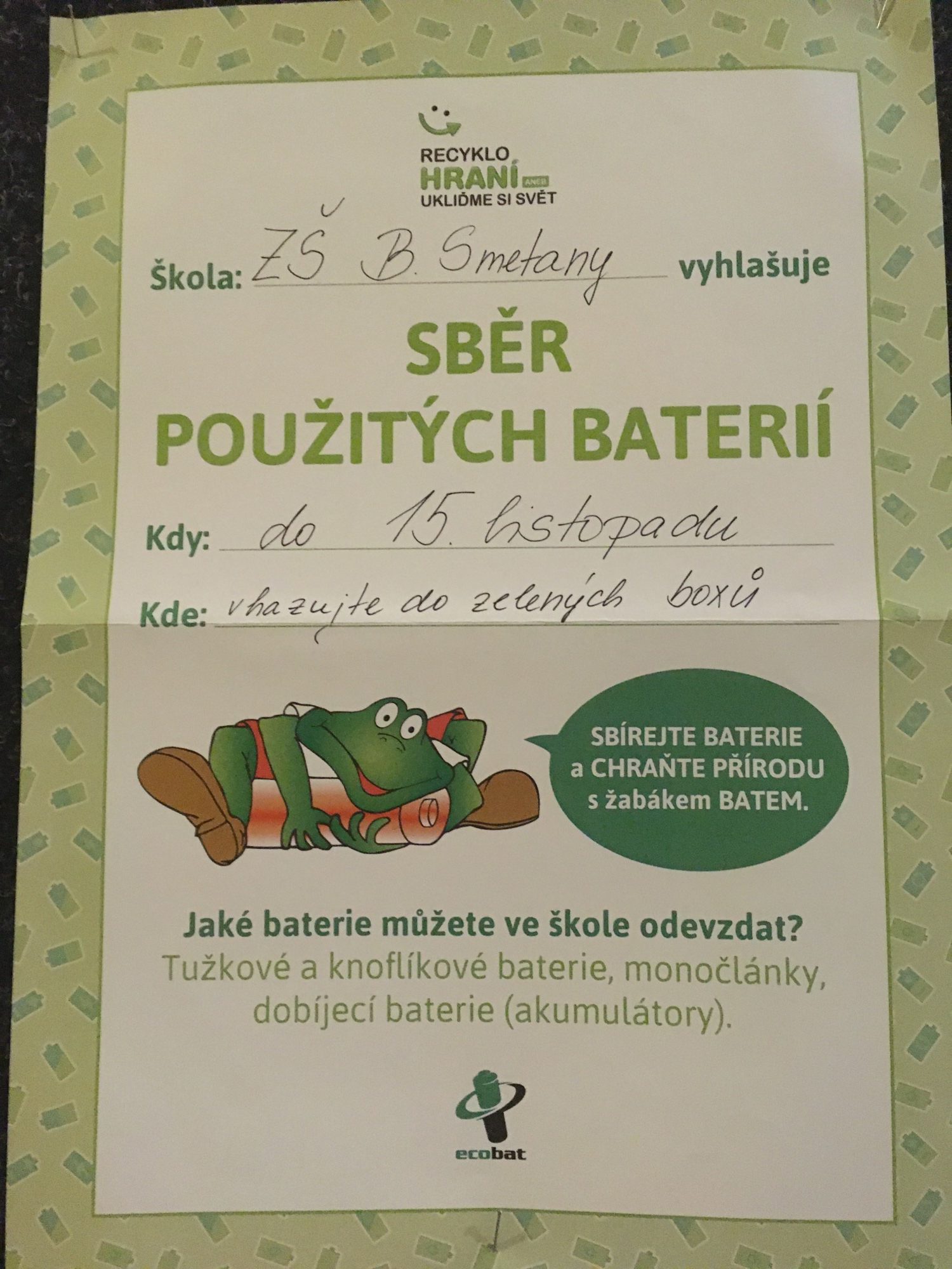 15. listopad je posledním dnem, kdy se můžete zapojit do projektu v rámci Recyklohraní a donést vysloužilé mobilní telefony či použité baterie.