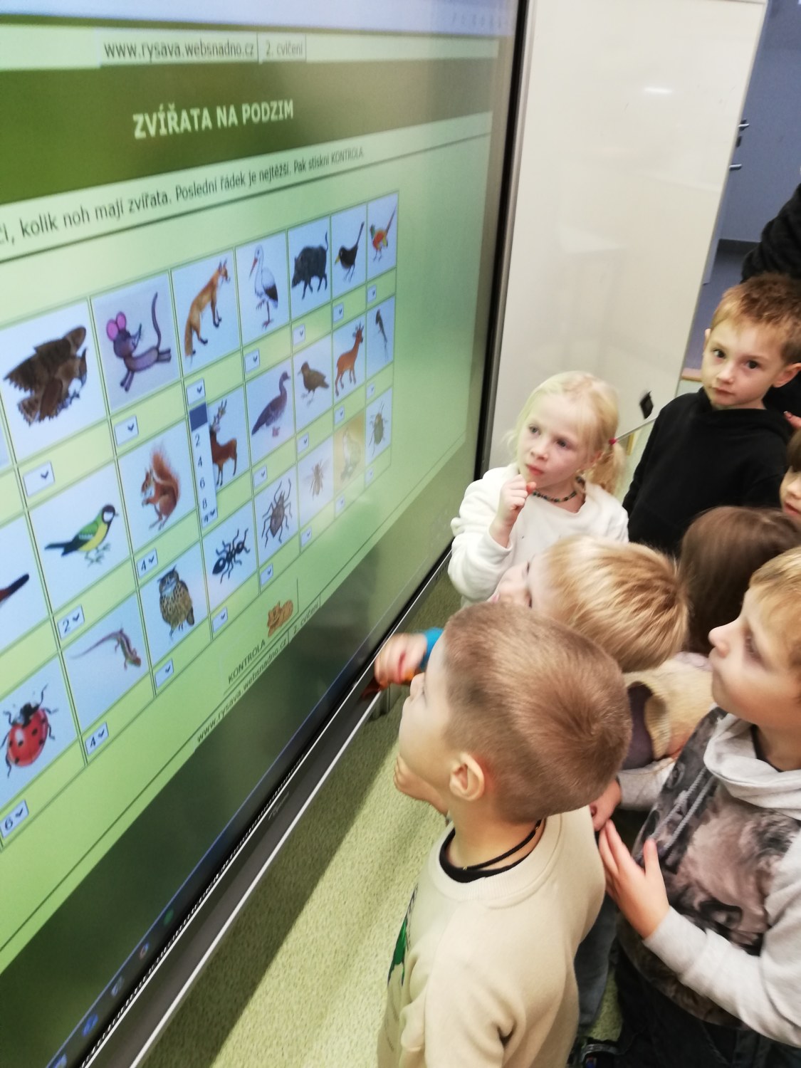 Seznámili se i s interaktivní tabulí. Počítali, kolik nohou má jimi vybrané zvířátko.
