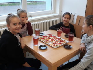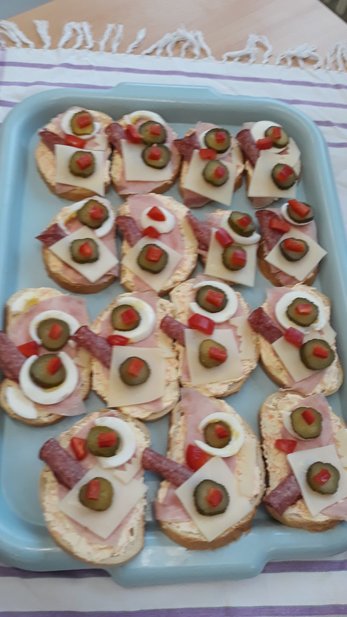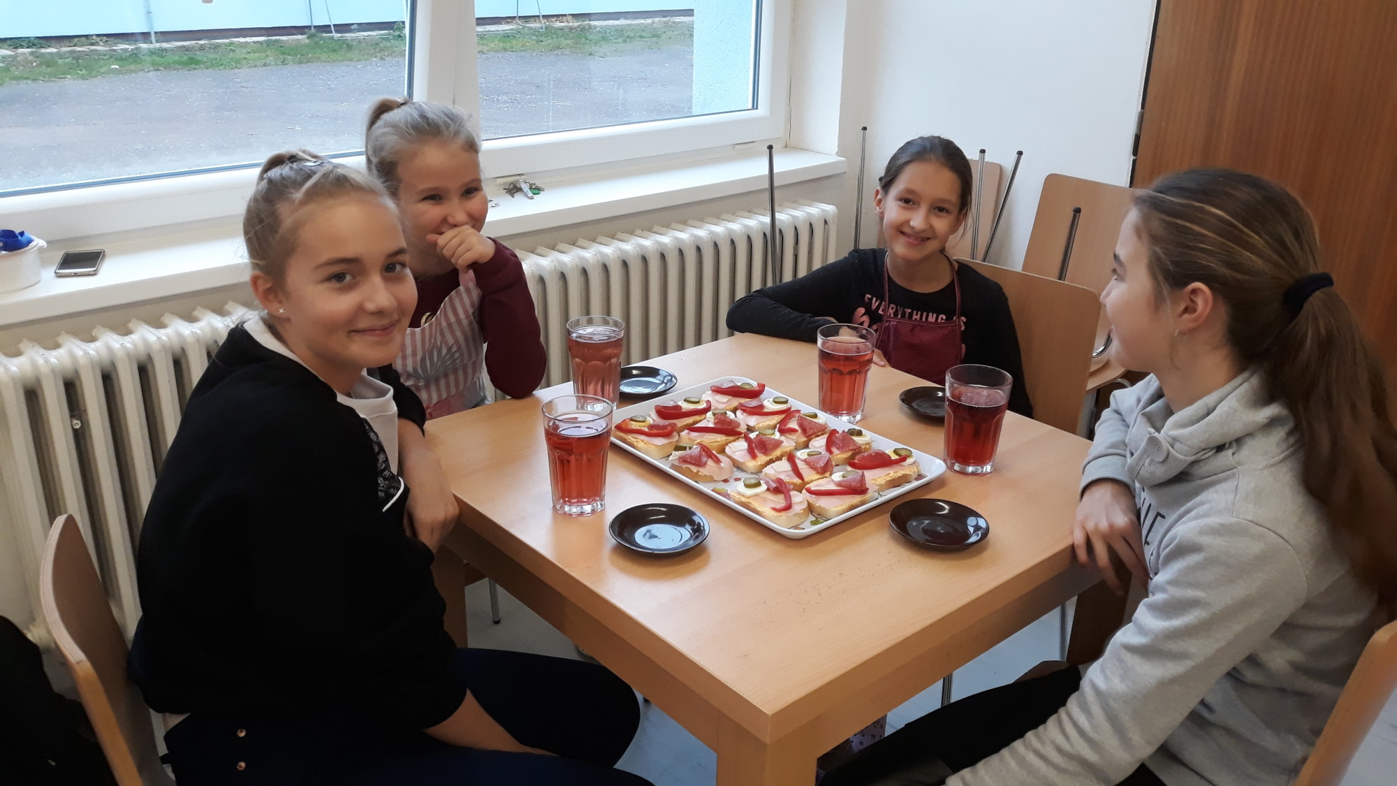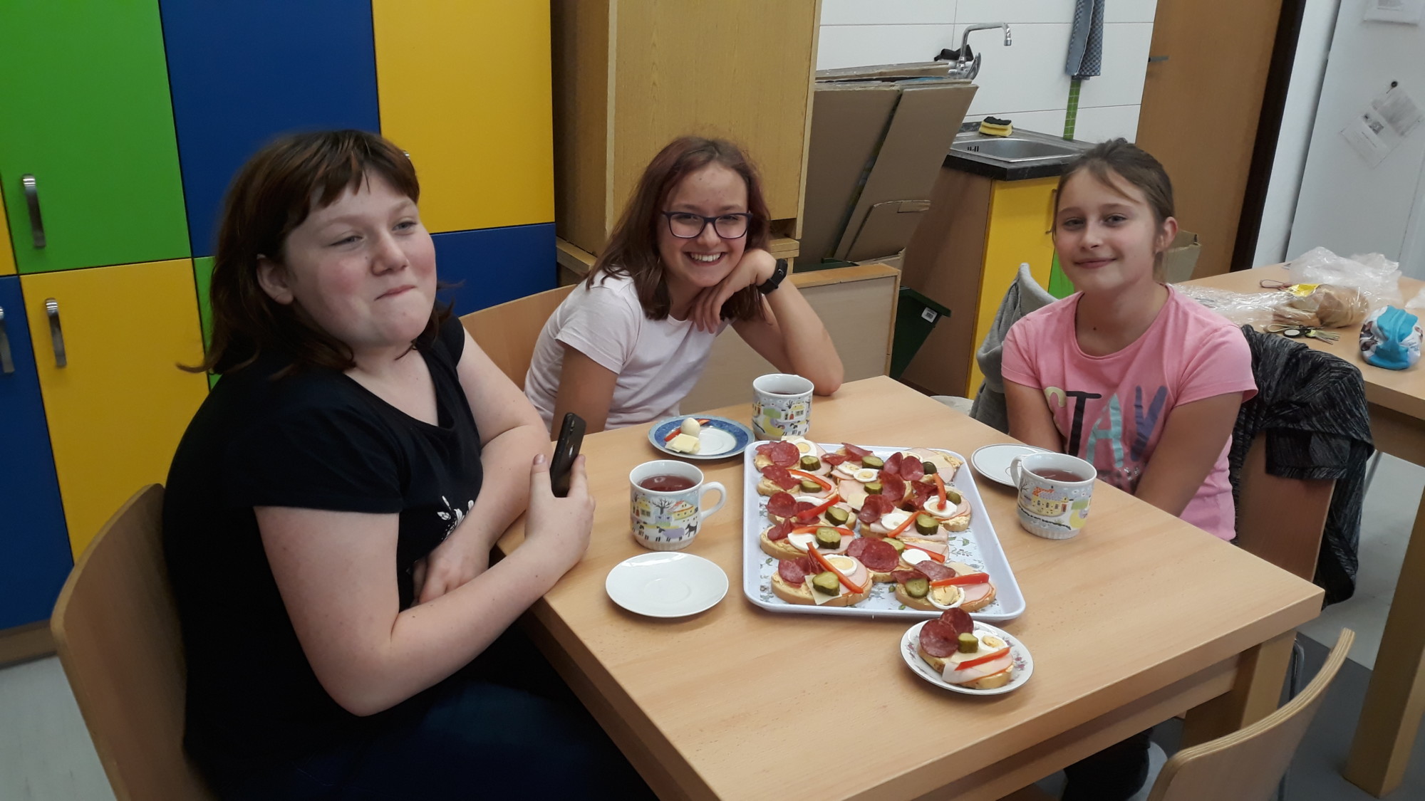 V pondělí v pracovních činnostech jsme se společně pustili do přípravy oblíbených chlebíčků. Taková malá příprava třeba na Silvestra. Práce nám šla od ruky a brzy bylo hotovo. Ještě rychleji se po chlebíčkach „zaprášilo „, moc nam chutnaly. Ivana Kosová, uč. PČ v 6.A