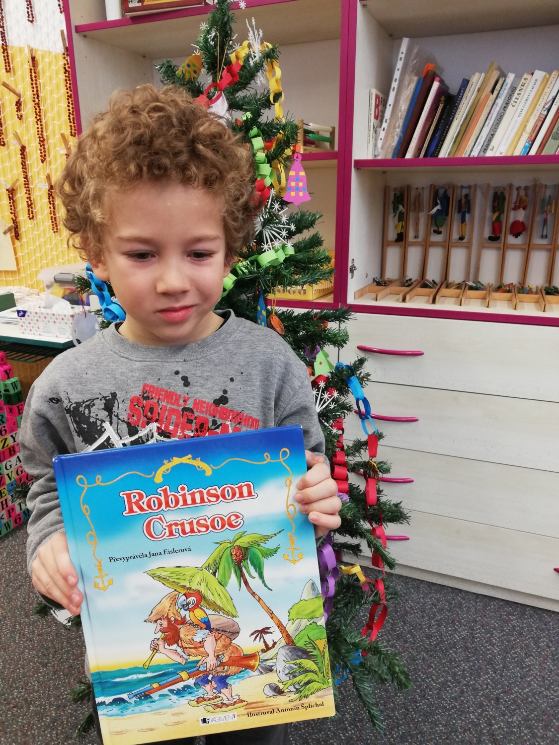 S některými žáky z 1. A jsme se zapojili do projektu Evropské unie a vytvořili čtenářský klub. Jistě Vás napadne, jak můžou prvňáci chodit do čtenářského klubu, když ještě neumí číst. Odpověď zní, že můžou a baví je to. Společně jsme už navštívili obě knihovny ve škole a vypůjčili si knížky na prohlížení i domů. V kroužku si děti hrají s loutkovým divadlem a vymýšlí divadelní představení, které hrají ostatním. V předvánočním čase si povídáme o adventu, děti poslouchají pohádky, hádají hádanky nebo si společně hrajeme hru Pohádky v kostce. Moc je také baví hra Loto, kde rozvíjí svoji slovní zásobu. Vždy se všichni těšíme na další týden, kdy se znovu setkáme.