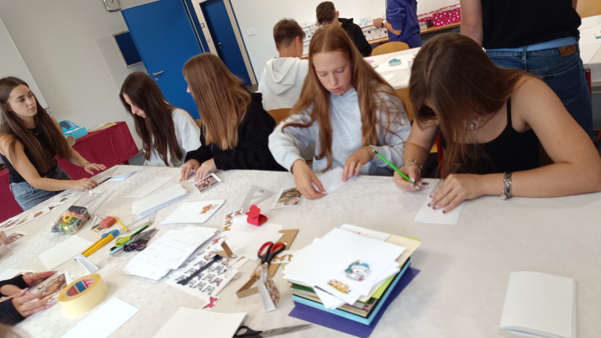 V pátek 27.9. se obě deváté třídy vydaly na Den otevřených dveří SOŠ a SOU Lanškroun, kde se žáci v rámci volby povolání mohli seznámit s prezentovanými obory. Akce se nám velmi líbila. Chlapci z obou tříd byli nadšení z ukázky robotiky a dívky si užívaly služeb kadeřnic a kosmetiček. Po hodině spousta z nás měla krásné účesy, nové nehty a někdo vyzkoušel i bodypainting. U knihařů jsme si téměř všichni vyrobili roztomilý bloček a na rozloučenou dostali zájemci bonbon na cestu. Celá prohlídka byla výborně zorganizovaná a my moc děkujeme za příjemně strávený čas.