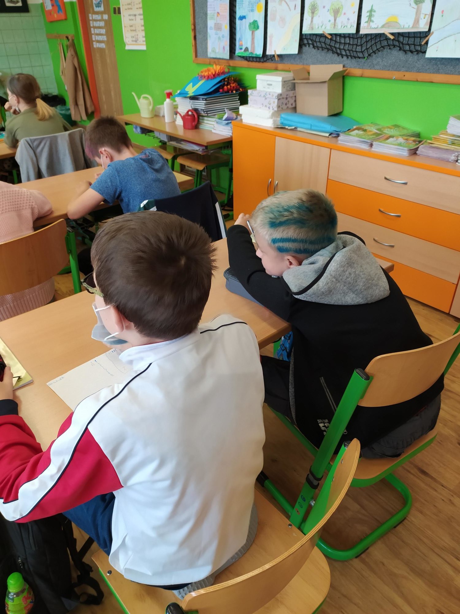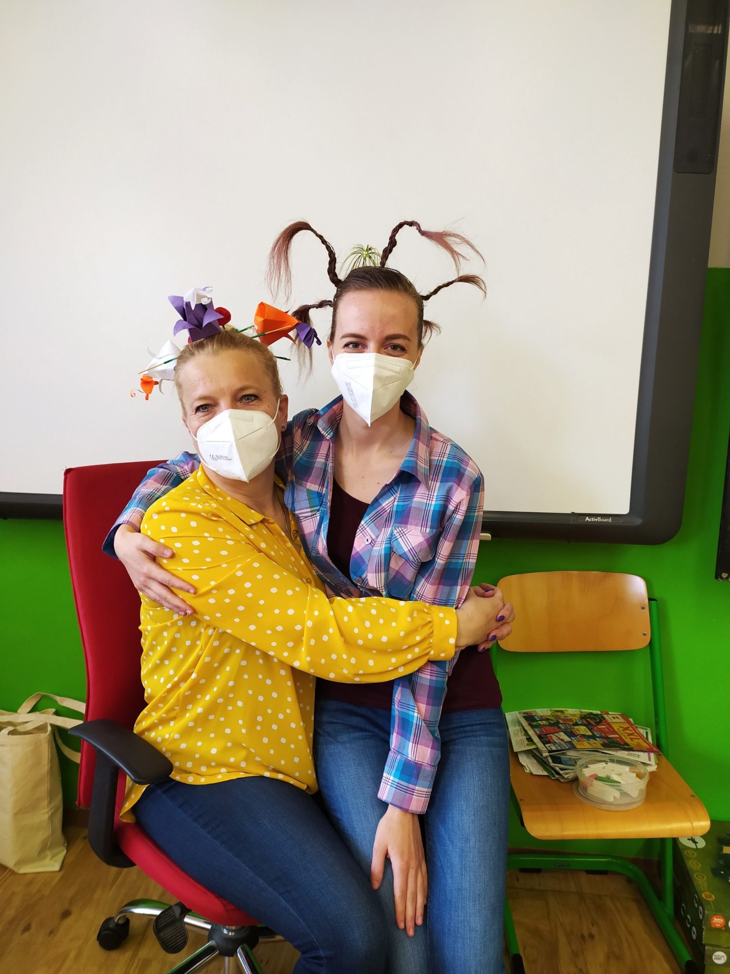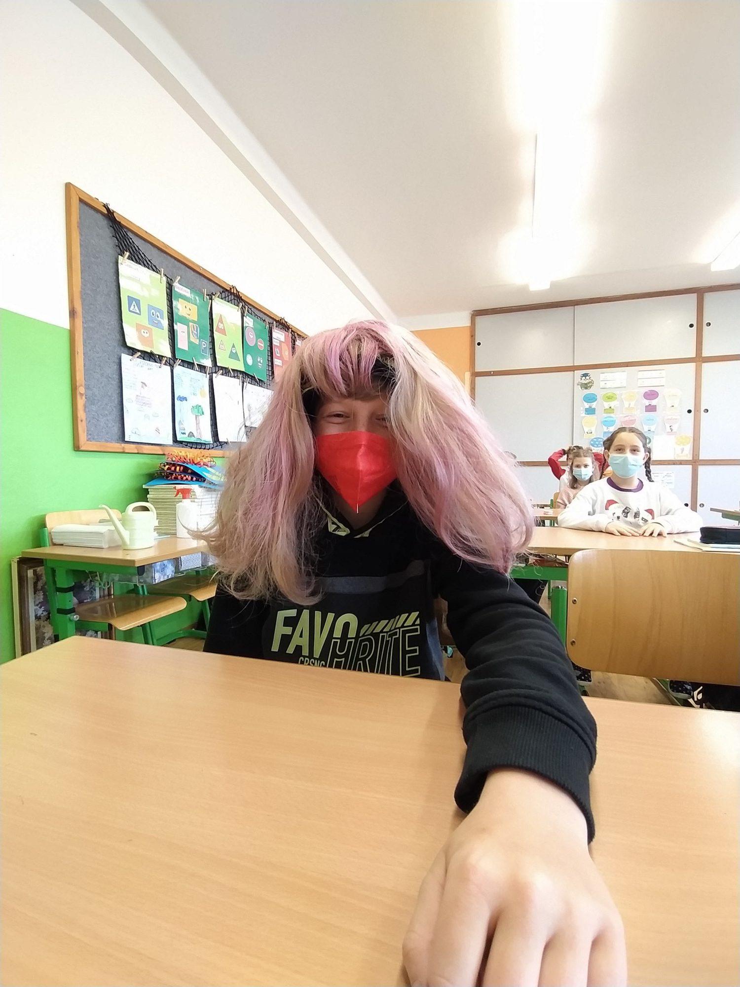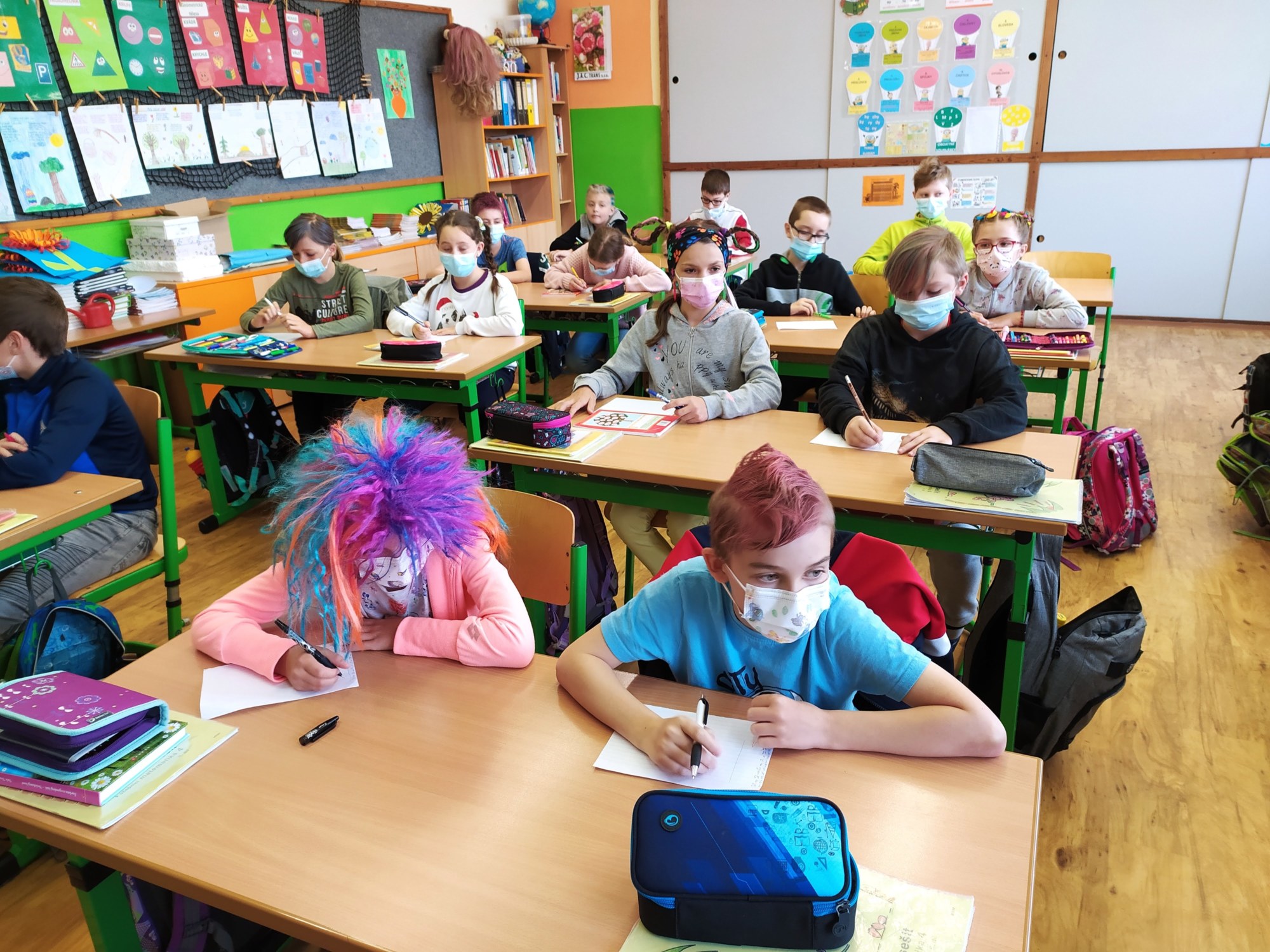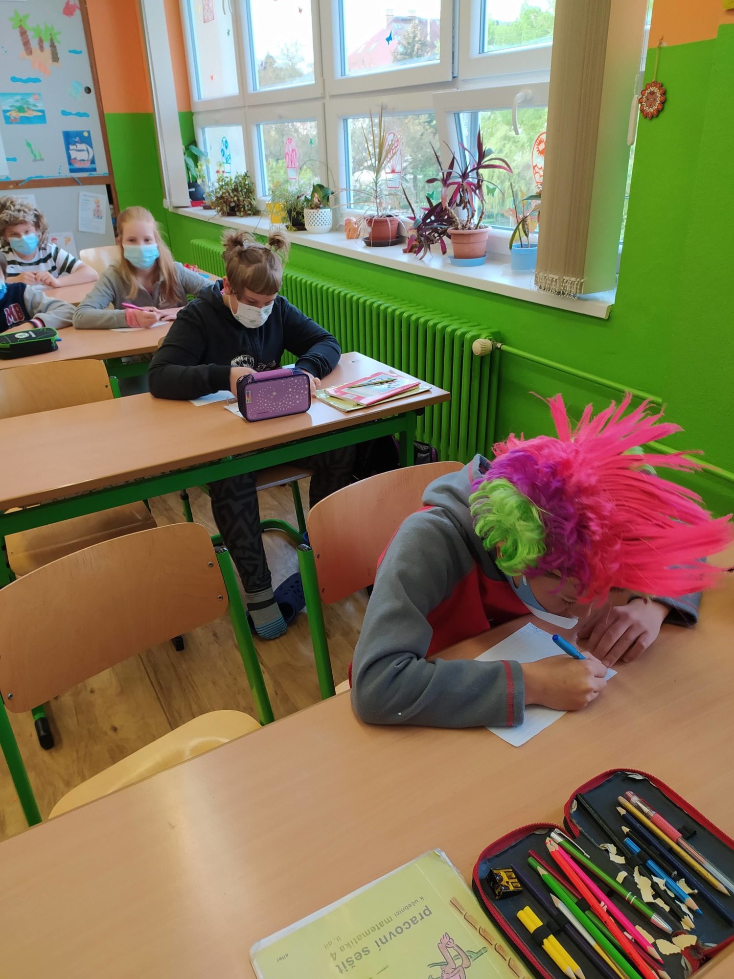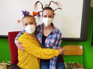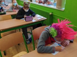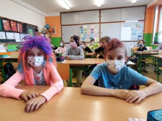 Naše škola se zapojila do Dne šílených účesů. Kluci, holky, ale i my jsme si na hlavách vytvořili různé kreace a aspoň chvíli nemysleli na tu šílenost venku. Hodně jsme se nasmáli a trochu jsme si „zablbli“. Možná, že by nebylo na škodu, mít víc takových dnů.