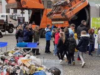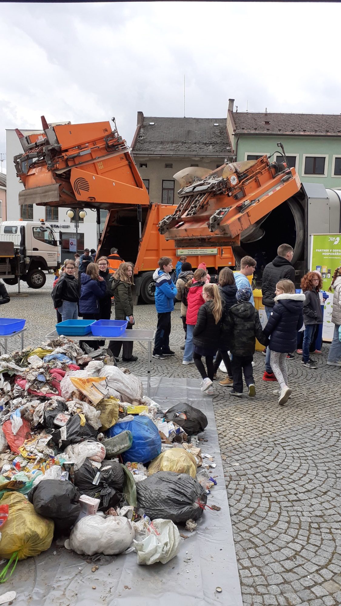 S naší třídou jsme navštívili akci ke Dni Země, kterou pořádalo naše město. Nejvíce jsme byli zvědaví, co se skrývá v popelnicích našich spoluobčanů. Parta lidí přebírala na náměstí odpadky z popelnic, které byly svezeny z různých koutů našeho města . Děti také mohly soutěžit ve znalostech třídění odpadů, prohlédnout si svozové popelářské vozy zvenku i zevnitř a největší atrakcí byla plošina, která děti vyvezla do výšky a mohly si prohlédnout Lanškroun.