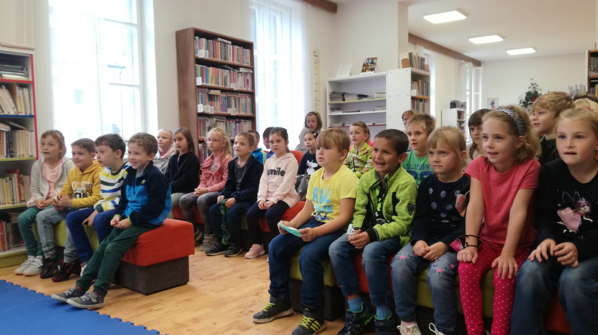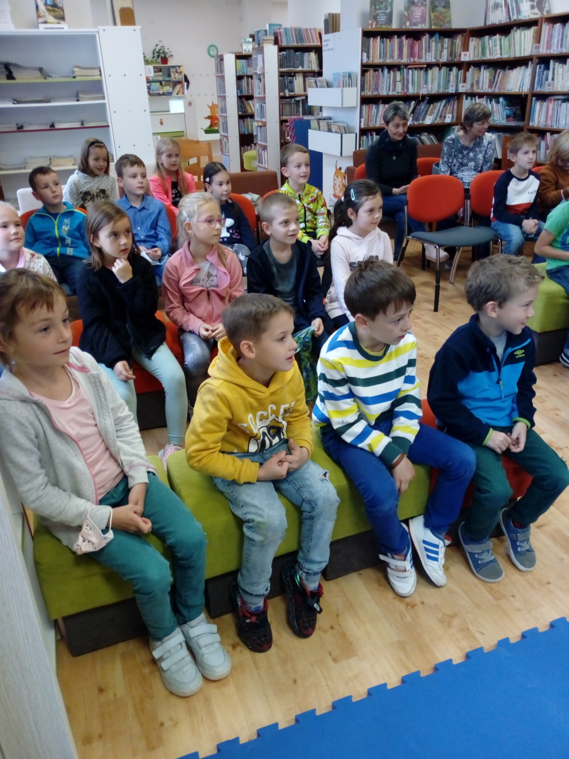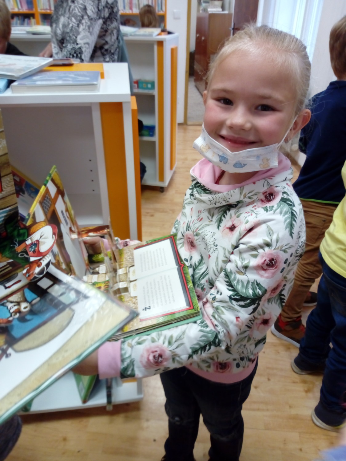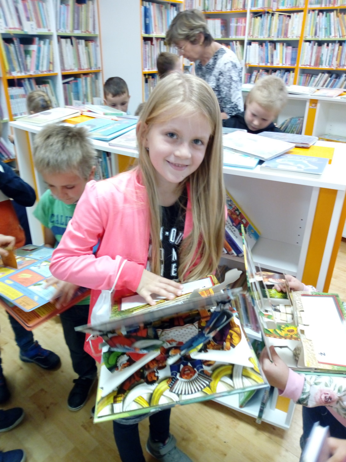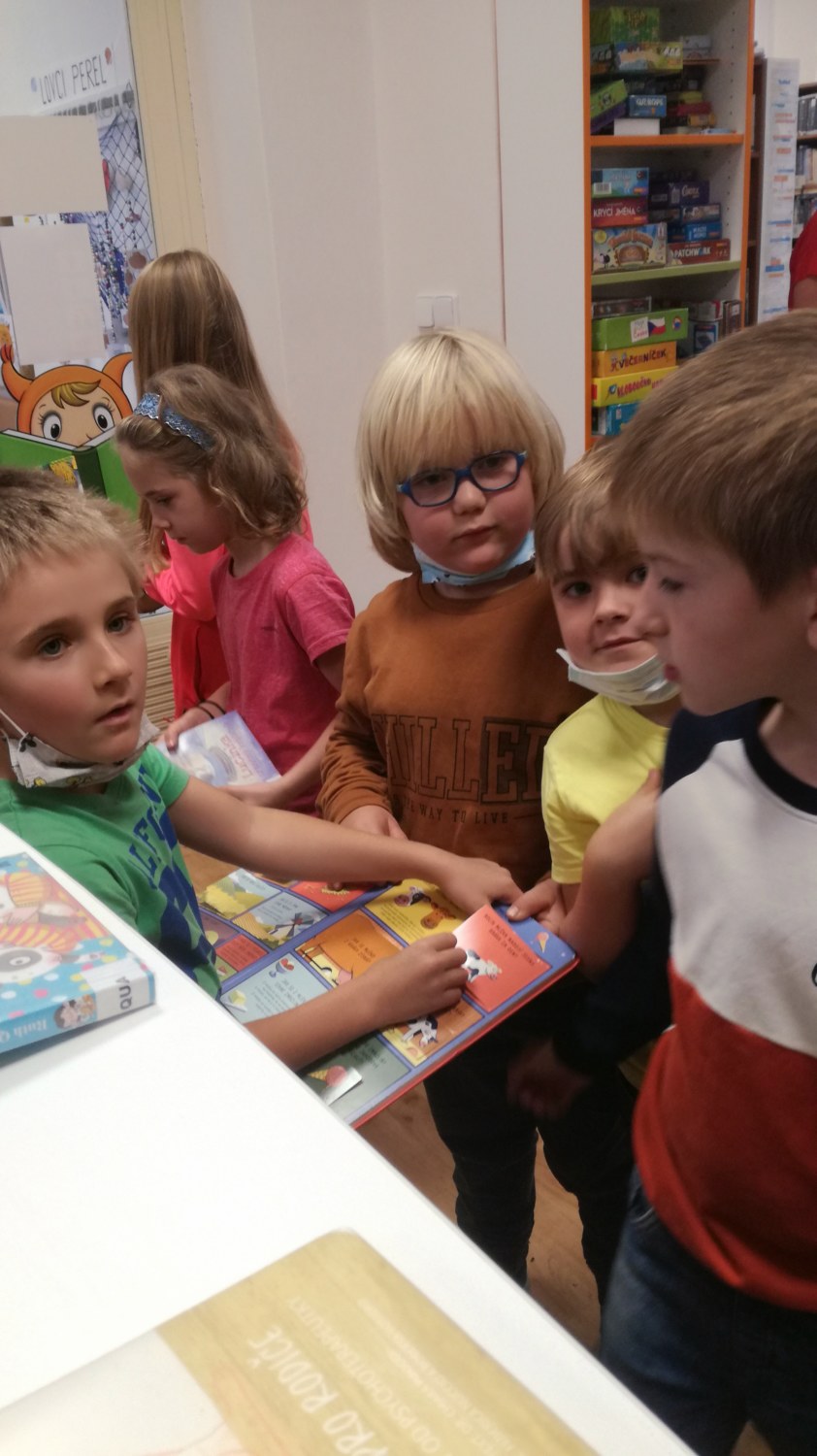 Na závěr si jako správní čtenáři prvňáčci vybírali knížky, které si se zájmem prohlíželi. Už se všichni těší, až se naučí číst a budou si moci knížky půjčovat.