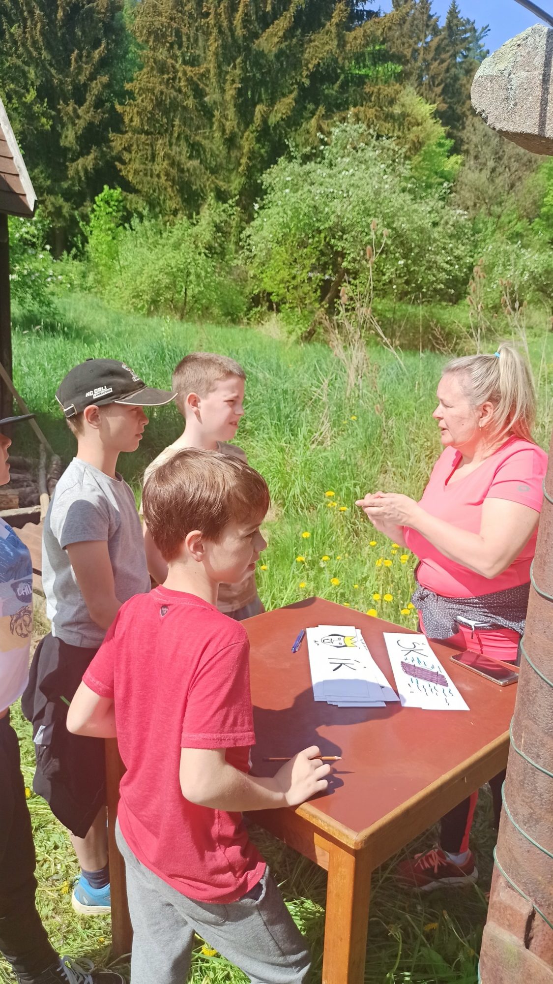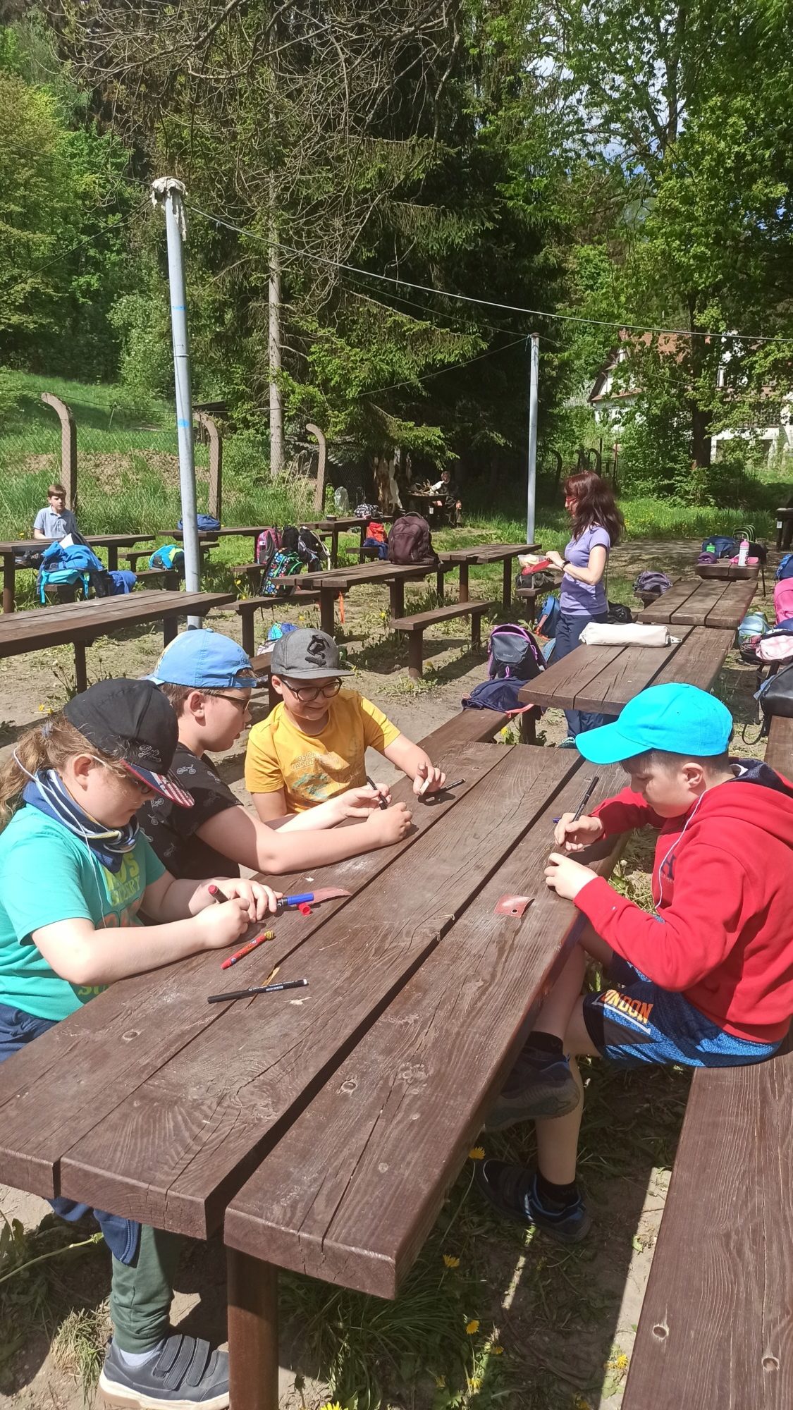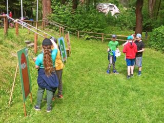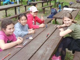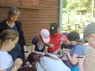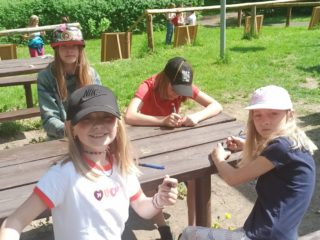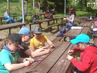 Děti si zde hravou a zábavnou formou zopakovaly své znalosti z přírodovědy. Třídily pomyslný odpad, poznávaly rostliny, stromy, živočichy. Procvičily si své smysly, když rozpoznávaly vůně, vyrobily si přívěšek. Pracovaly ve skupinkách a společně sbíraly body. Nakonec byly za svoji práci odměněny. Děkujeme, bylo to příjemné dopoledne.