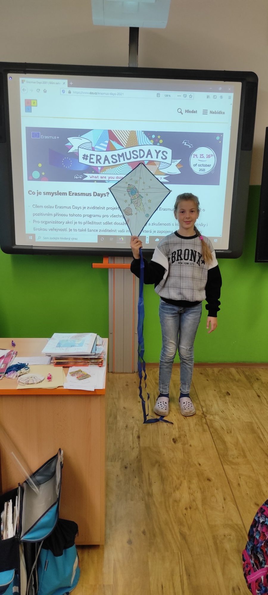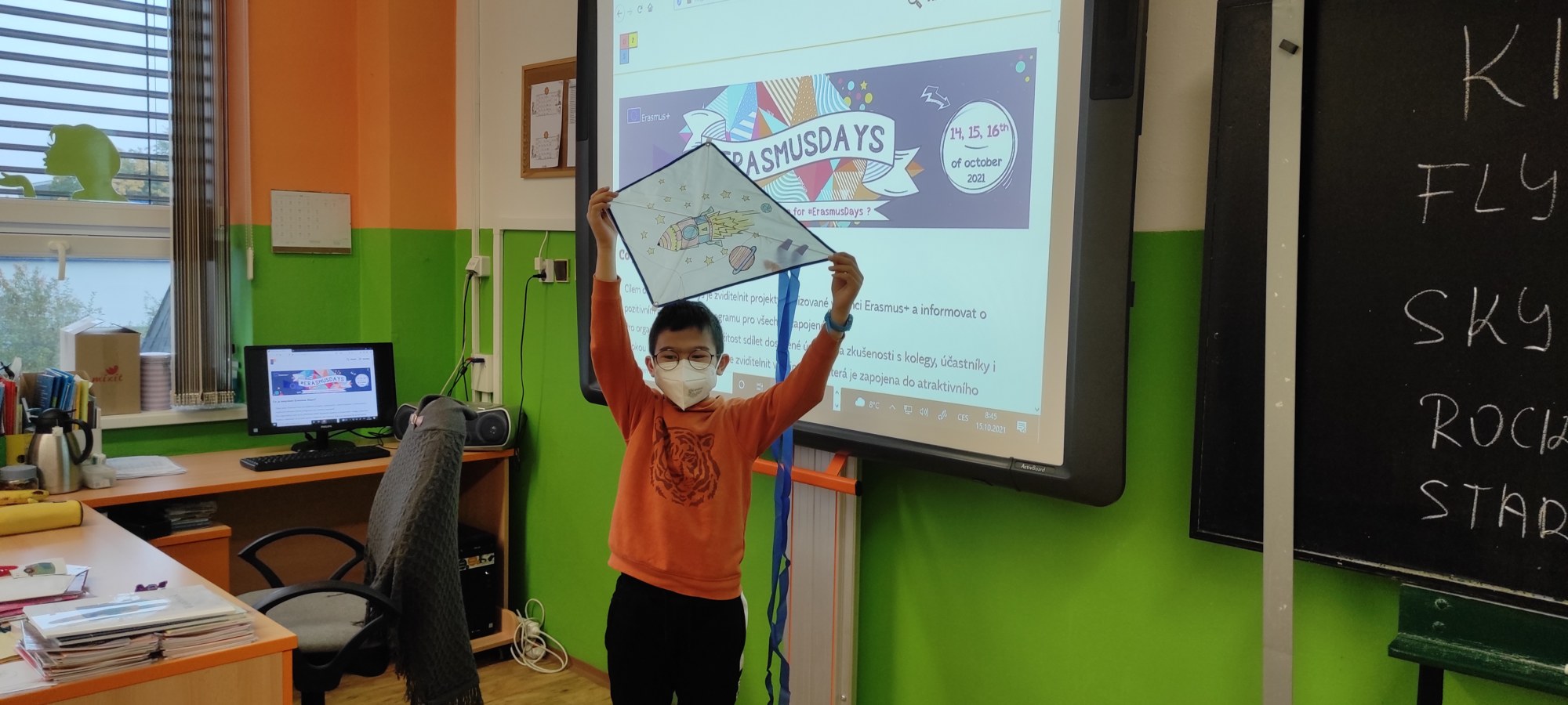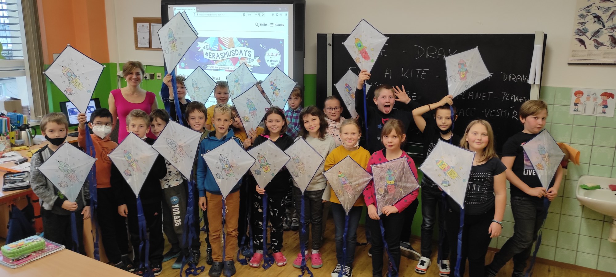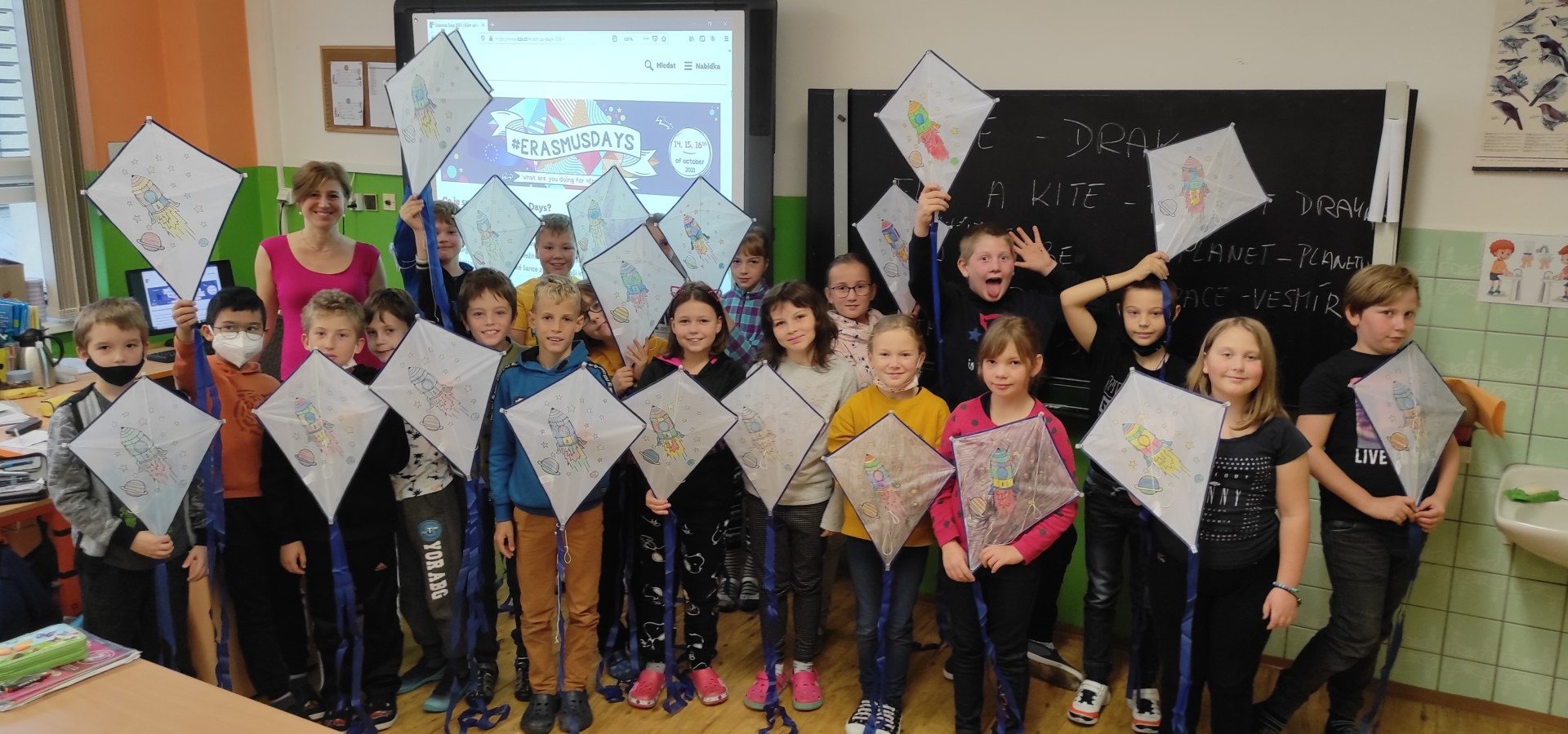 V pátek 15.10. jsme měli netradiční hodinu angličtiny. Spolu s dětmi z celé Evropy jsme se zapojili do akce Erasmus Days. Dozvěděli jsme se, že program Erasmus+ umožňuje dětem z evropských škol spolupracovat a také se navštěvovat. Prohlédli jsme si knížku Once Upon A Time via ICT, kterou starší žáci naší školy vytvořili právě díky tomuto programu. Knížka se nám moc líbila, hlavně ilustrace, které malovaly děti k pohádkám a legendám. Těšíme se, že až budeme starší, také budeme mít možnost se do Erasmu zapojit a podívat se někam do světa. Jako památku na tuto akci jsme dostali od Domu zahraniční spolupráce každý svého létajícího draka, kterého jsme si sami ozdobili.