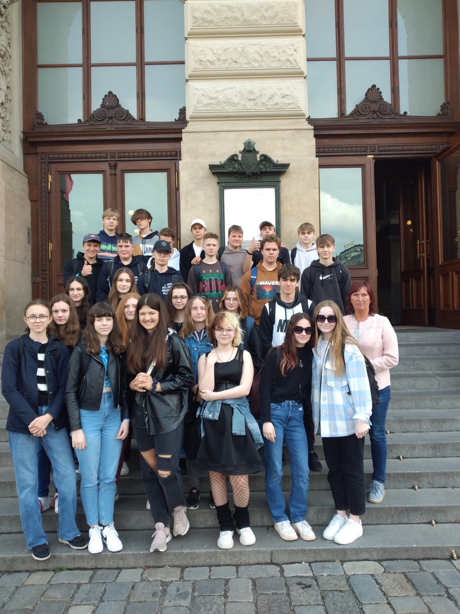 Ve čtvrtek 5. května se 9. A vydala do Prahy navštívit Národní muzeum. V Historické budově je umístěna spousta zajímavých expozic. Každý si tu mohl přijít na své. Zcela nová expozice Okna do pravěku nám ukázala, jak vypadal život na našem území před mnoha miliony let. Čekalo na nás takřka 2 000 exponátů od malých zkamenělých larev trilobitů až po obřího amonita a zcela nové modely pravěkých zvířat v životní velikosti. V expozici Zázraky evoluce jsme objevili dalších 1 500 unikátních předmětů. Úchvatný je Sál minerálů, v němž nalezneme jedny z nejkrásnějších a nejzajímavějších minerálů ze sbírky Národního muzea umístěné v původních historických vitrínách. Kdo má rád historii, nenechal si ujít expozici Dějiny, která nás provedla minulostí českých zemí od 8. století až do 1. světové války. Takřka 2 000 exponátů vypráví poutavý příběh naší historie. Spojovací chodbou jsme prošli do Nové budovy Národního muzea. Tato chodba je sama o sobě velmi zajímavá, promítáním na stěny chodby zachycuje momenty z našich dějin. V Nové budově sídlí expozice Dějiny 20. století, která mapuje českou moderní historii od 1. světové války až po vstup České republiky do Evropské unie. Samozřejmě jsme si také vyjeli výtahem do kopule Národního muzea, odkud je úžasný pohled na celou Prahu. Za tři hodiny, které jsme měli na prohlídku vyměřeny, jsme ovšem nestihli zhlédnout všechny expozice. Tak někdy příště.
