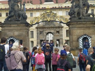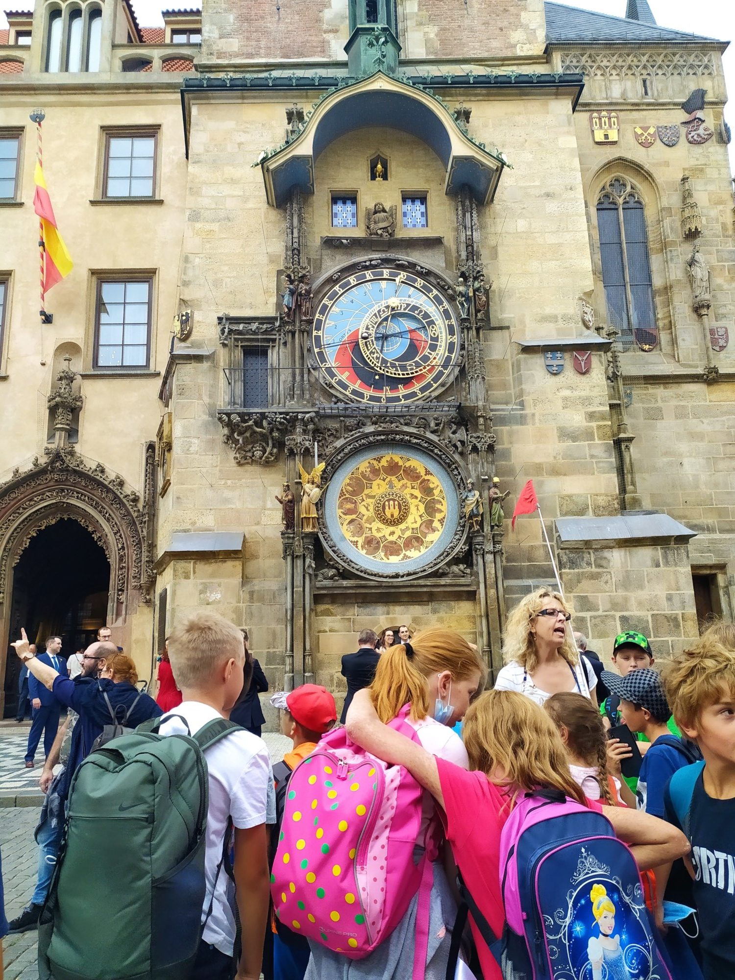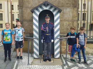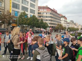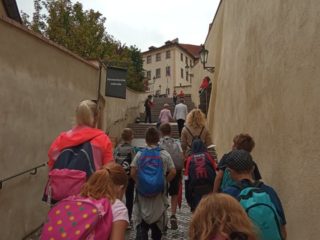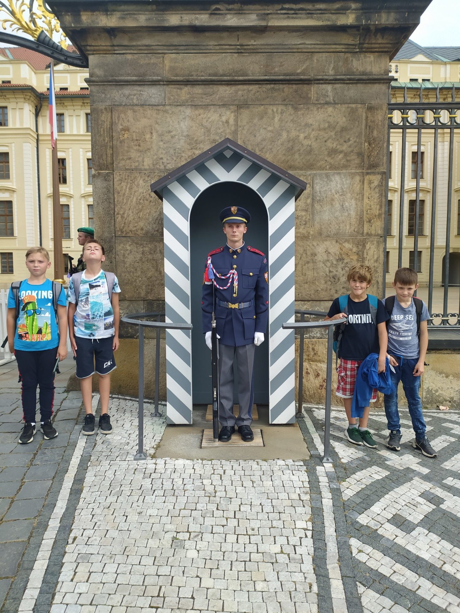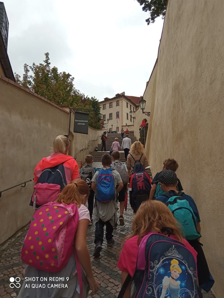 Rozhodli jsme se, že si začátek školního roku trochu vylepšíme, tak jsme se vydali na exkurzi po pražských památkách. Vyjeli jsme už o půl 7 ráno, abychom si Prahu užili co nejvíc. Na Václavském náměstí nás čekala paní průvodkyně, která s námi celou trasu absolvovala. Ze stanice Muzeum jsme se metrem přesunuli na zastávku Malostranská, odkud jsme se po zámeckých schodech dostali na Pražský hrad. Navštívili jsme Zlatou uličku, celý areál Pražského hradu (Vladislavský sál, Baziliku sv. Jiří, Daliborku, Chrám sv. Víta). Viděli jsme i výměnu Hradní stráže. Z Pražského hradu jsme se přesunuli Nerudovou ulicí přes Karlův most na Staroměstské náměstí, kde jsme si prohlédli Orloj i místo popravy 27 českých pánů. Pak už jsme se přesunuli na nádraží a jeli domů. Přijeli jsme večer vyčerpaní, ale spokojení. Velké dík patří pěti maminkám, které s námi jely.