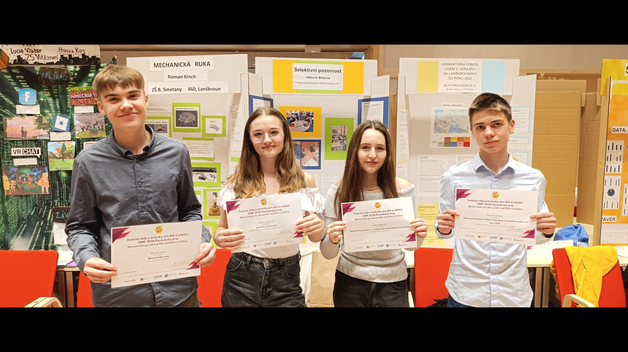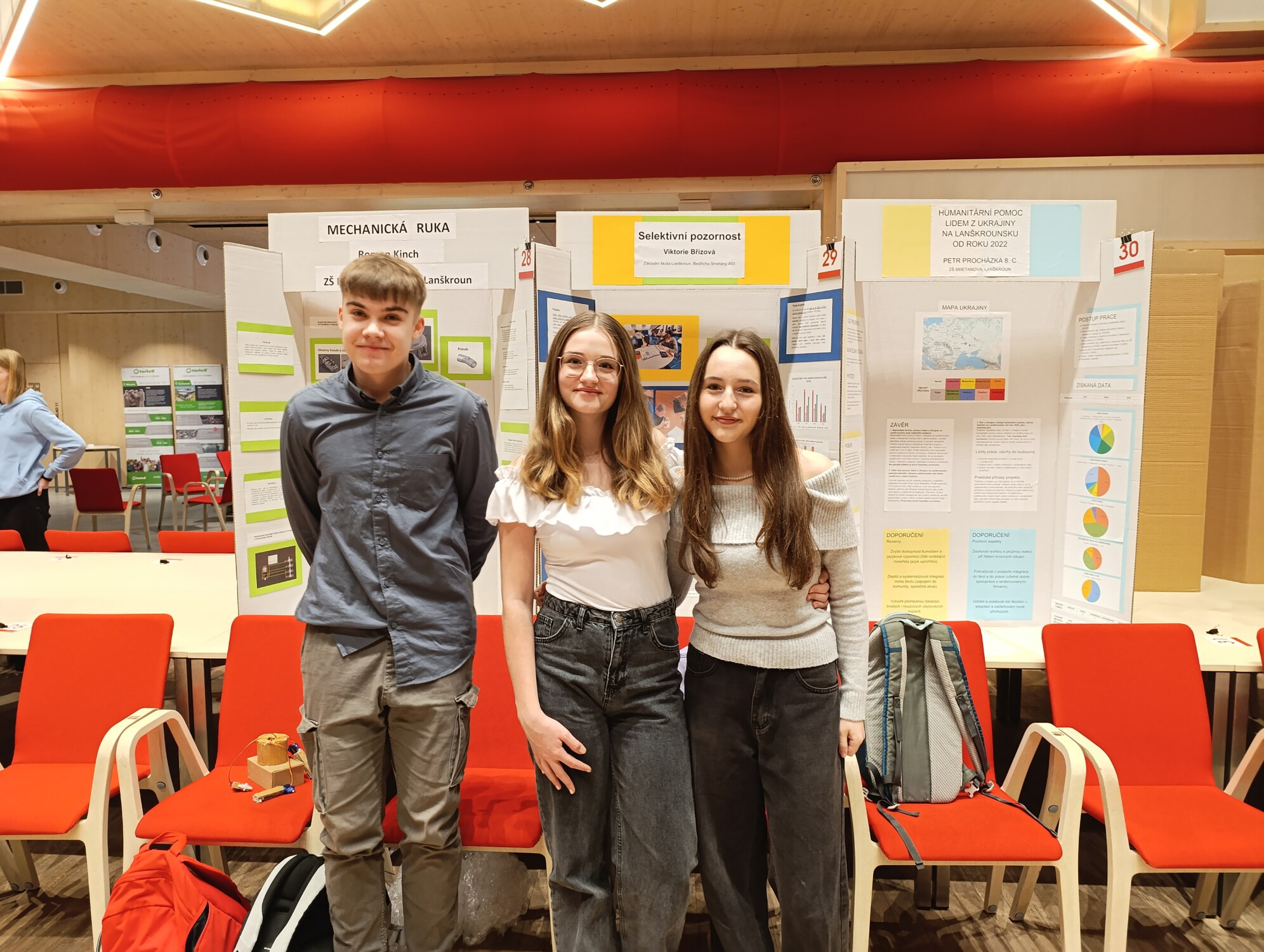 - Petr Procházka (8. C) s projektem Humanitární pomoc lidem z Ukrajiny na Lanškrounsku od roku 2022. Záměrem bylo zjištění situace humanitární pomoci a jakým způsobem ji vnímali příjemci.