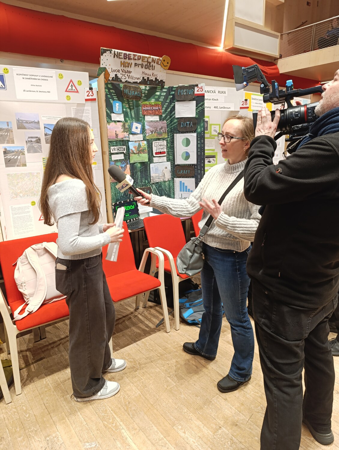 - Eliška Skalická (9. B) s projektem Doprava a statistika zaměřena na chodce. Pro svůj výzkum zvolila město Lanškroun s kruhovým objezdem a přechodem pro chodce pod autobusovým nádražím. Z šetření vyplynulo, že na kruhovém objezdu by měly být osvětlené a viditelné přechody s označením nebo semafory pro větší bezpečnost chodců.