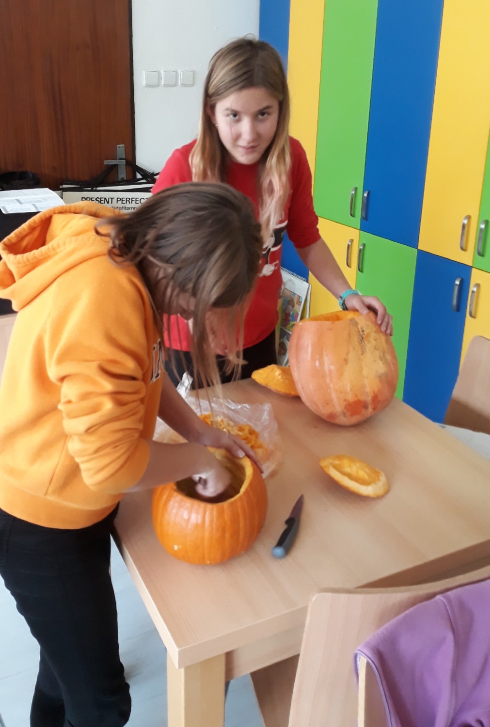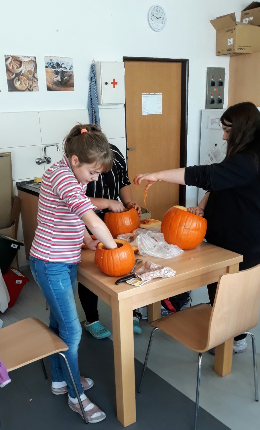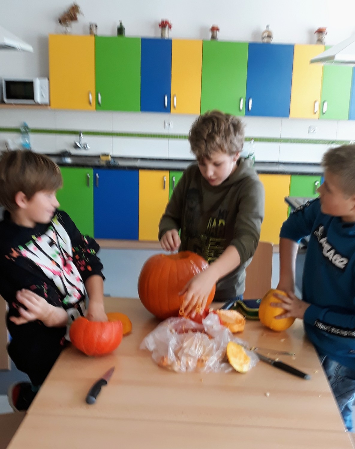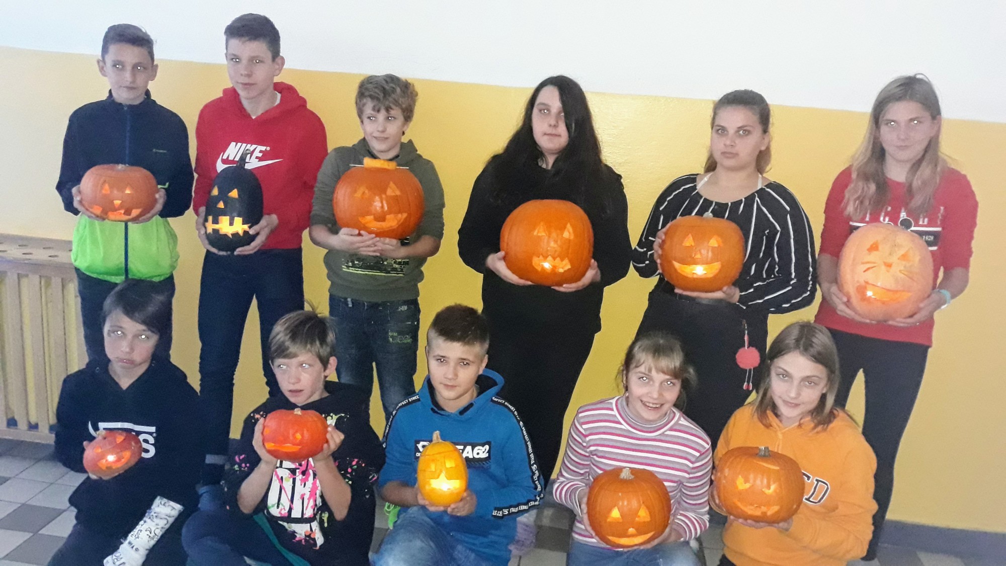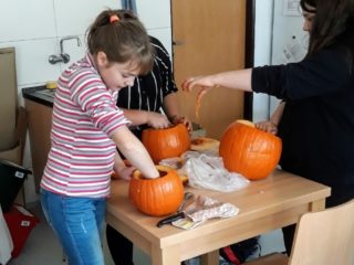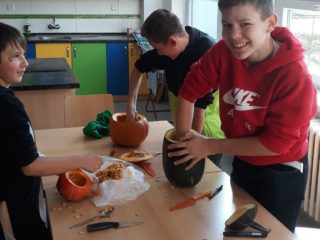 Ve čtvrtek 31.října jsme měli v 6.C halloweenske pracovní činnosti. Donesli jsme si na vyřezání dýně a pani učitelka přichystala překvapení v podobě malého občerstvení. Dýně se moc povedly a po občerstvení se jen zaprášilo.