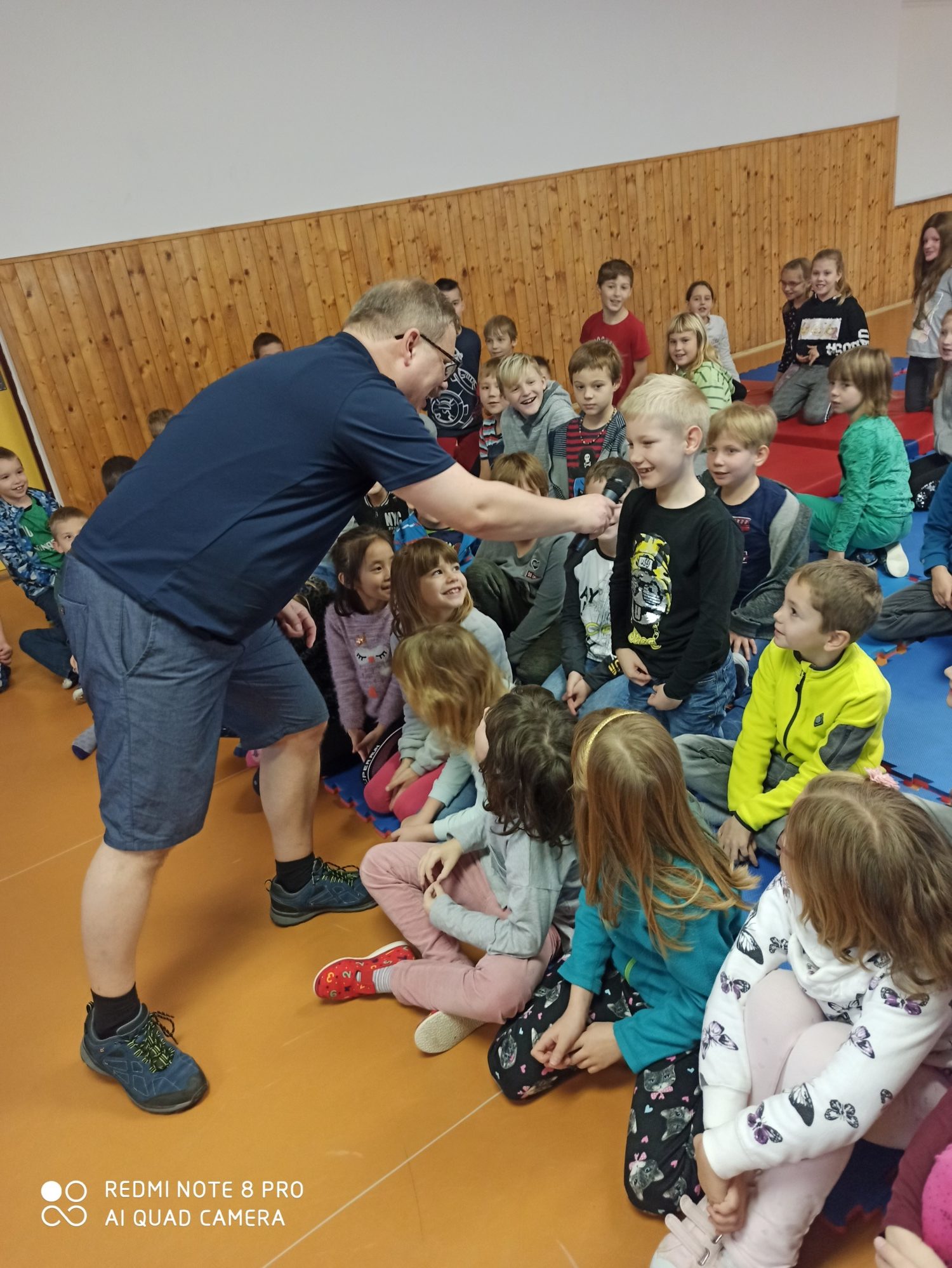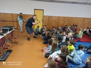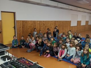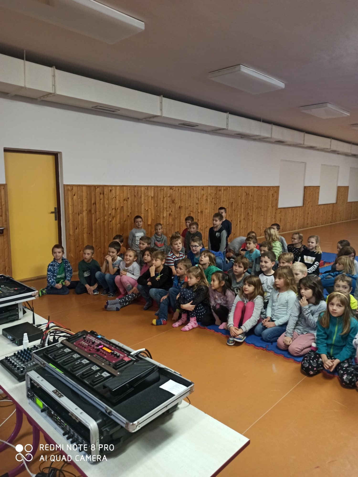 Ve středu 27.11. jsme se zúčastnili hudební projekce, kterou nás provedl pan Hrabě. Seznámil nás s neobvyklými elektrickými hudebními nástroji. Jeden např. reagoval na pohyb a vdálenost ruky- tzv. teremin. Některé děti měly možnost si hru na tyto nástroje vyzkoušet. Bylo to zajímavné a zábavné vystoupení.
