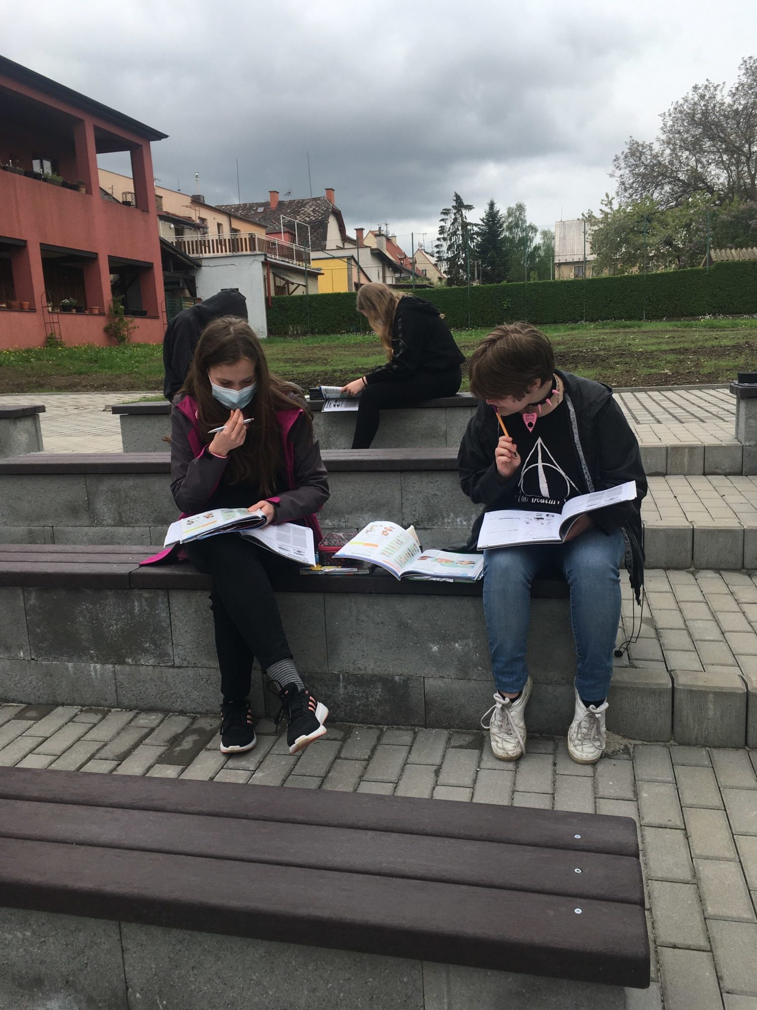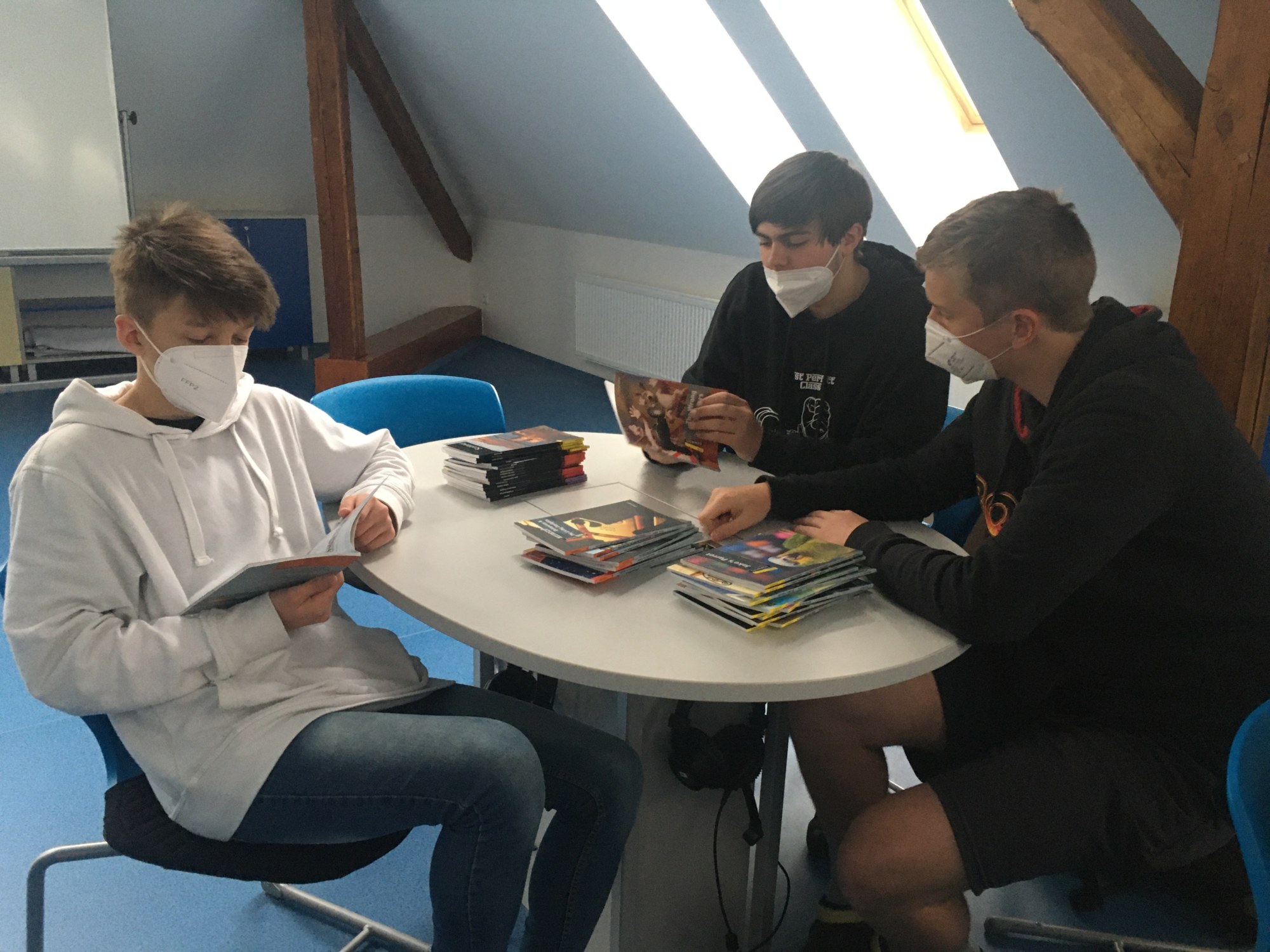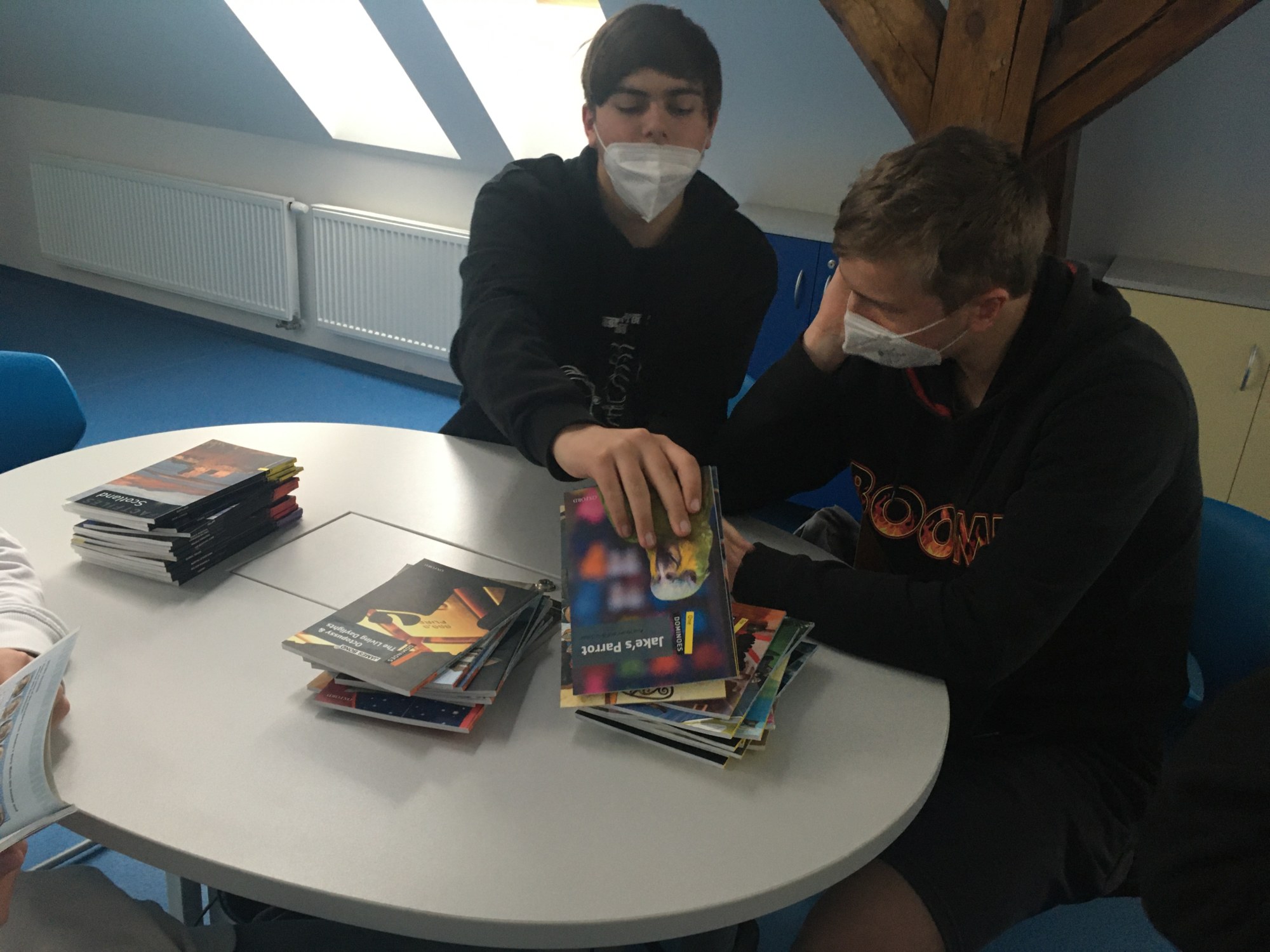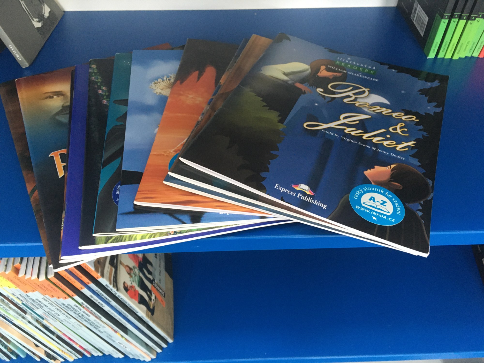 Naše nové učebny byly úspěšně „pokřtěny“ a my je začali hojně využívat. Za pěkného počasí se venku učíme angličtinu – je skvělé být na čerstvém vzduchu! Velmi často využívám ale i modrou jazykovou učebnu, a to především pro práci ve skupinách, hraní různých her či relaxační četbě. Máme zde totiž k dispozici anglickou knihovnu se spoustou knížek zjednodušené četby v různých obtížnostech. Žáci si mohou přečíst komiksy, moderní příběhy, detektivky, fantasy či sci-fi, ale i klasickou beletrii. Zájem o četbu je překvapivý. Věřím, že čtenářů bude postupem času přibývat.