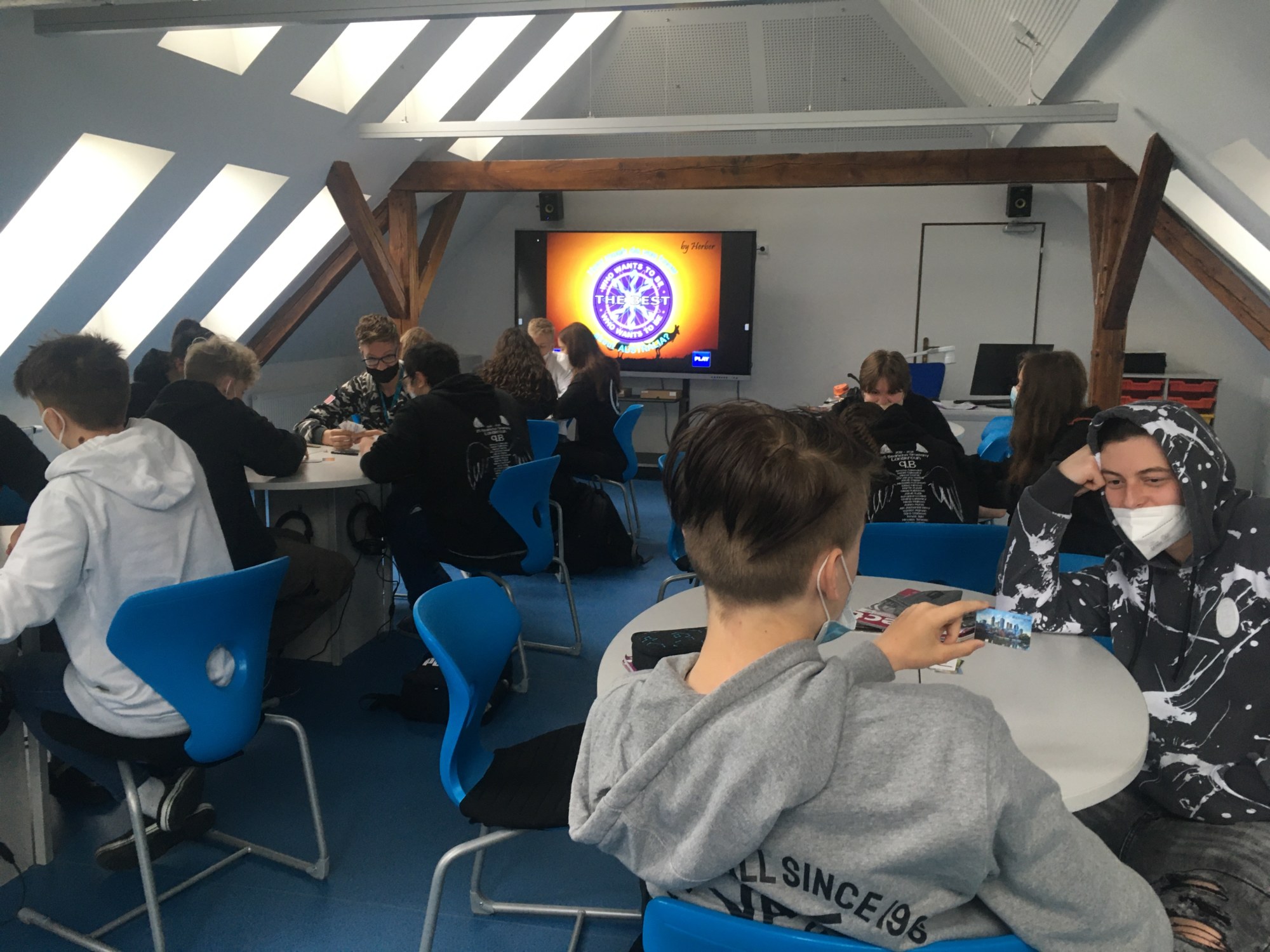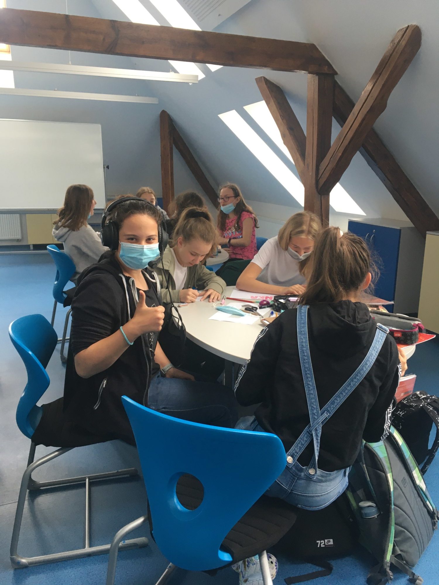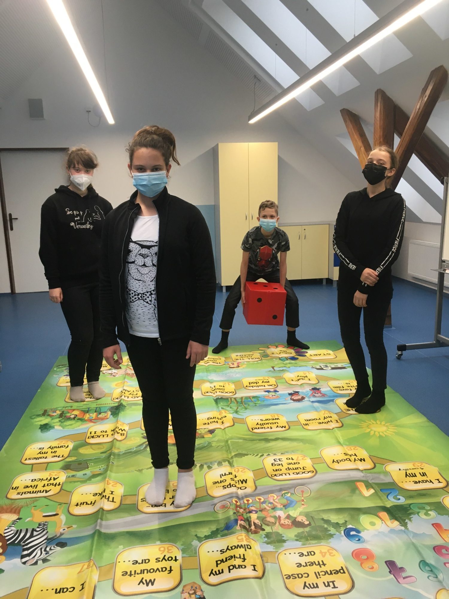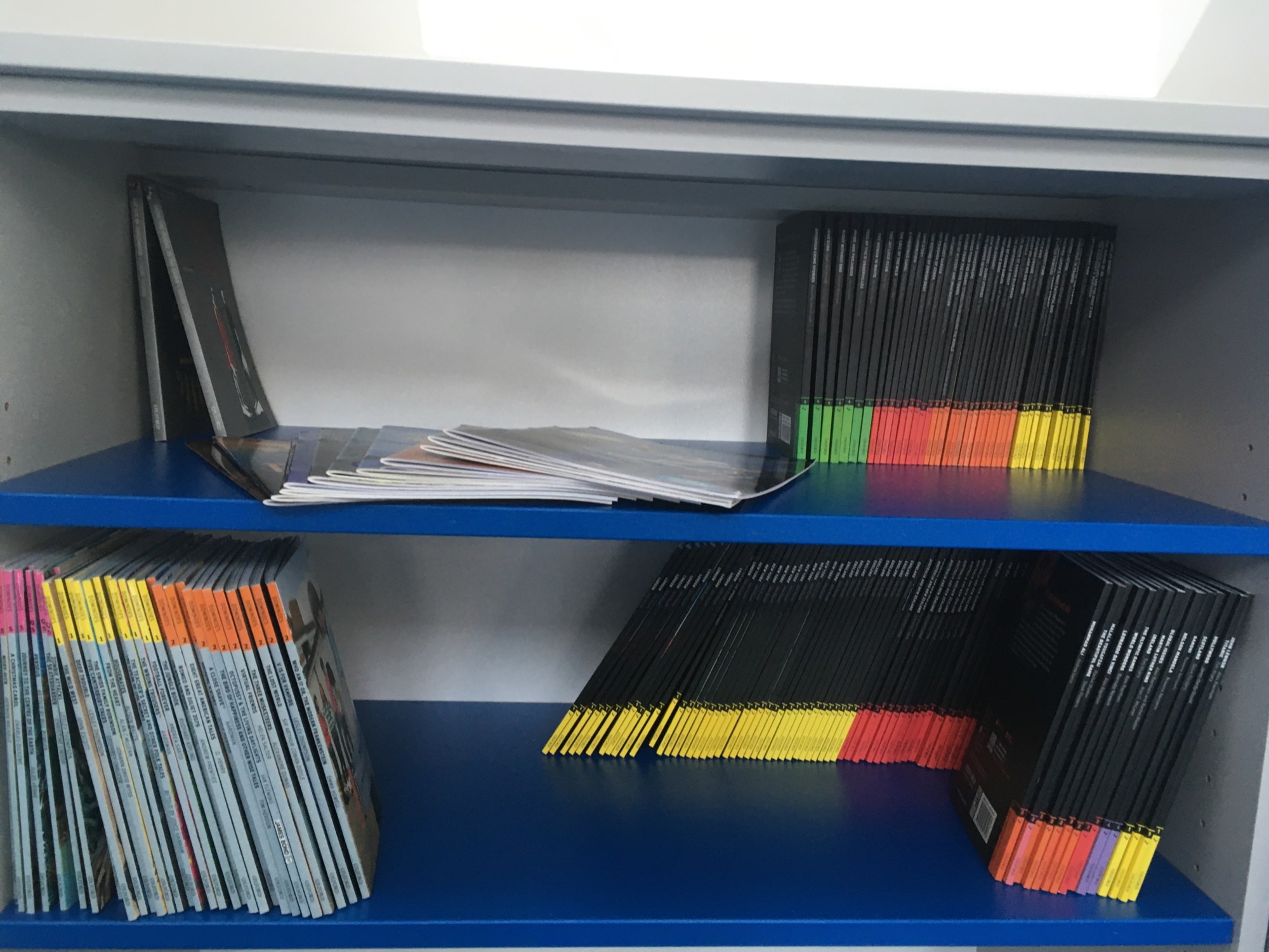 Naše nové učebny byly úspěšně „pokřtěny“ a my je začali hojně využívat. Za pěkného počasí se venku učíme angličtinu – je skvělé být na čerstvém vzduchu! Velmi často využívám ale i modrou jazykovou učebnu, a to především pro práci ve skupinách, hraní různých her či relaxační četbě. Máme zde totiž k dispozici anglickou knihovnu se spoustou knížek zjednodušené četby v různých obtížnostech. Žáci si mohou přečíst komiksy, moderní příběhy, detektivky, fantasy či sci-fi, ale i klasickou beletrii. Zájem o četbu je překvapivý. Věřím, že čtenářů bude postupem času přibývat.