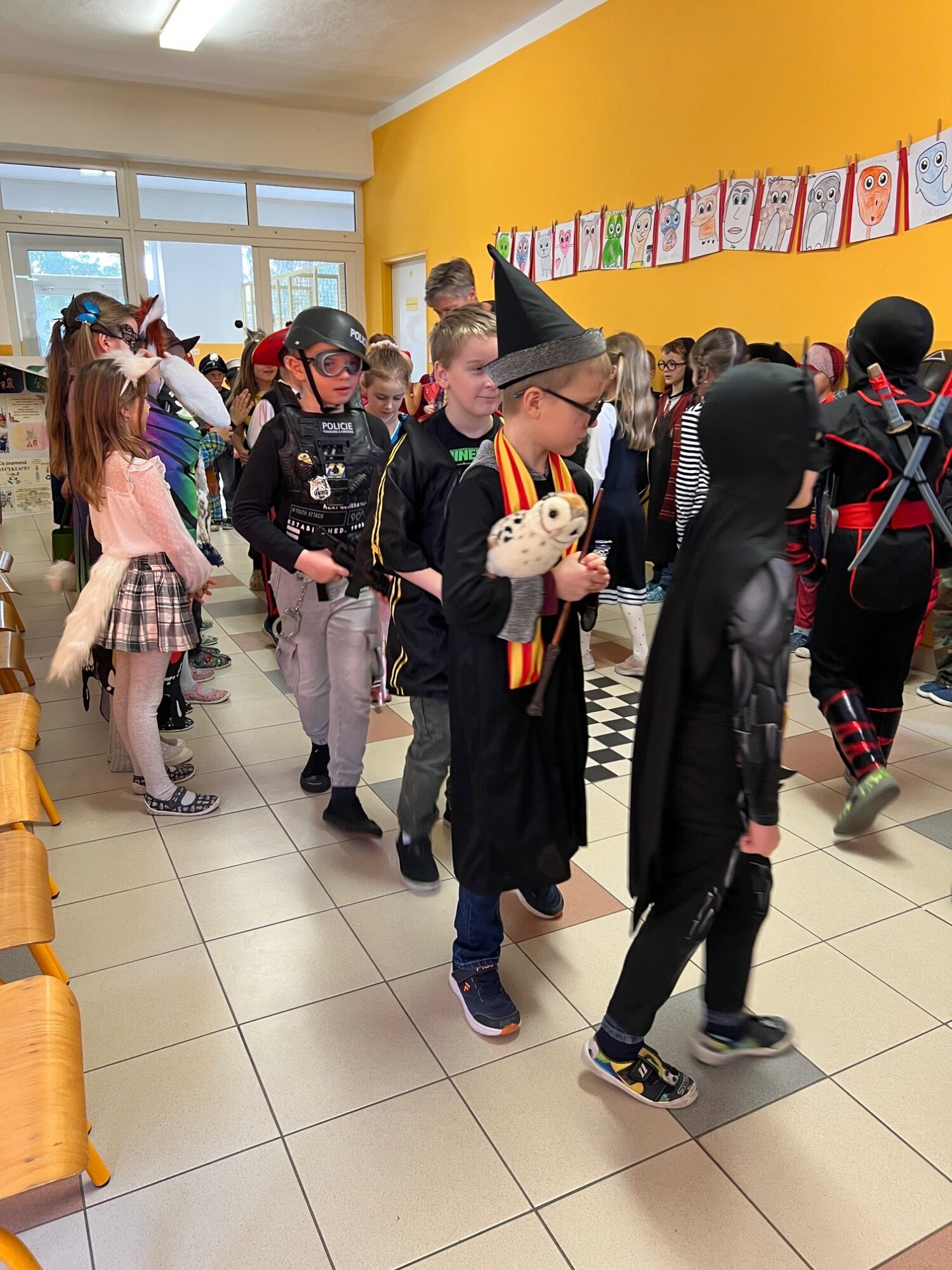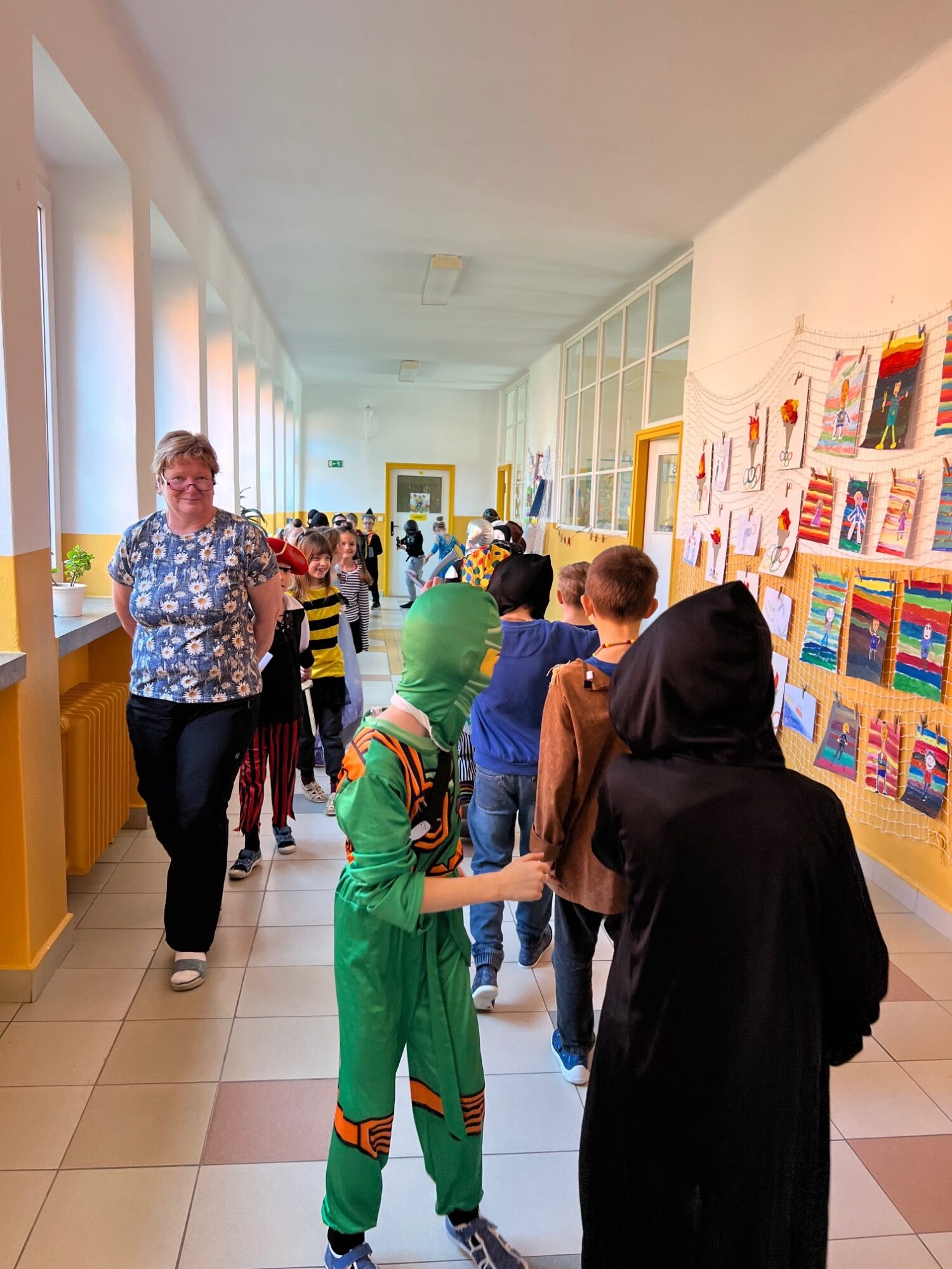 Součástí programu byla také veselá diskotéka a rej masek. Hudba zněla celou školou a atmosféra byla plná smíchu a dobré nálady.