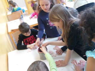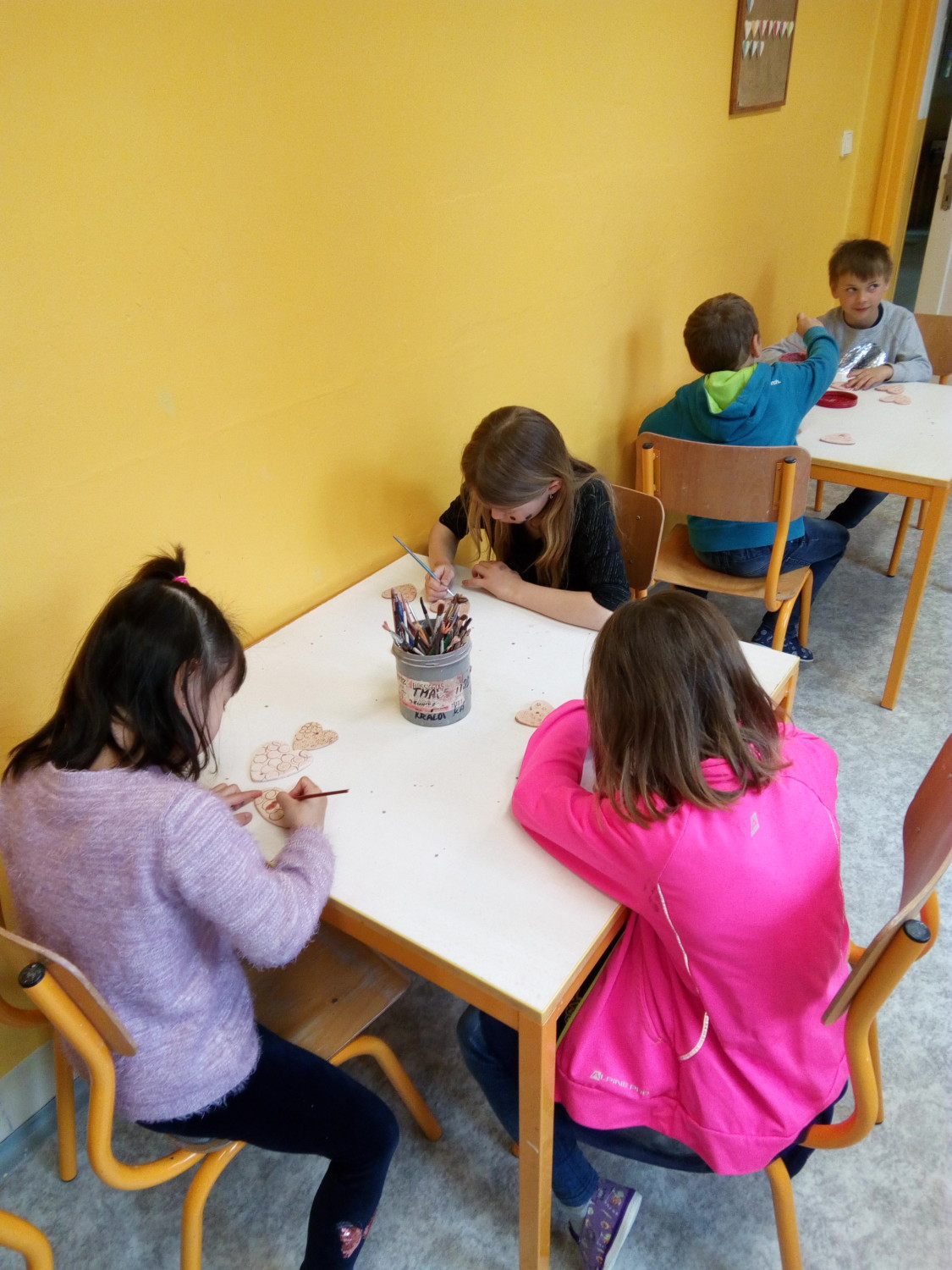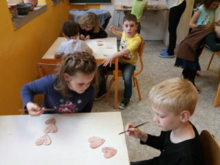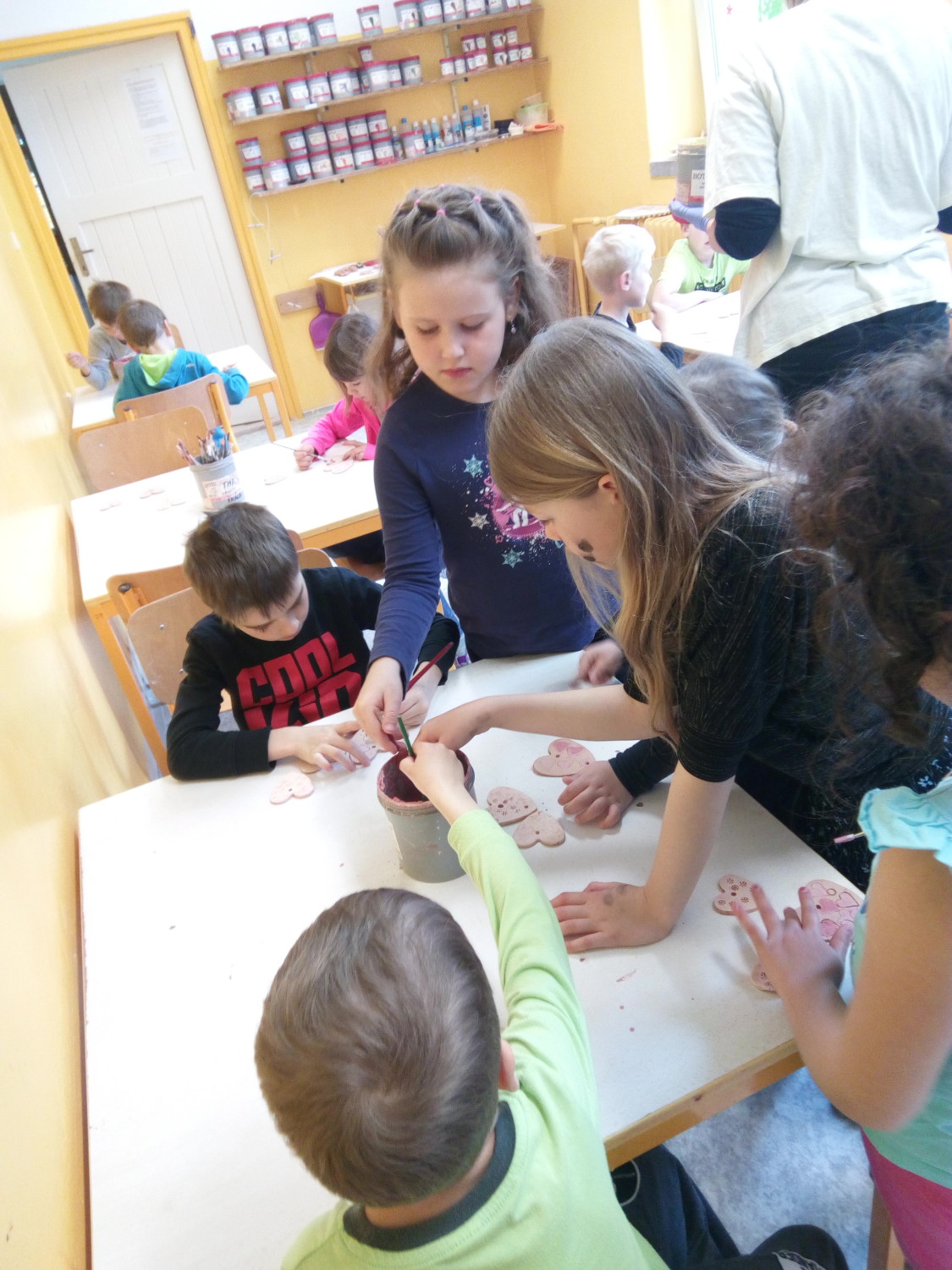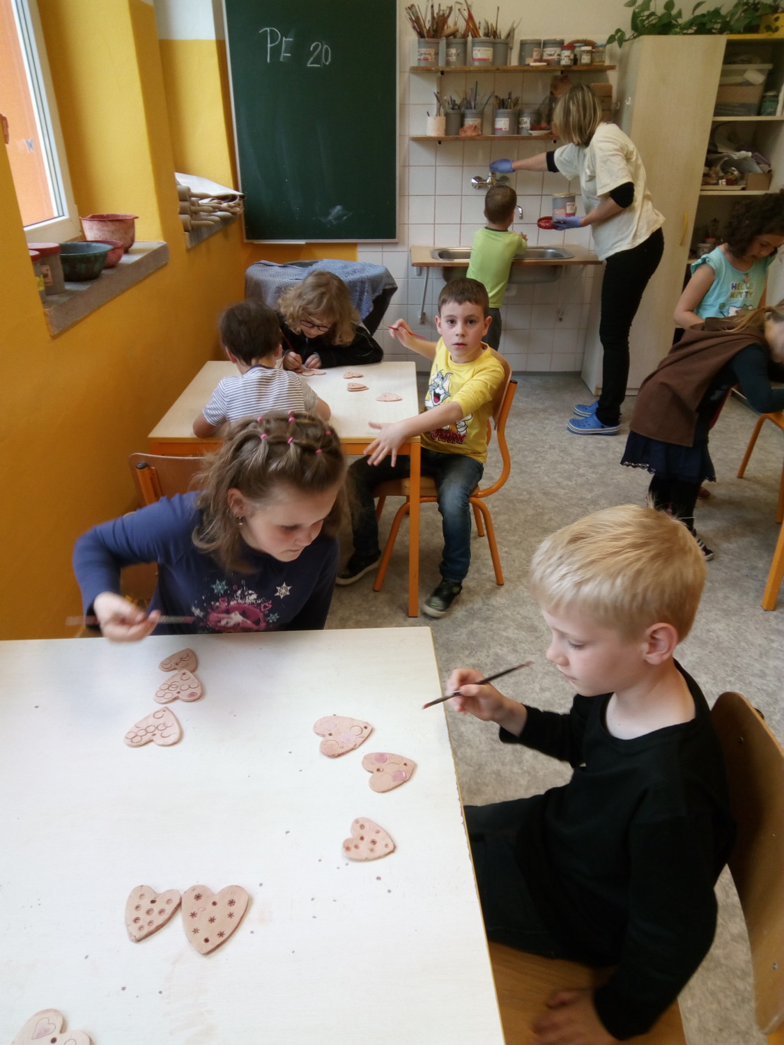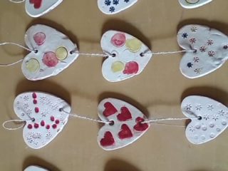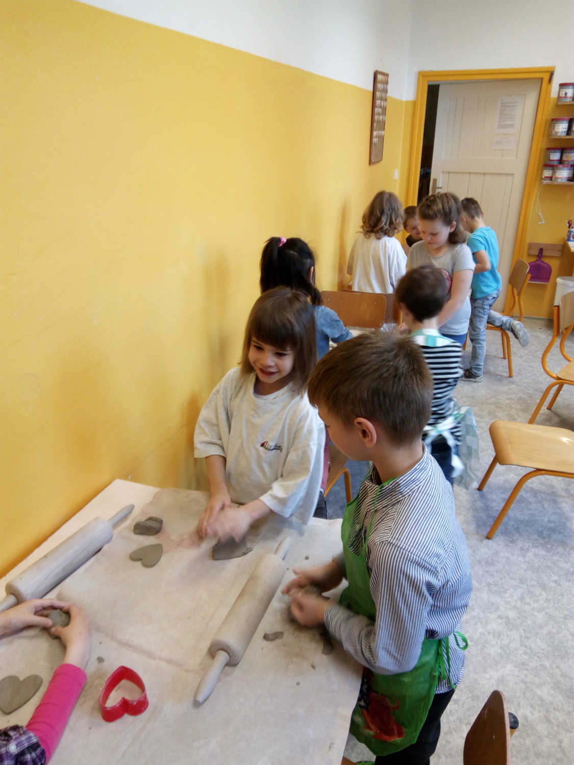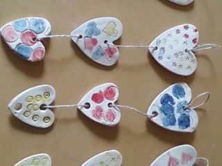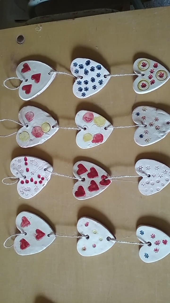 Protože se blíží Den matek a maminky všichni milujeme, tak jim děti vyrobily keramické srdíčkové závěsy.