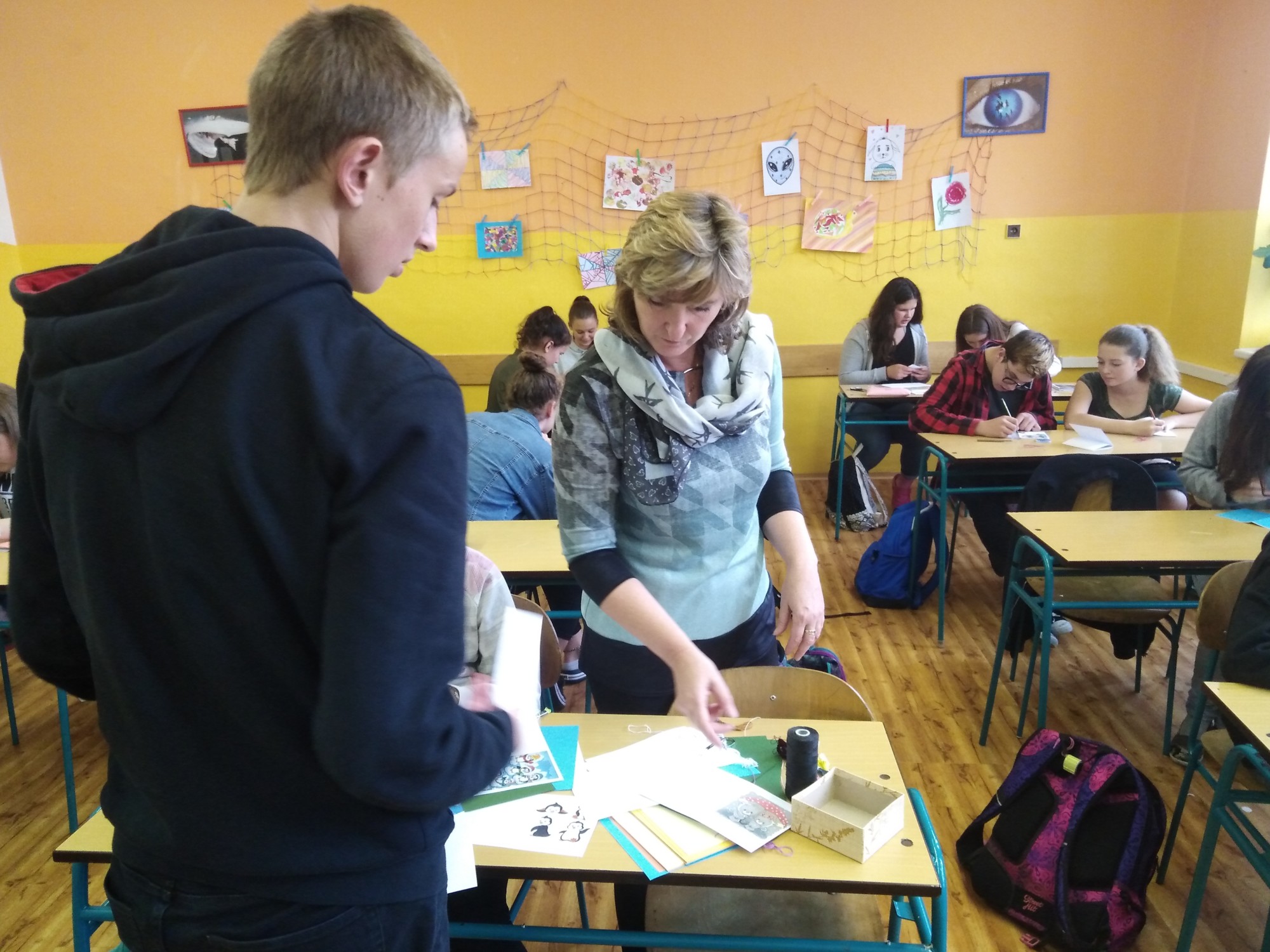 Ve čtvrtek 3. 10. 2019 byli na hodinu Výtvarného semináře pozváni Knihaři z místní SOŠ a SOU v Lanškrouně. Aktuálně probíráme knižní vazbu a tak jsme se dozvěděli, z jakých částí se skládá kniha, jaké jsou druhy vazeb a co to vazba vlastně je. Také nám donesli na ukázku pár výrobků. Zpestřením pro žáky 8. A a 8. B bylo ruční šití bločku. Mohli si vybrat obrázkovou nebo jednobarevnou obálku. Hodinu si všichni užili :-) Tímto děkujeme učitelkám odborného výcviku pí. Faltejskové a pí. Gáborové a těšíme se někdy na další shledání.