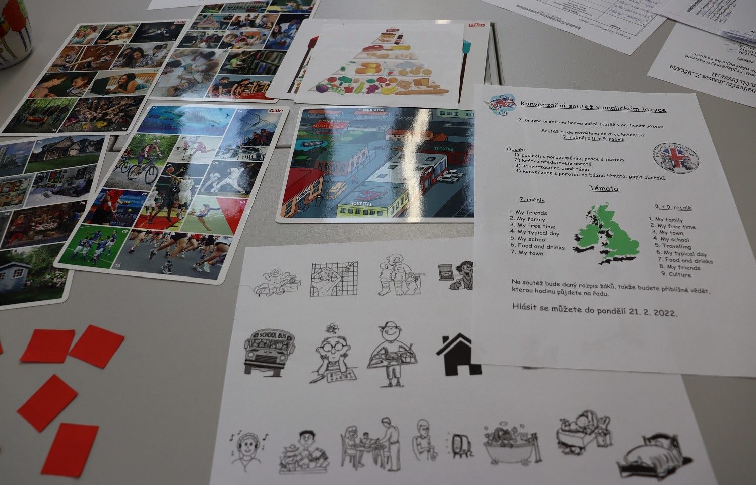 Dne 7. března proběhla ve škole konverzační soutěž v anglickém jazyce. Pro mnohé to byla byla výzva! Žáci se soutěže účastnili ve dvou kategoriích – AI (7. ročník) a AII (8. a 9. ročník). Do soutěže se přihlásilo celkem 20 žáků. Pro obě skupiny byl na úvod nachystán poslech. Pro starší žáky ještě cvičení na práci s textem. Poté je již čekala konverzace s “ hvězdnou“ porotou ve složení Martina Fiebigerová a Tereza Mannová. Žáci měli za úkol se porotě představit, poté mluvit na vybrané téma, odpovídat na zvídavé dotazy poroty a také popsat zvolený obrázek. Vyzkoušeli si, že to není úplná legrace. Někteří zažili stres, nervozitu i výpadky slovní zásoby, jiným nesedlo vybrané téma a nevěděli, co vlastně říct. Všichni ale překonali sami sebe a soutěž dobojovali až do konce. A jak to tedy dopadlo?