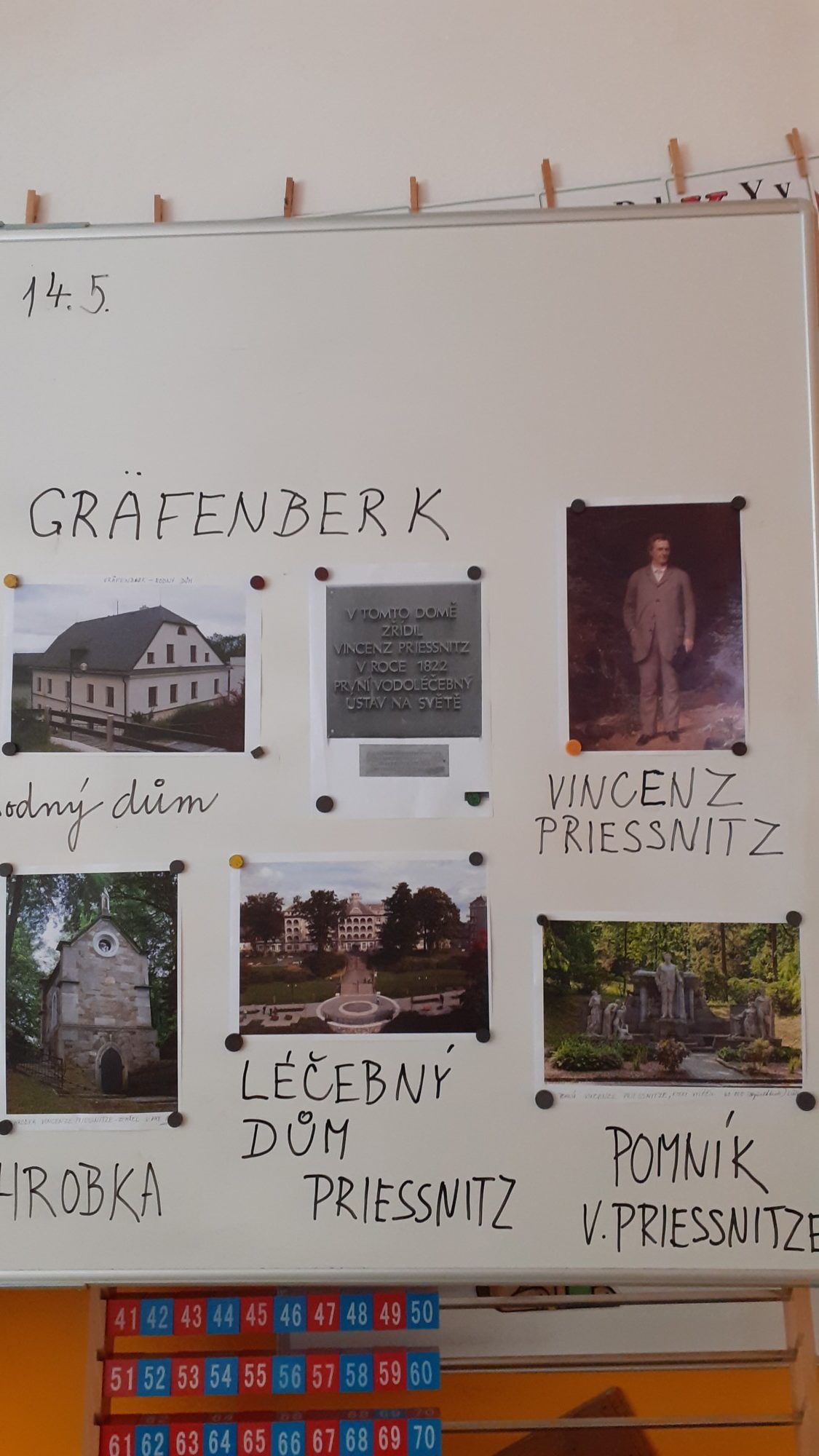 Ve čtvrtek 20.5. nás v naší třídě navštívila paní PaedDr. Alena Malá, která k nám přijela z Jeseníku. Město Jeseník je známé hlavně svými lázněmi, které založil V. Priessnitz. Jeho metody léčby a úspěchy jsme mohli shlédnout ve filmu Prameny živé vody. Dozvěděli jsme se spoustu zajímavostí, plnili různé úkoly a na závěr si ověřili své znalosti v malém kvízu. Nakonec jsme dostali ochutnávku různých minerálních vod, i té, která vyvěrá přímo v lázeňském areálu města Jeseník.