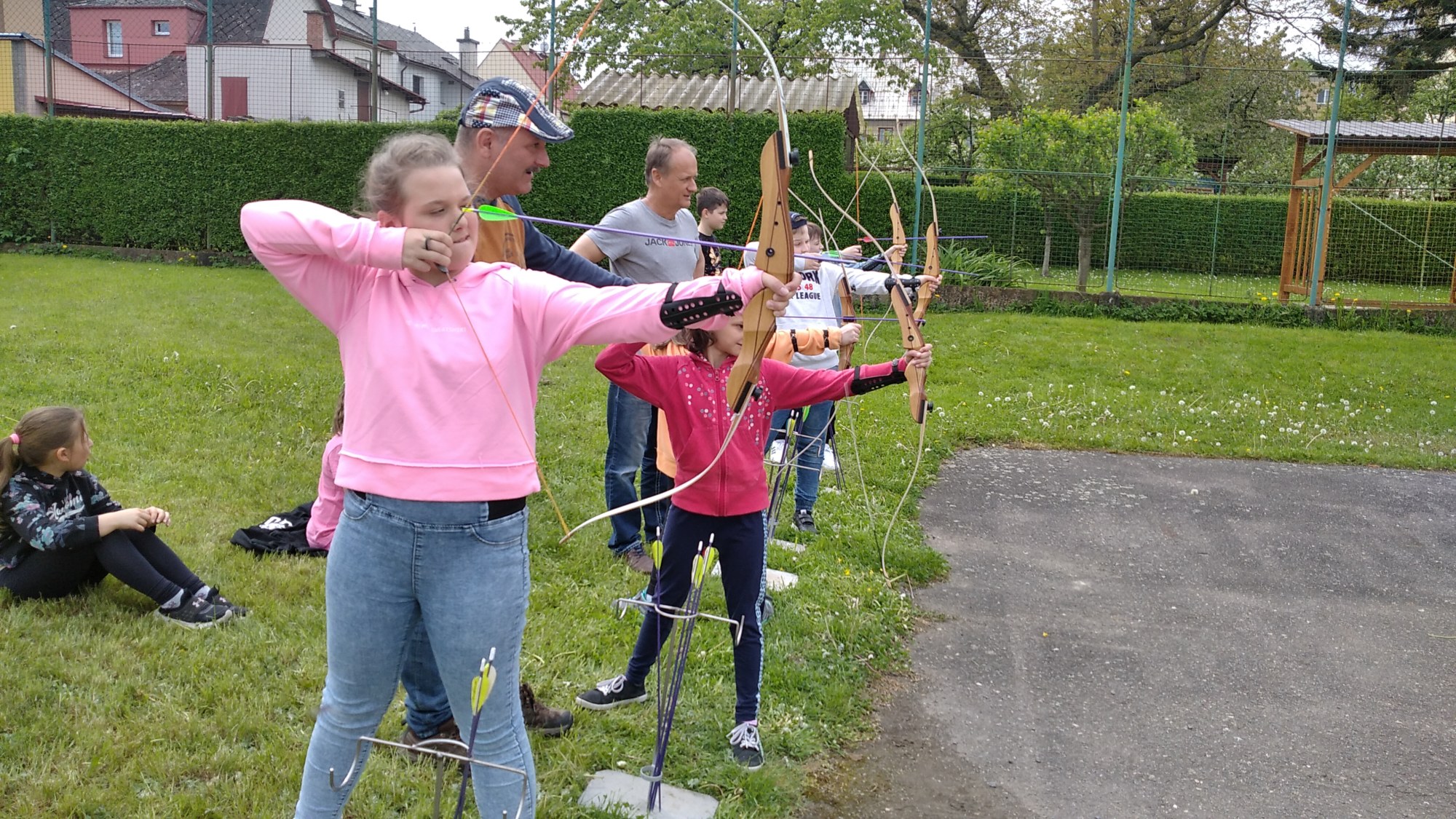 V květnu jsme měli možnost vyzkoušet si, jak se střílí z luku. Vůbec to nebylo jednoduché. Nejdříve jsme se naučili, jak si připravit luk ke střelbě, pak správně zamířit a luk vystřelit. Naštěstí jsme měli šest pokusů. Některým se opravdu dařilo.