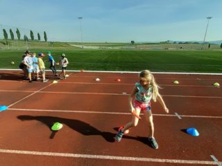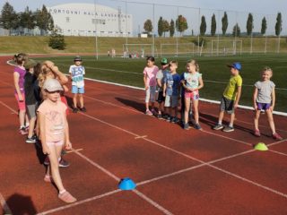 stadionu. Zopakovali si techniku hodu, běhali krátký i dlouhý běh a