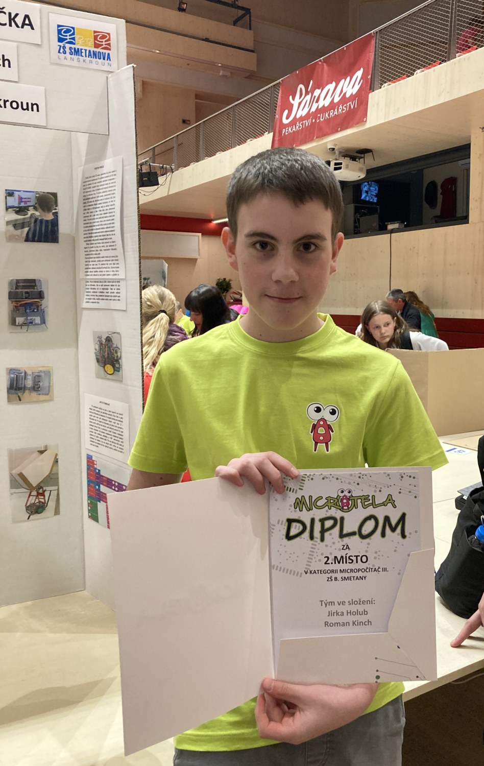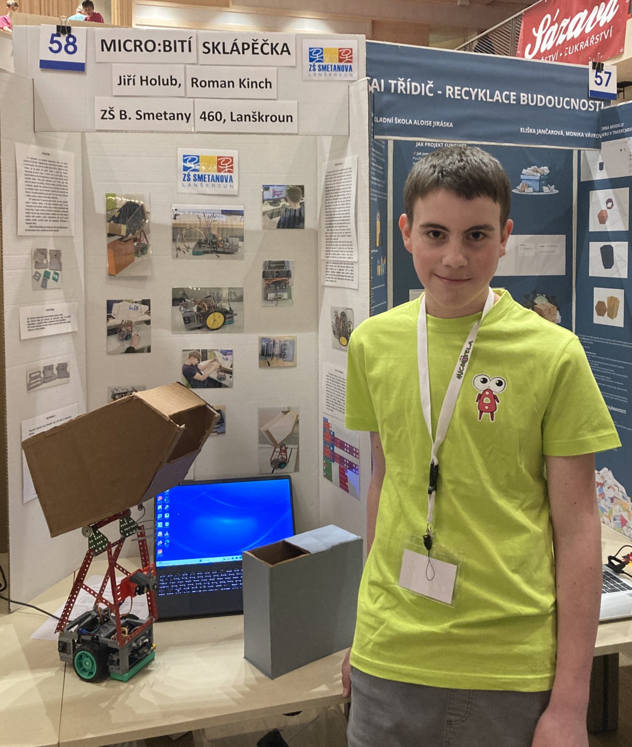 V kategorii Micropočítač III získali druhé místo Jiří Holub a Roman Kinch s autem, které dostalo název Micro:bití sklápěčka. Auto jezdí po čáře a převáží míčky, které vyklopí do předem upravené krabice, která má dané rozměry otvoru.
