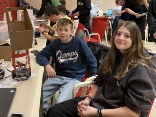 Krásné první místo v kategorii Fischertechnik II získali Petr Klug a Nikolas Beneš, kteří měli v časovém limitu dvou hodin postavit funkční hydraulickou plošinu.