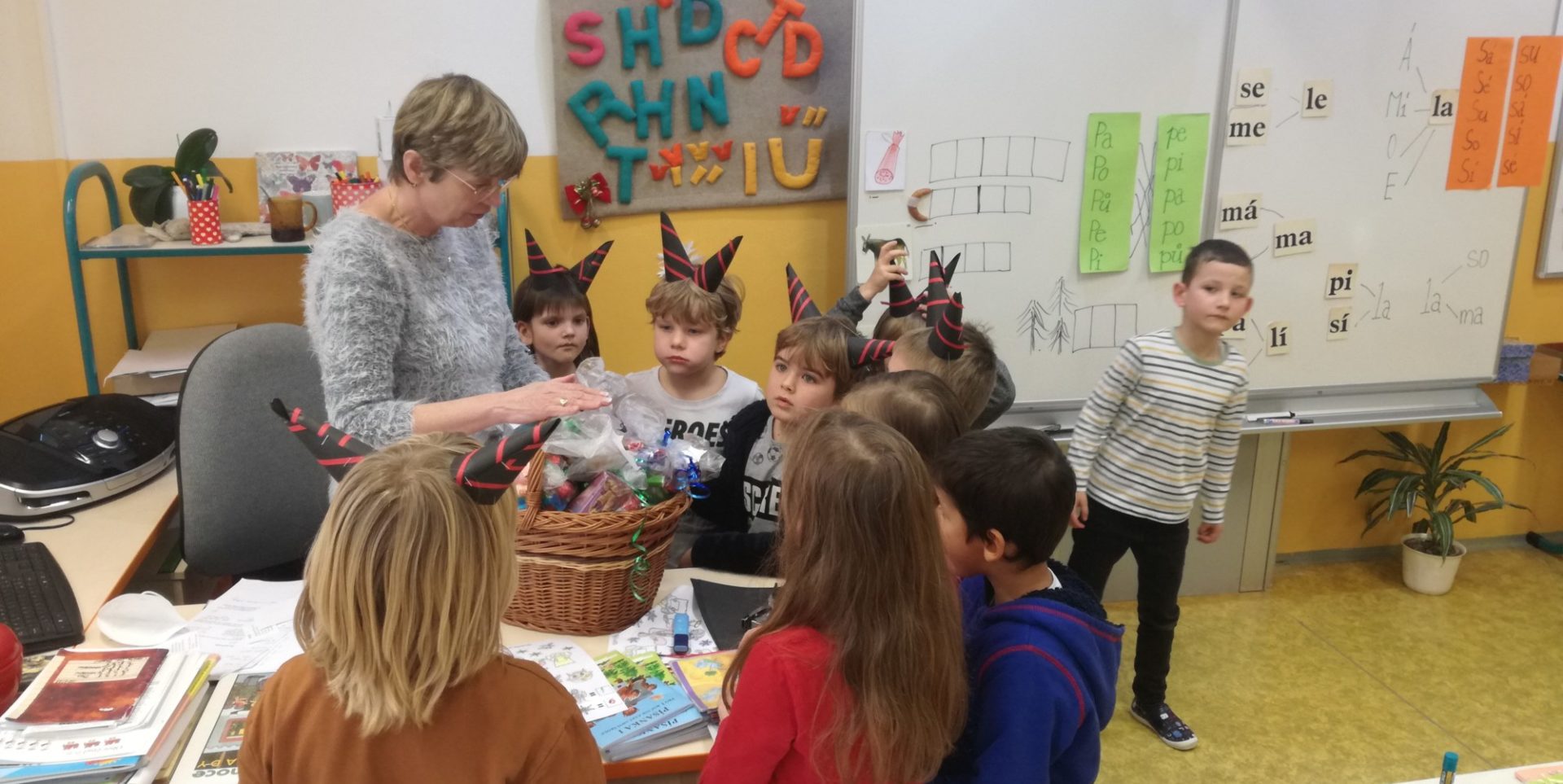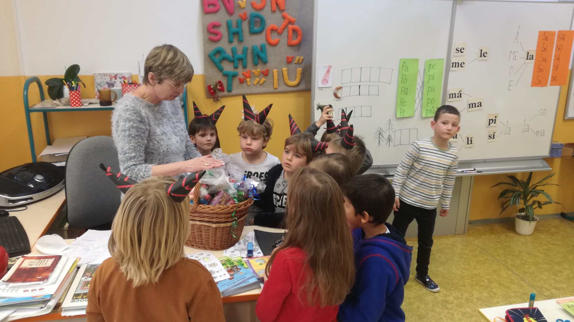 Děti ve třídách vyráběly, počítaly s Mikulášem a čertem, povídaly si s paní učitelkou, dívaly se na čertovskou pohádku. Za splněné úkoly se nakonec dočkaly Mikulášské nadílky – čerti se jim sice neukázali, protože chodí až v neděli, ale nechali jim balíček za dveřmi.