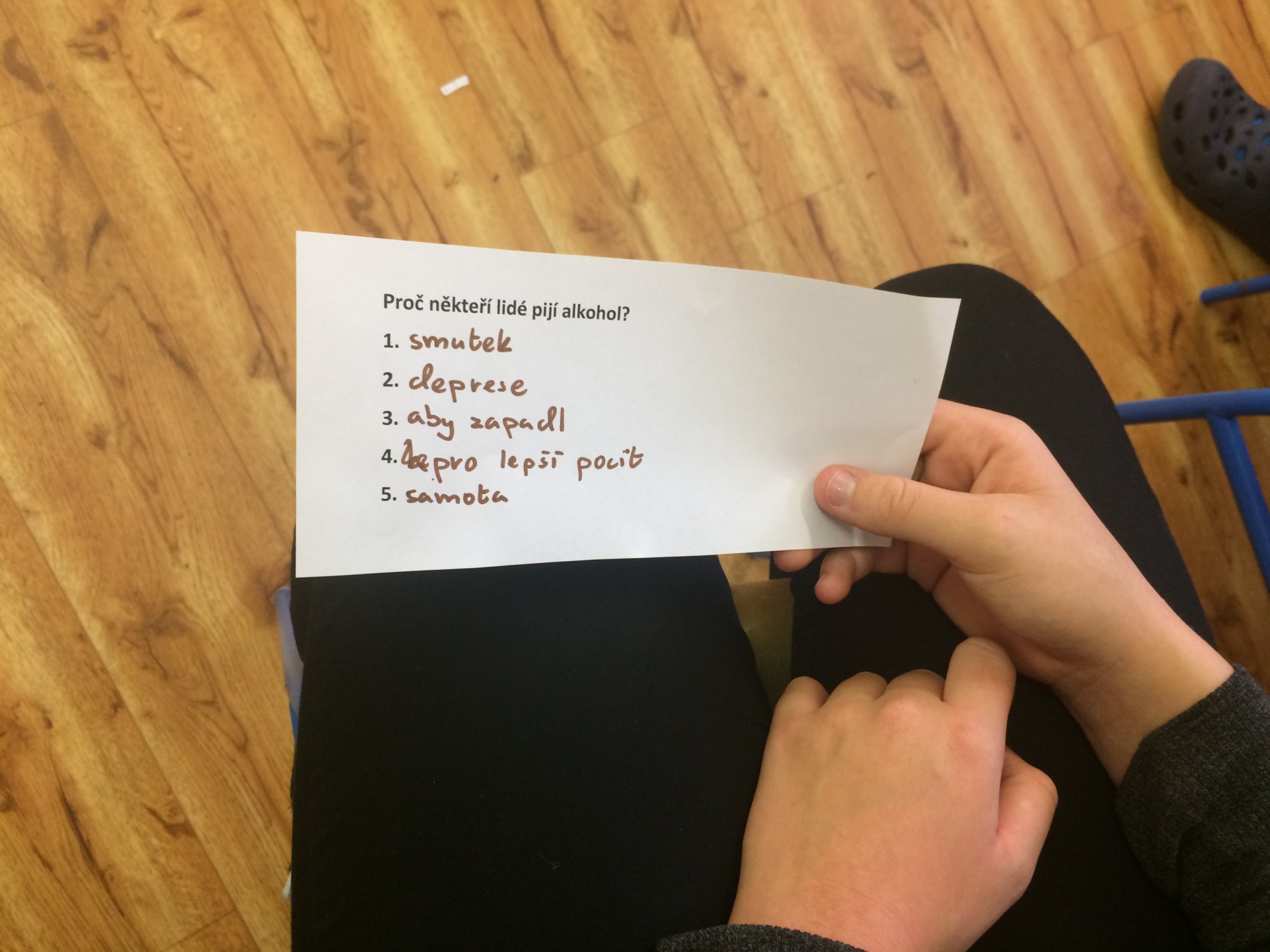 V listopadu se žáci třídy VIII. A zúčastnili programu všeobecné primární prevence Cesty z cesty. Tentokrát byl vybrán program s názvem „Ne návykovým látkám“, který byl zaměřen na prevenci alkoholové i nealkoholové závislosti. Většině žáků se akce líbila, takto ji hodnotili někteří z nich: „ Akce byla zajímavá a také velice poučná. Zbytečné to rozhodně nebylo, dalo mi to spoustu nových poznatků a informací o závislosti jak na drogách, alkoholu, tak i na hazardu… Mohli jsme říkat svoje názory…. Na konci nám paní vyprávěla příběh o Kamile, jak se změnila. Také jsme si měli na papírky napsat čtyři věci, které jsou pro nás důležité a postupně, jak Kamila ztrácela jednotlivé hodnoty, tak jsme papírky měli vyhazovat… Klidně bych si to dala znovu, moc se mi to líbilo.“