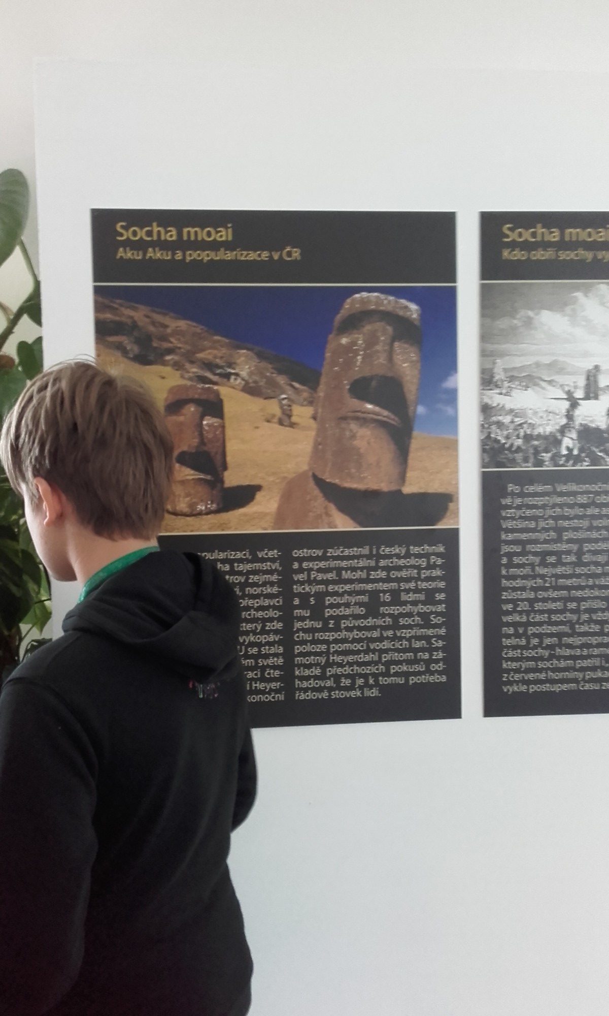 Žáci V.B se učí nejen ve třídě. V lanškrounském muzeu navštívili jedinečnou výstavu Největší záhady a tajemství světa. Nejdříve viděli sochy Moai, které lze spatřit na Velikonočním ostrově. Jsou vysoké 21 metrů a některé mají ještě červené čepice. Dále nás zaujala křišťálová lebka, která byla nádherná a svítila. Vznikla opracováním nerostu původními obyvateli Ameriky. Zajímavá je replika turínského plátna, ve kterém byl zabalen Ježíš Kristus. Z videa jsme se dozvěděli, jak se vyrobila i replika první obrovské knihy Ďáblova bible, která měla více jak 600 stran. Obdivovali jsme její krásné ilustrace. Výstava byla zajímavá a všem ji doporučujeme. Jana Fryaufová
