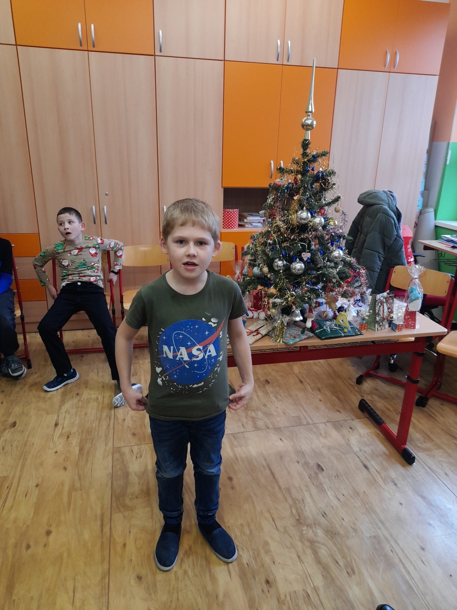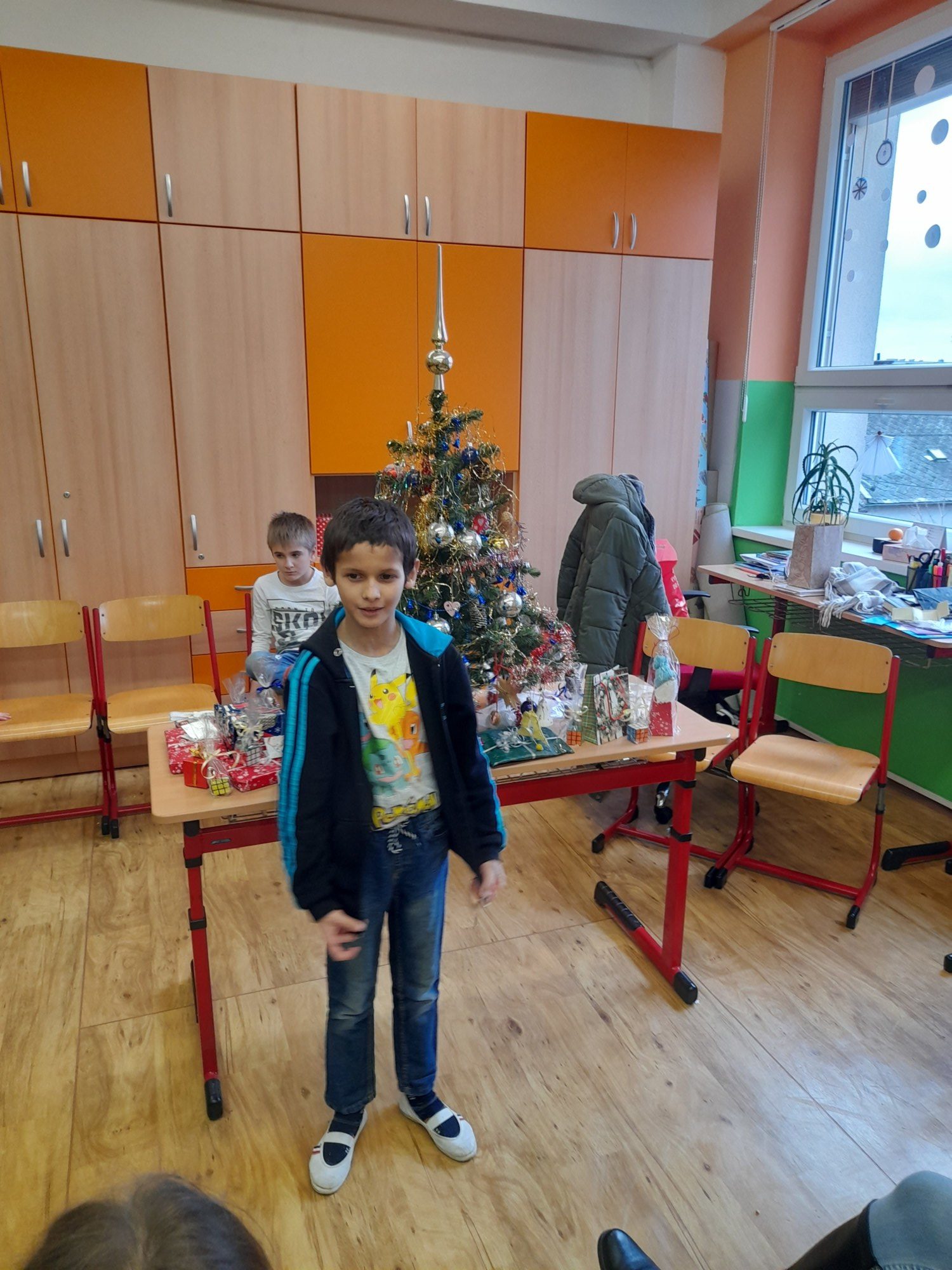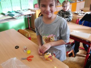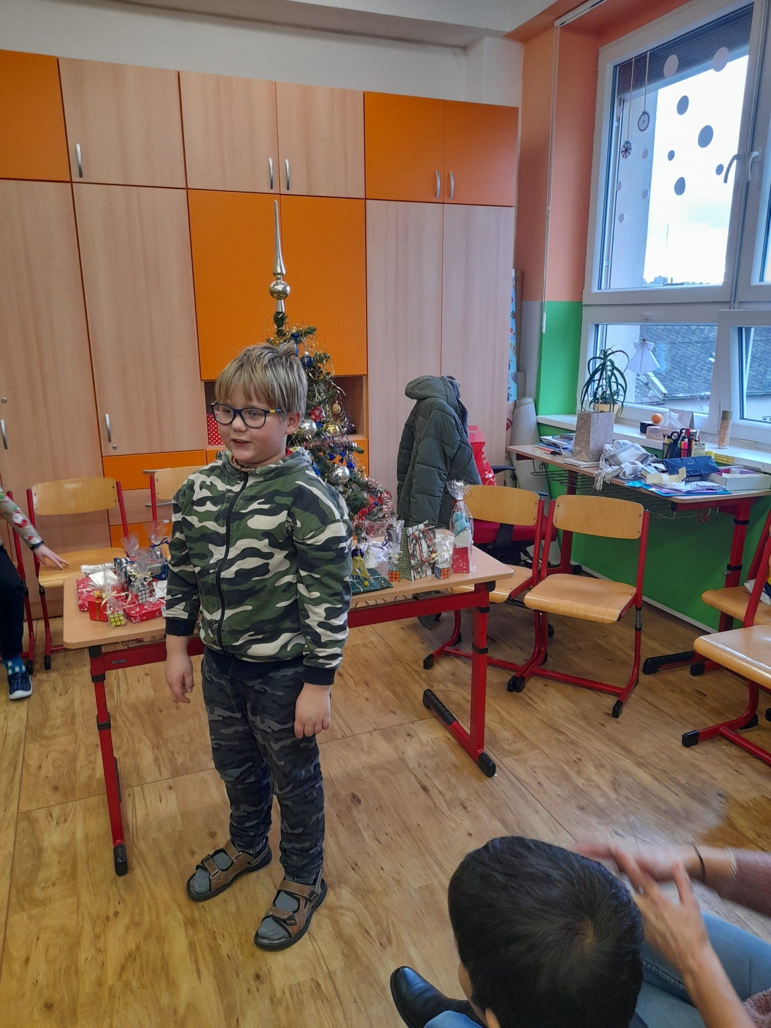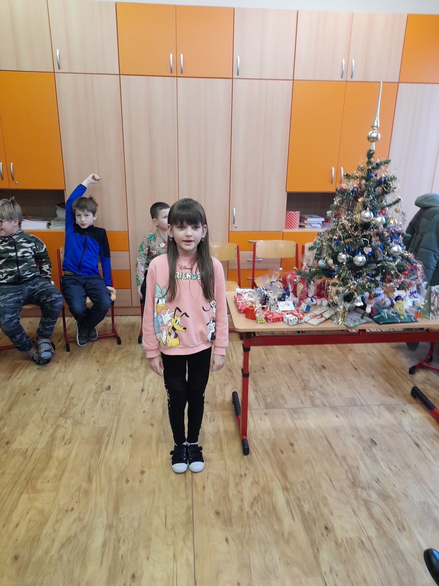 První hodinu pracovaly děti ve skupinkách na zimním obrázku a trénovaly počítání a vyjmenovaná slova, druhou hodinu v angličtině hrály hry i na chodbě. Třetí hodinu vyráběly z jablíček svícínek. Na závěr byla besídka s přednášením básniček, ochutnávkou cukroví od maminek a rozbalováním dárků. Dětem dopoledne uběhlo jako voda. Pak už jsme si jen popřáli krásné Vánoce.