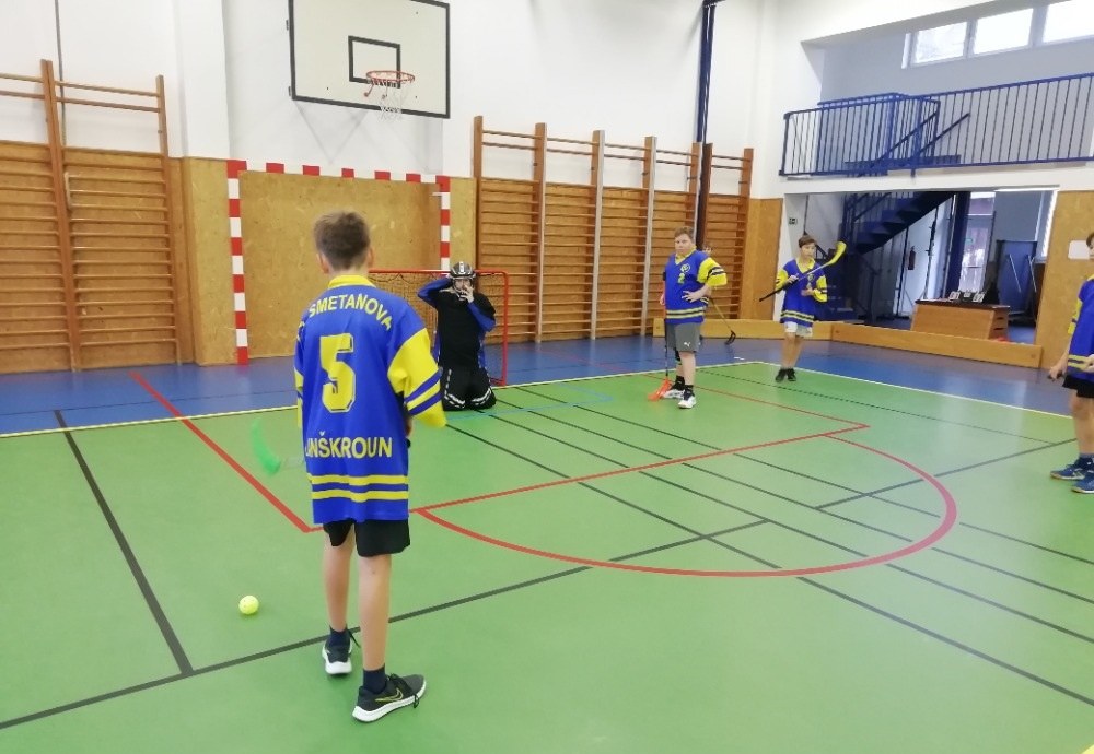 Okrskového kola se zúčastnily tři školy – ZŠ B. Smetany, ZŠ Horní Čermná a ZŠ A. Jiráska. Hrálo se 2 x 12 minut, každý s každým. Hned v prvním utkání naši hráči nastoupili proti mužstvu z Horní Čermné. Vyrovnané utkání se rozhodovalo až v koncovce zápasu. Po samostatném nájezdu se Horní Čermná ujala vedení 5:4. Vyrovnat se nám již nepodařilo a v závěru jsme dostali ještě jednu branku. Konečný stav 6:4 pro Horní Čermnou. Ve druhém zápase kluci ze sebe vydali maximum, ale na lepší výsledek než 10:3, pro ZŠ A. Jiráska, to nestačilo. Postup do okresního kola si po zásluze odnesla ZŠ A. Jiráska, která ve svém druhém utkání porazila ZŠ Horní Čermnou 9:3.
