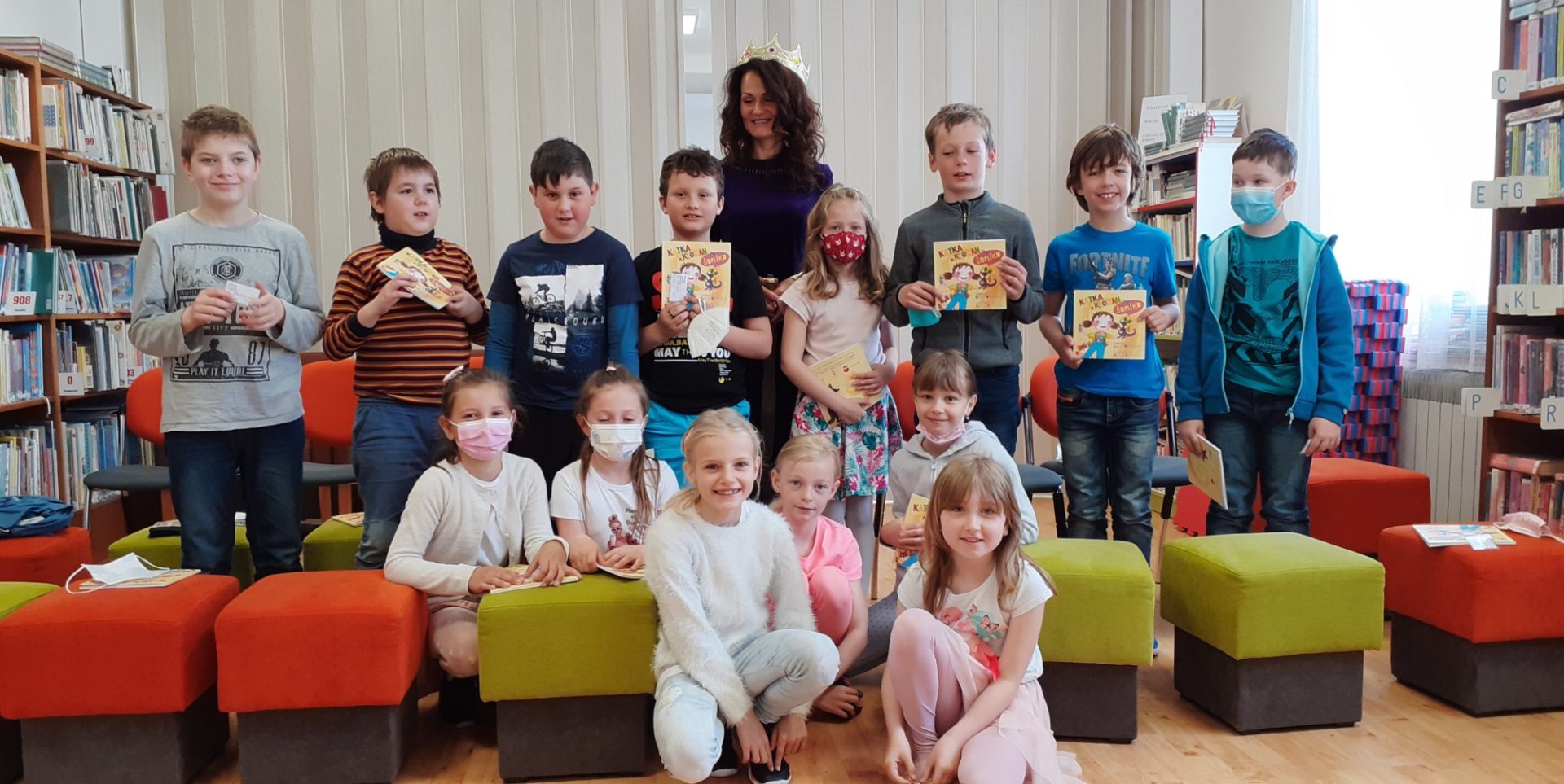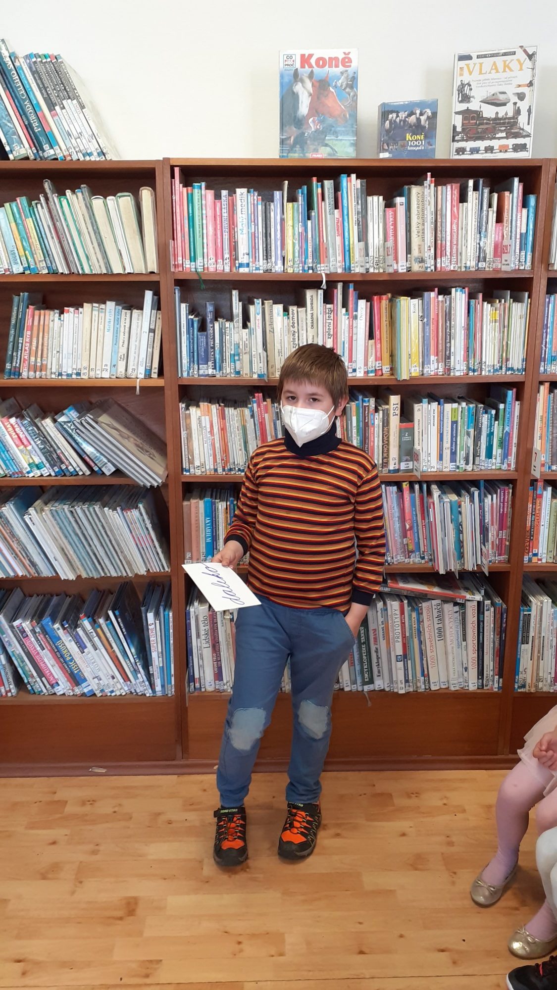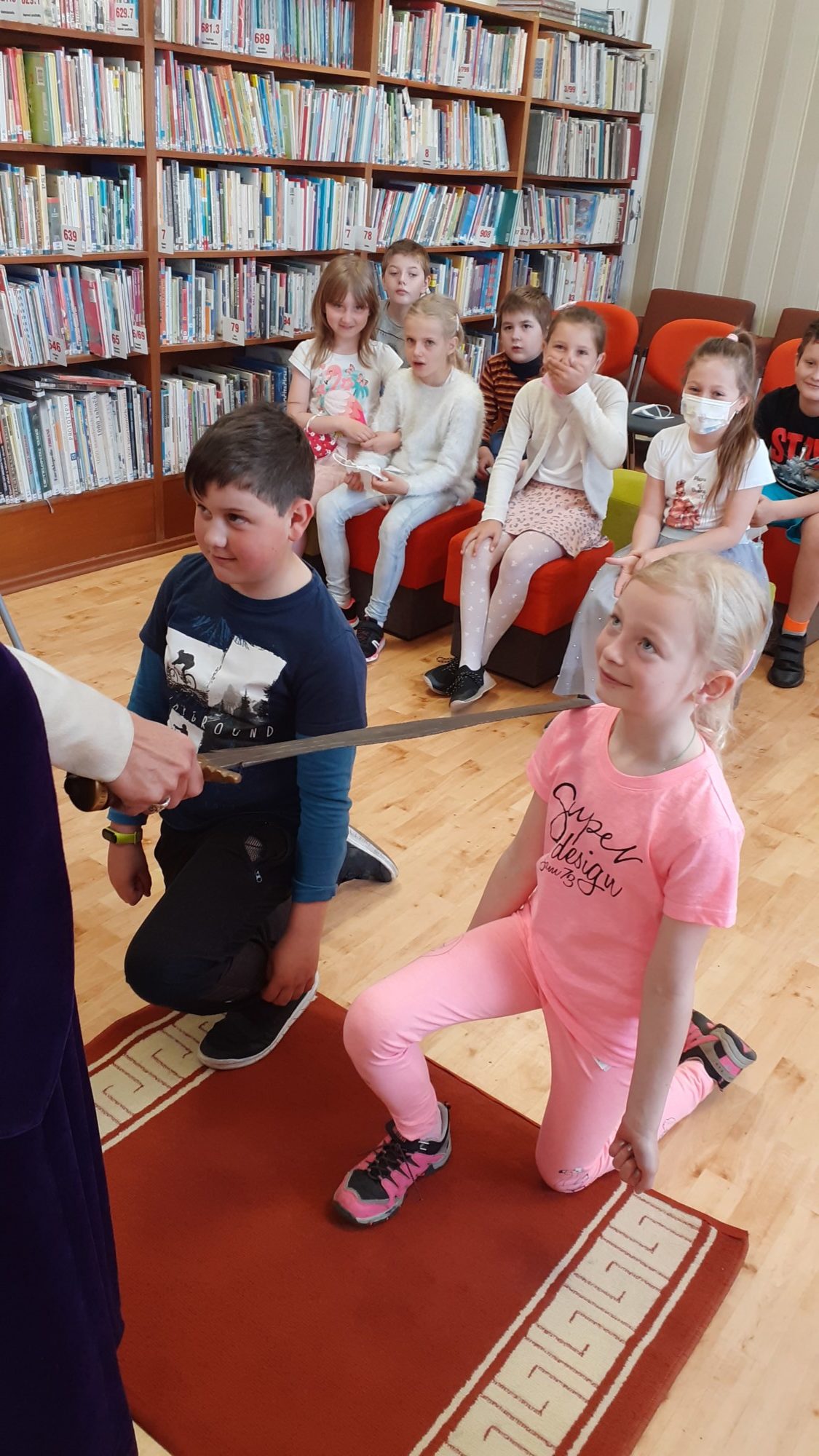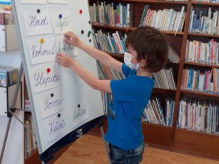 Na den dětí jsme byli pozváni do knihovny, kde byli naši žáci pasováni na čtenáře. Tato akce byla naplánována již na podzim, ale virus nám naše plány překazil. Na konci druhé třídy jsou již všichni zdatnými čtenáři, ale velmi nás potěšilo, že všichni dostali svou vlastní kartičku čtenáře a mohou navštěvovat místní knihovnu a půjčovat si knížky, které knihovna nabízí. Paní knihovnice dětem vysvětlila, jak se chovat ke knihám, jaká jsou pravidla půjčování knih a různými úkoly si vyzkoušela děti, jak ovládají čtení a porozumění textu. Na závěr si děti říkankou přivolali „Královnu ABECEDKU“, která je slavnostně mečem pasovala na opravdové čtenáře.