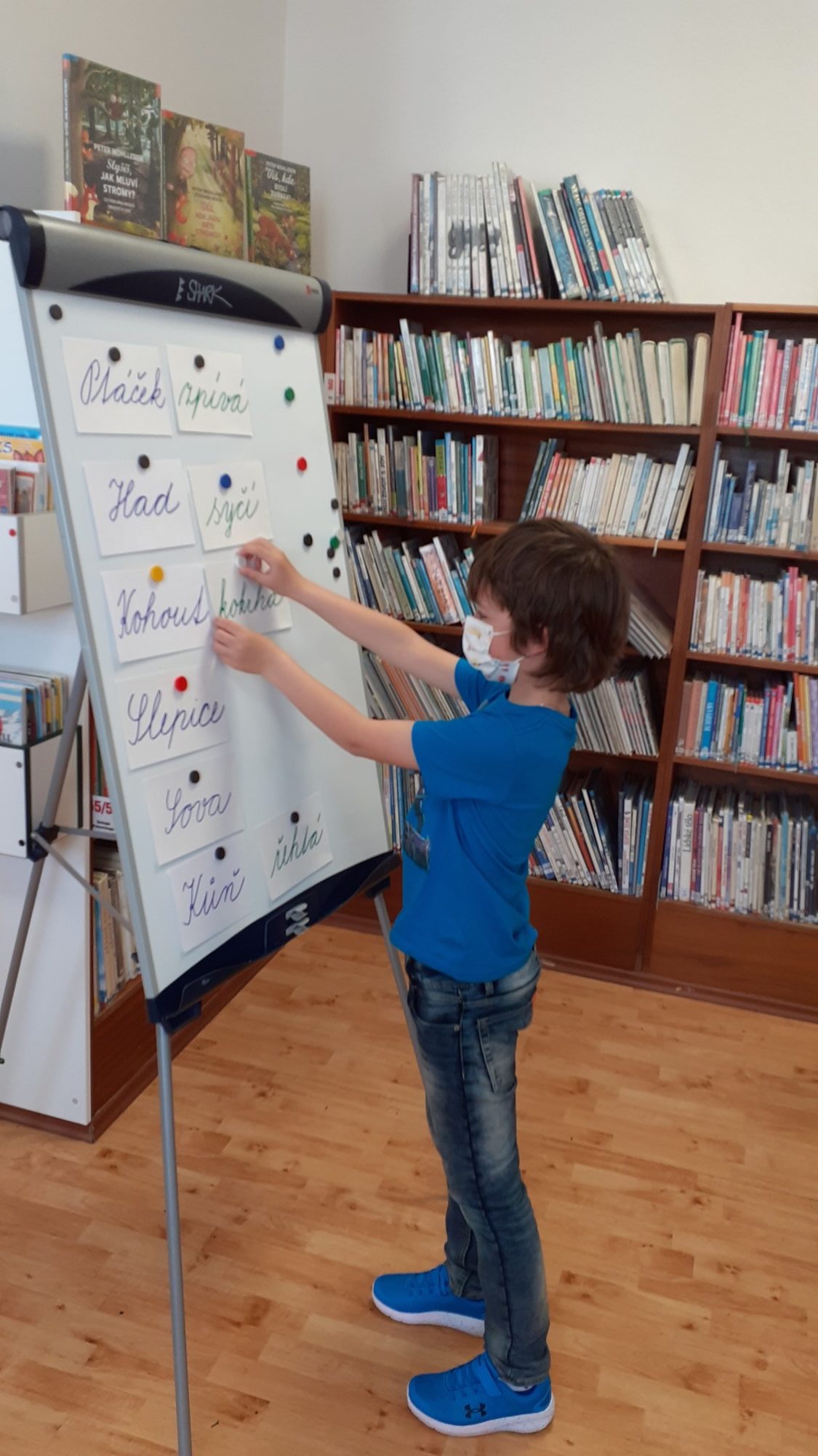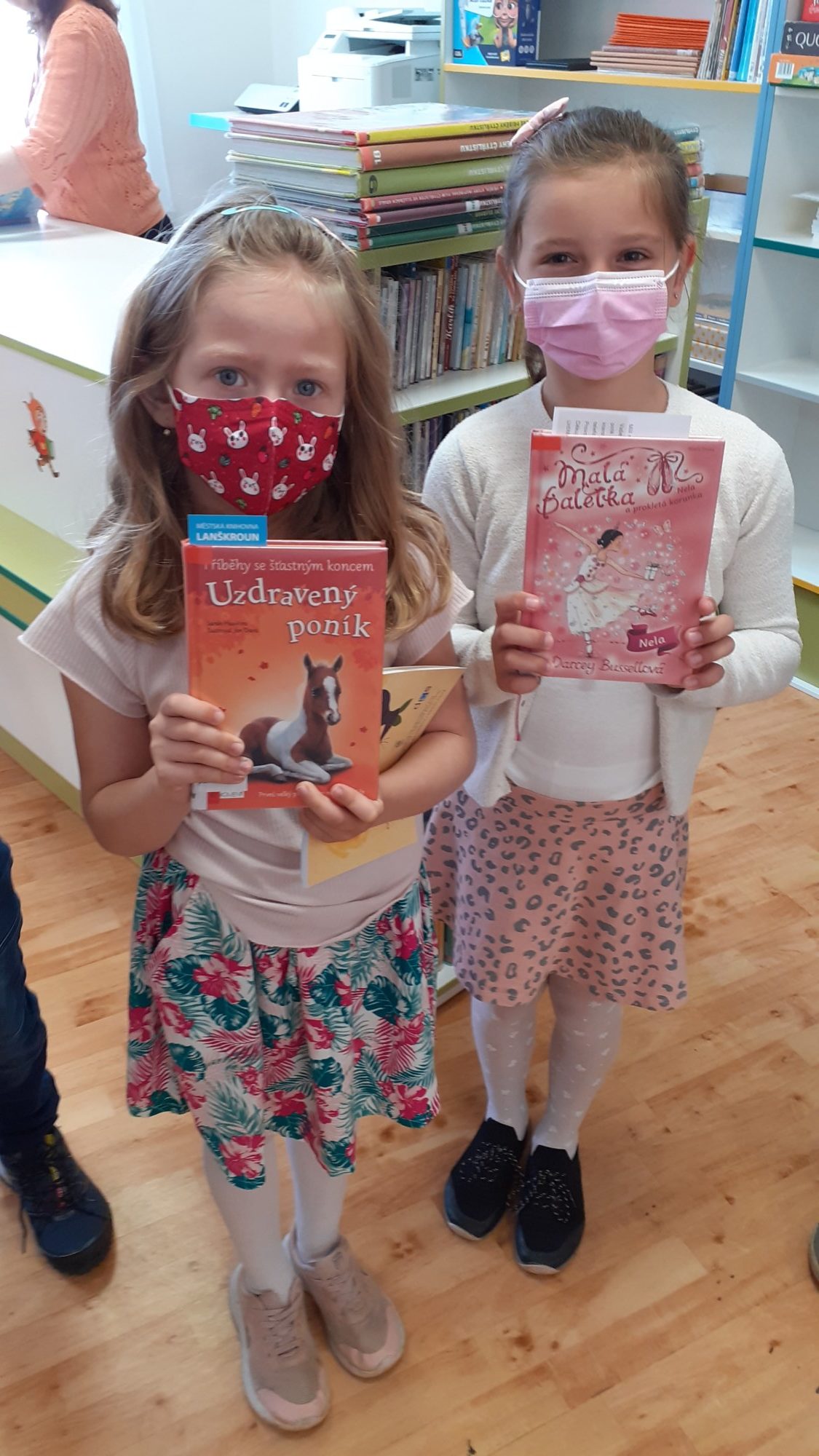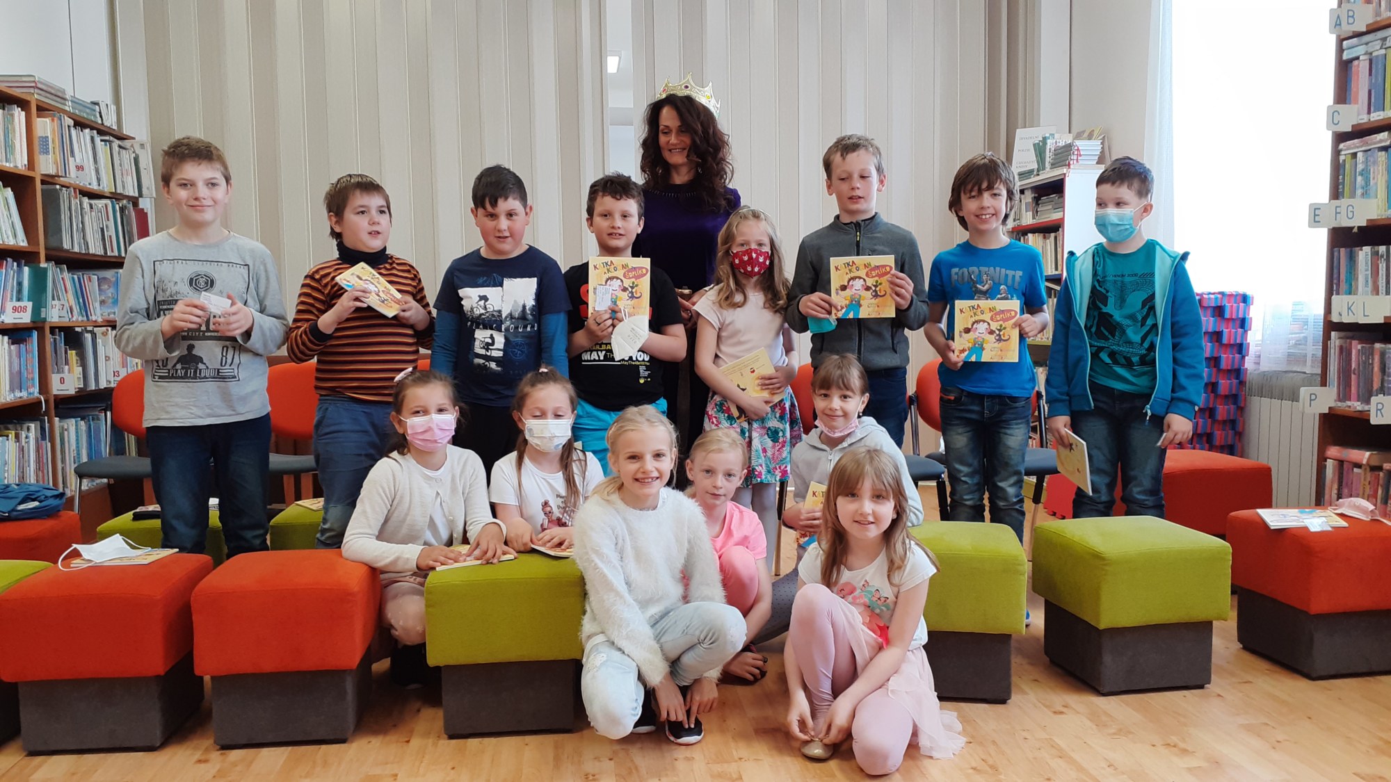 Na den dětí jsme byli pozváni do knihovny, kde byli naši žáci pasováni na čtenáře. Tato akce byla naplánována již na podzim, ale virus nám naše plány překazil. Na konci druhé třídy jsou již všichni zdatnými čtenáři, ale velmi nás potěšilo, že všichni dostali svou vlastní kartičku čtenáře a mohou navštěvovat místní knihovnu a půjčovat si knížky, které knihovna nabízí. Paní knihovnice dětem vysvětlila, jak se chovat ke knihám, jaká jsou pravidla půjčování knih a různými úkoly si vyzkoušela děti, jak ovládají čtení a porozumění textu. Na závěr si děti říkankou přivolali „Královnu ABECEDKU“, která je slavnostně mečem pasovala na opravdové čtenáře.