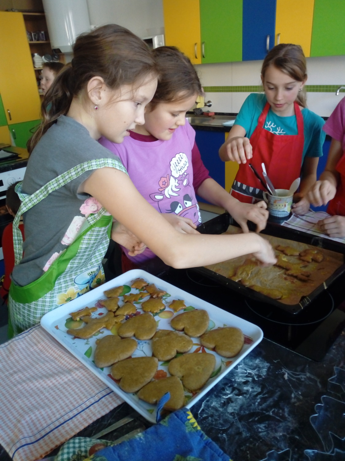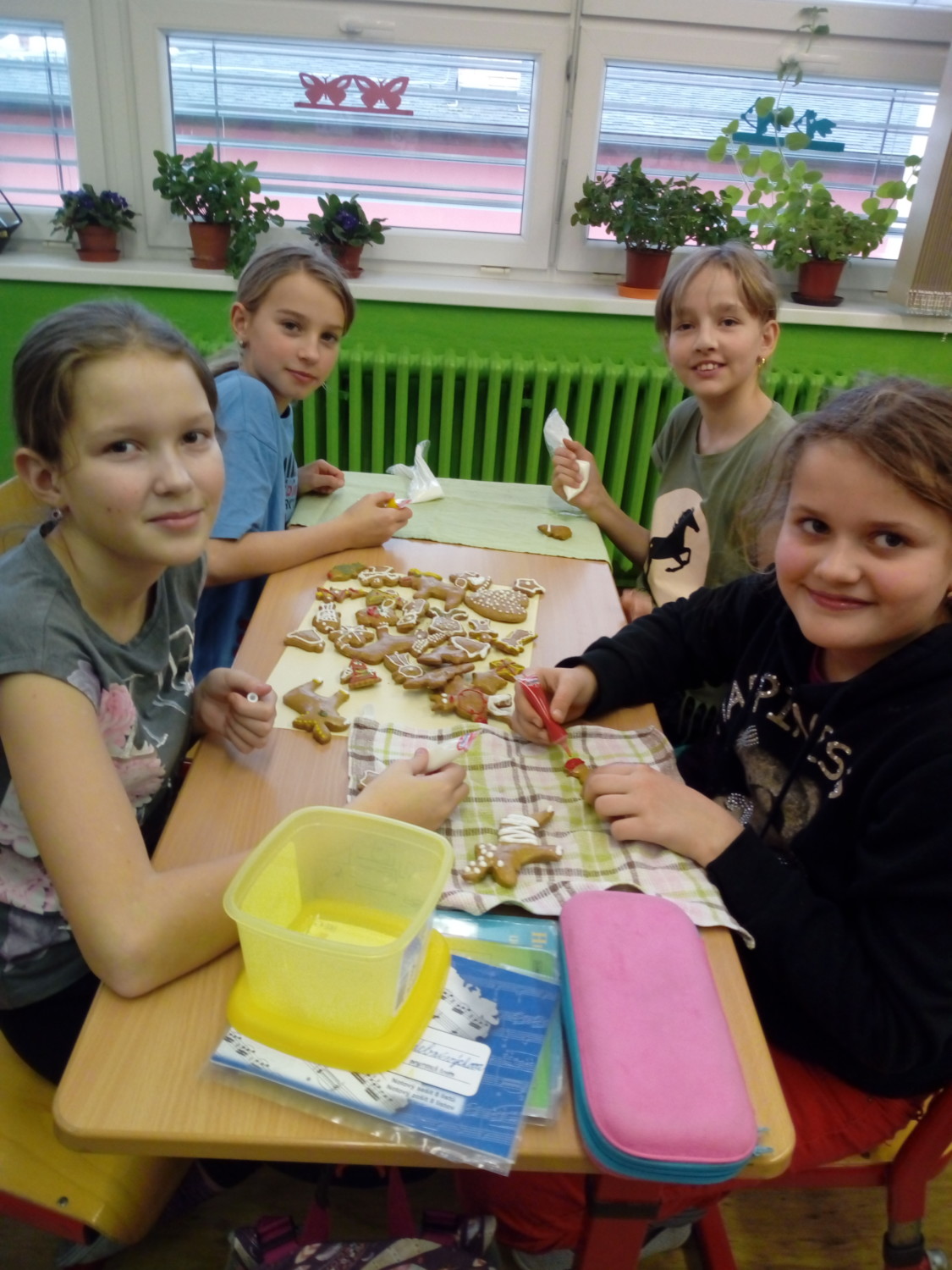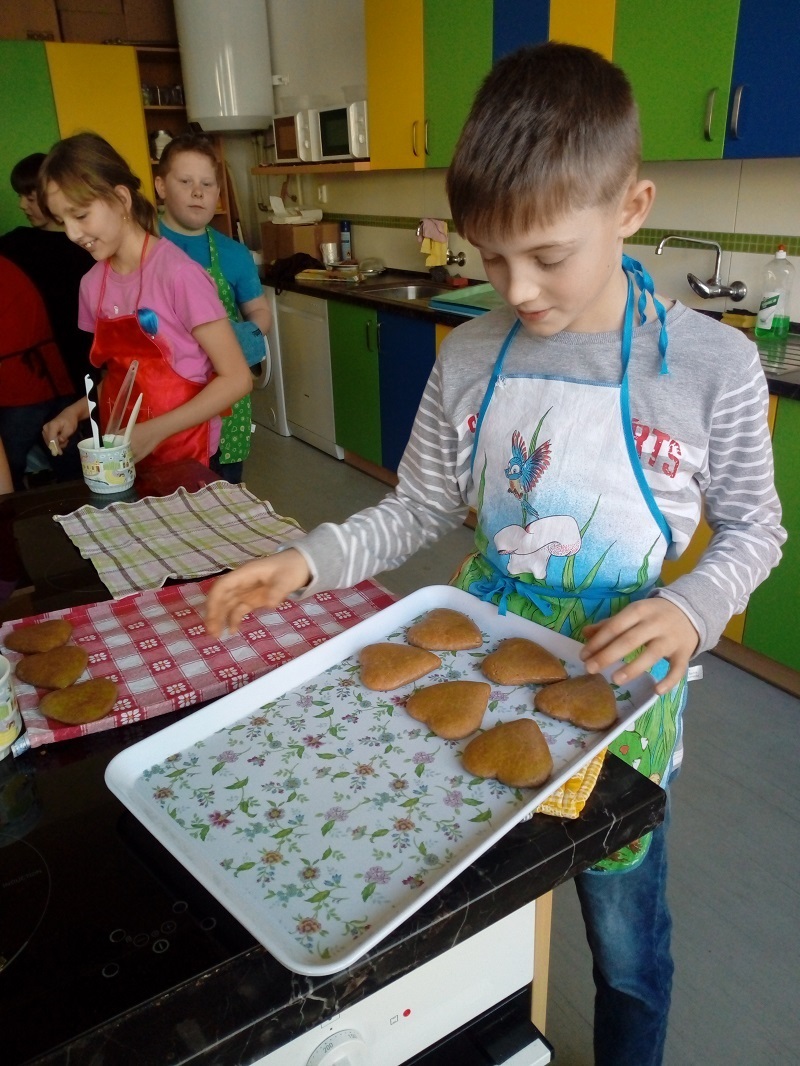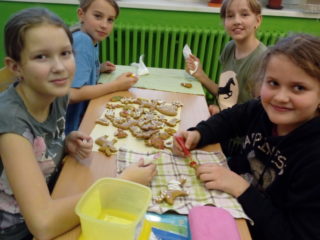 V předvánočním čase děti ze 4. A opět pekly perníčky v kuchyňce. Tentokrát se přidaly k výzvě paní učitelky Fiebigerové, aby napekly také srdíčka na charitativní akci Srdce pro Kristýnku. Pečení je bavilo a všichni se zapojili i do zdobení. Věříme, že prodejem srdíček potěšíme nejen Kristýnku ze 3. třídy. p. uč. L. Zachařová