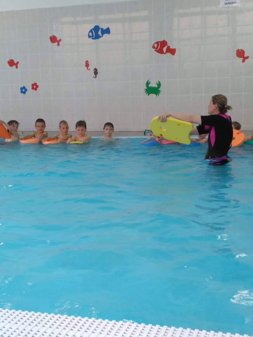 Na středu 15. května se všechny děti z 1.B těšily. Začínal totiž plavecký výcvik. Celkem nás čeká 6 lekcí v bazénu na ZŠ Dobrovského. Plavčice Verča a Eva nás učí, jak správně splývat na vodě, potápět se a plavat. Na závěr každé lekce si můžeme ve vodě i zaskotačit. Z dětí se v tu chvíli stávají malí vodníci, nikdo se vody nebojí.