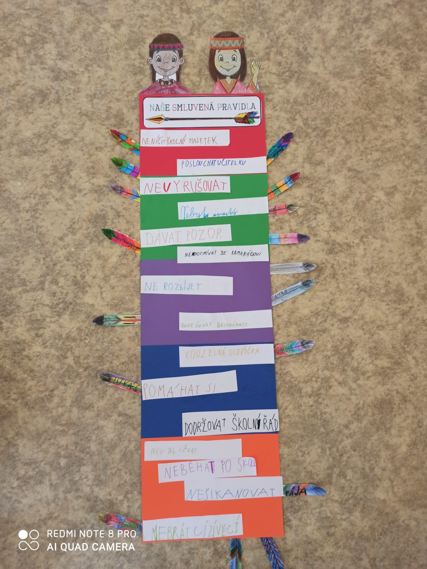 Začal nový školní rok. Hned druhý školní den se děti seznámily se školním řádem. Kromě toho si sestavily pravidla chování ve třídě, které stvrdily indiánskou přísahou. Byl také čas pochlubit se zážitky z prázdnin. K tomu nám posloužila hra ve skupinkách a tzv. poprázdninové bingo. Všichni se měli fajn, prázdniny si užili na maximum.