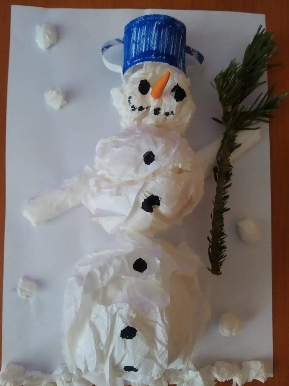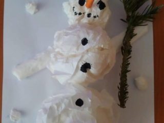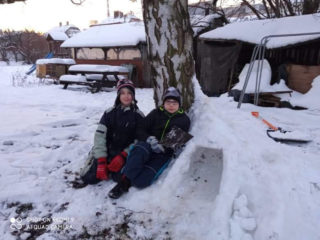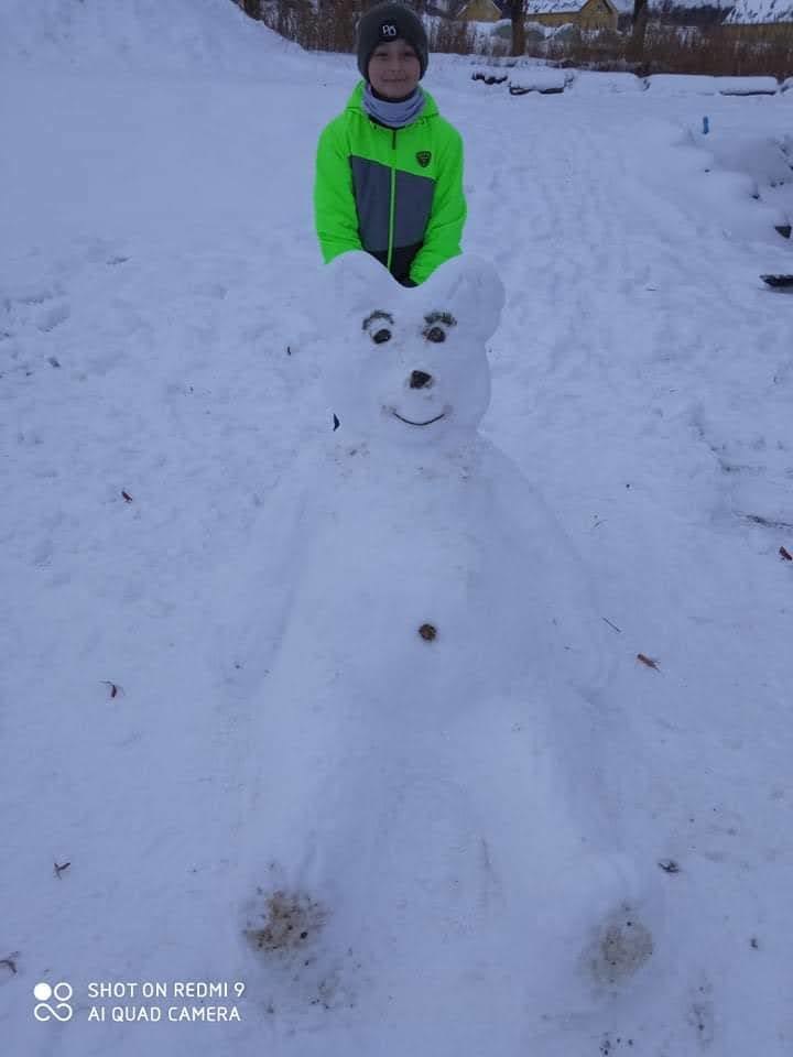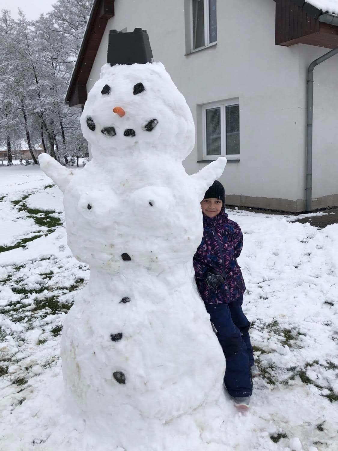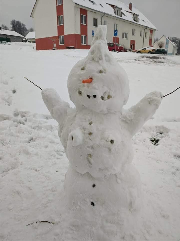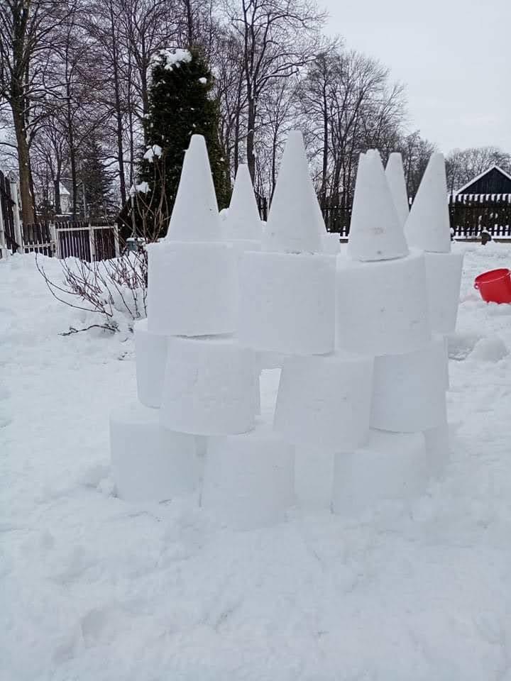 I za této složité situace musíme plnit úkoly do výchov. Protože nasněžilo, dostaly děti za úkol postavit něco ze sněhu. Některé děti to stihly, než sníh roztál. Ostatní děti si poradily jinak a použily různé materiály. Výtvory se dětem povedly a navíc vypadá, že si to i užily.