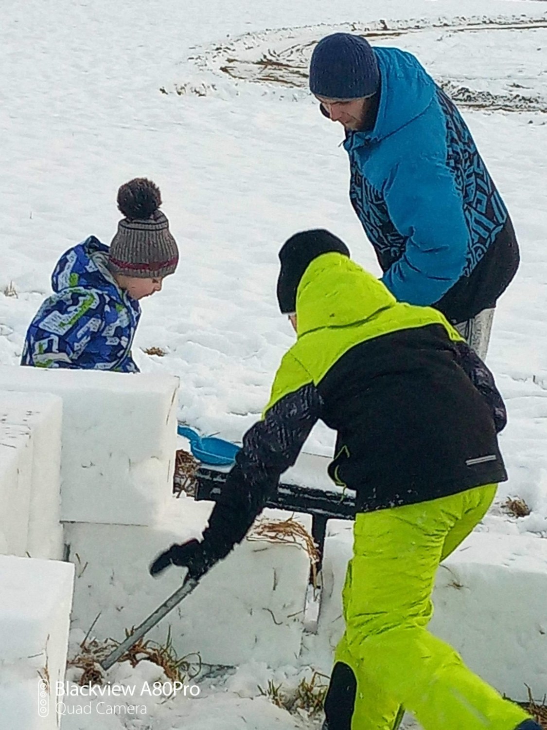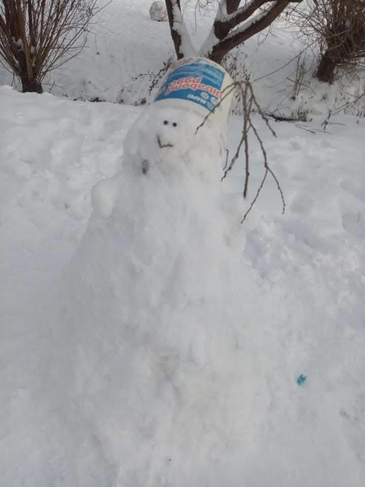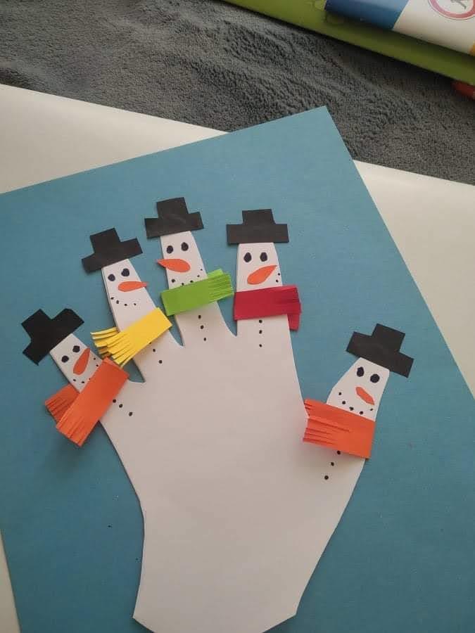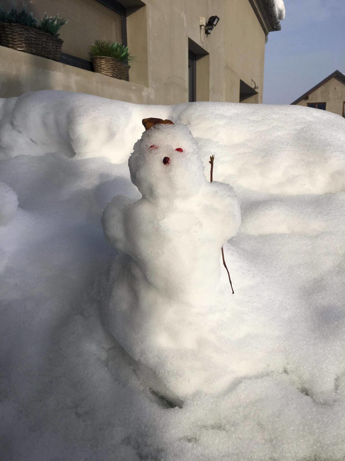 I za této složité situace musíme plnit úkoly do výchov. Protože nasněžilo, dostaly děti za úkol postavit něco ze sněhu. Některé děti to stihly, než sníh roztál. Ostatní děti si poradily jinak a použily různé materiály. Výtvory se dětem povedly a navíc vypadá, že si to i užily.