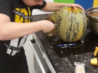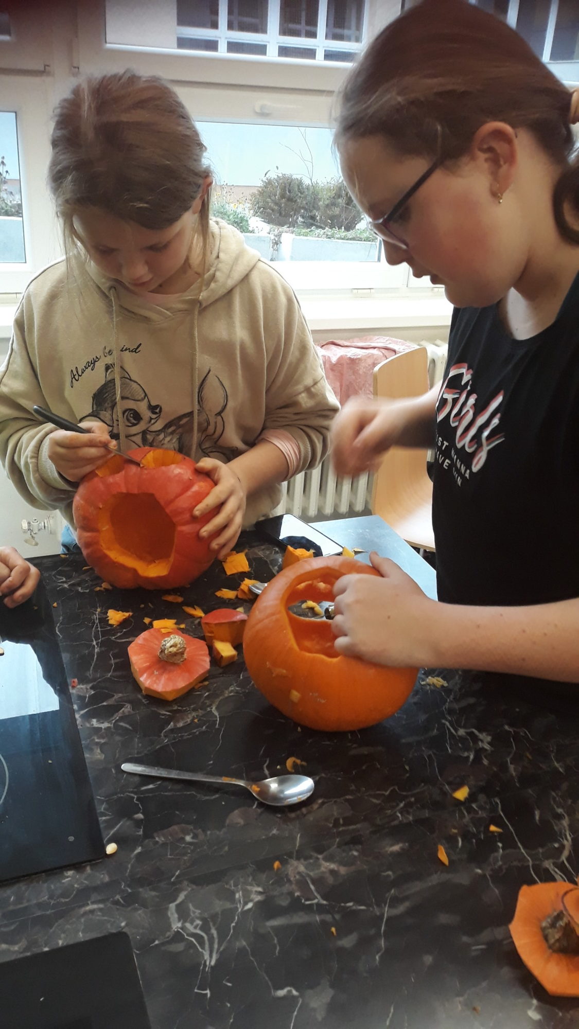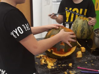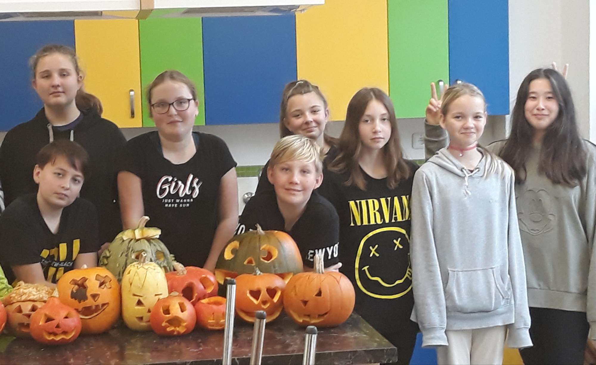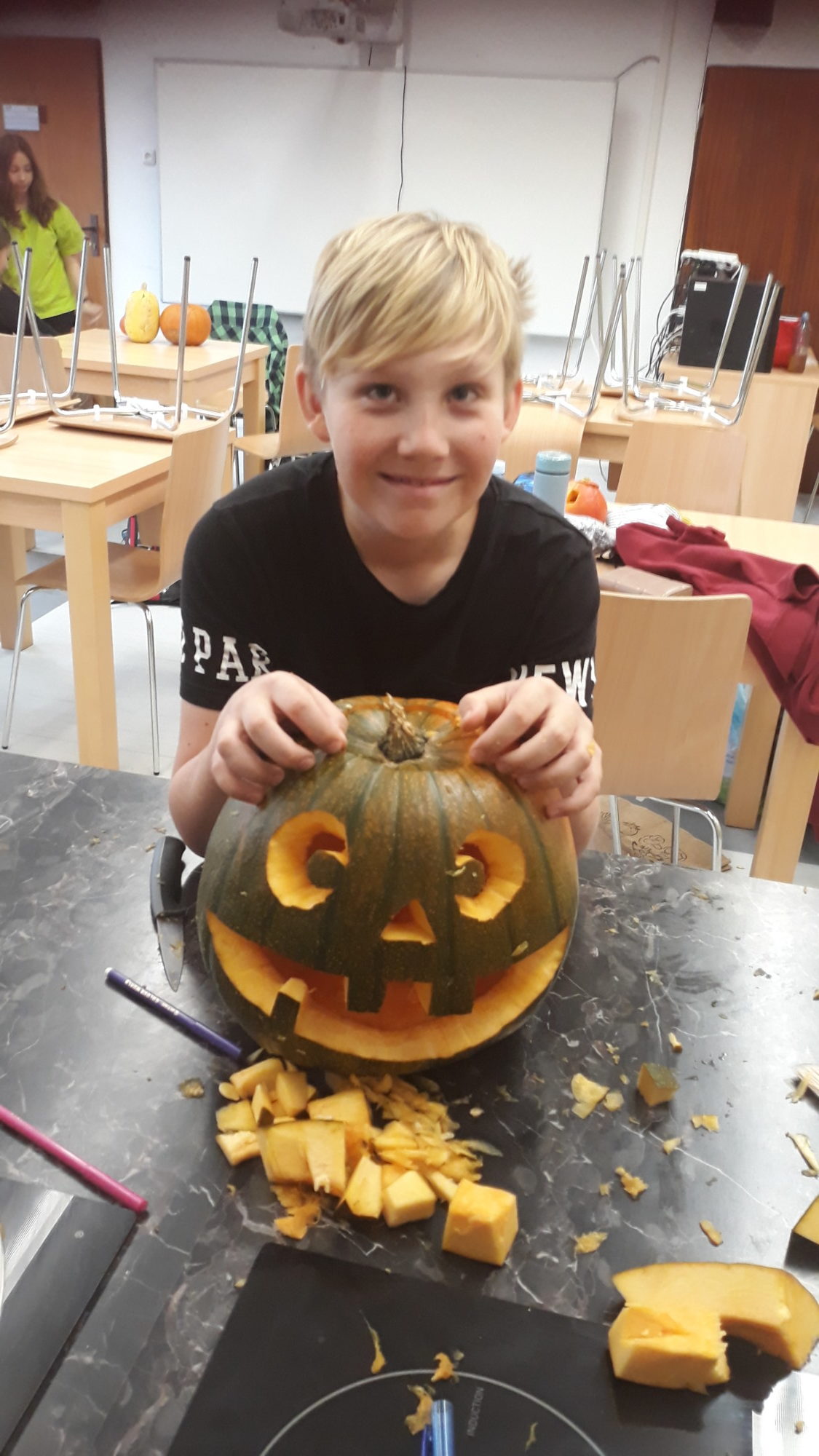 V úterý 2. listopadu jsme se se zpožděním pustili do vyřezávání halloweenských dýní. Práce nás moc bavila a výsledek byl skvělý. Dýně jsme si nakonec odnesli domů a těšili se , až si je večer doma rozsvítíme.