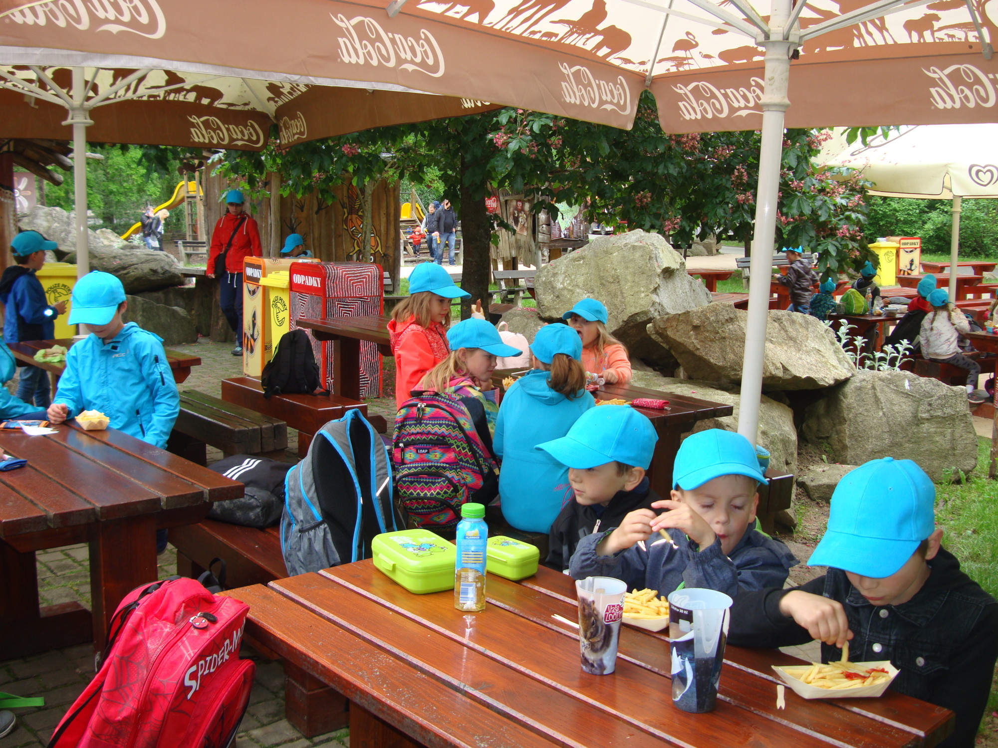 (i paní učitelky) bylo krmení a hlazení rejnoků. Dětem se líbily také malé opičky a „opalující se“ surikata.