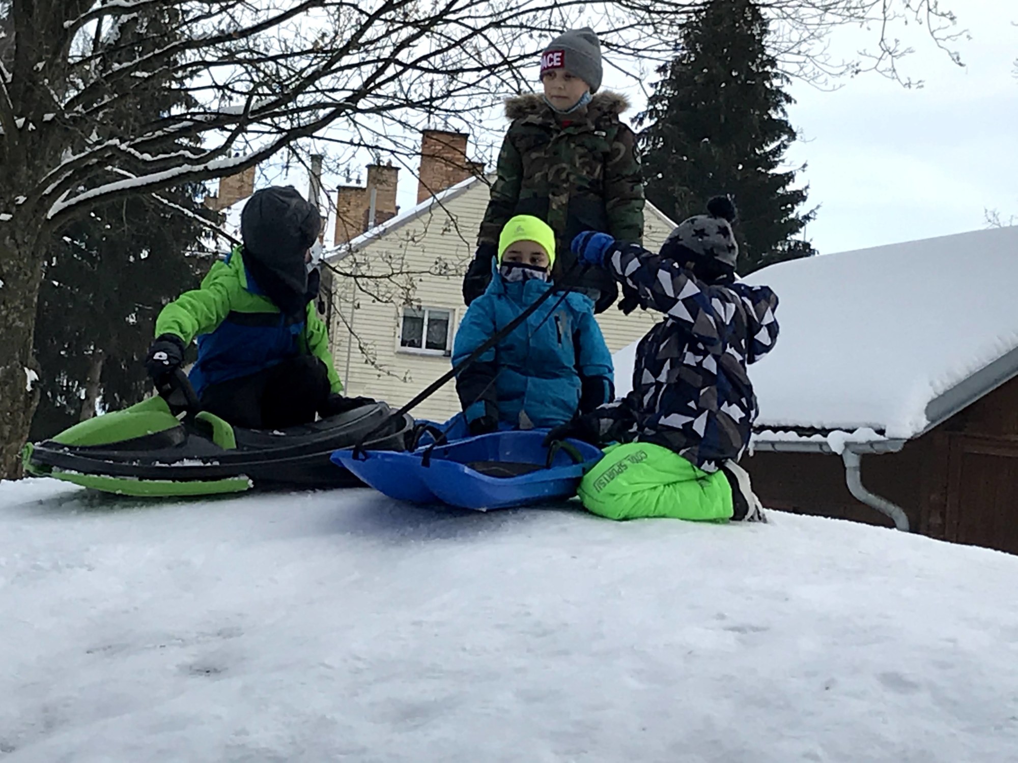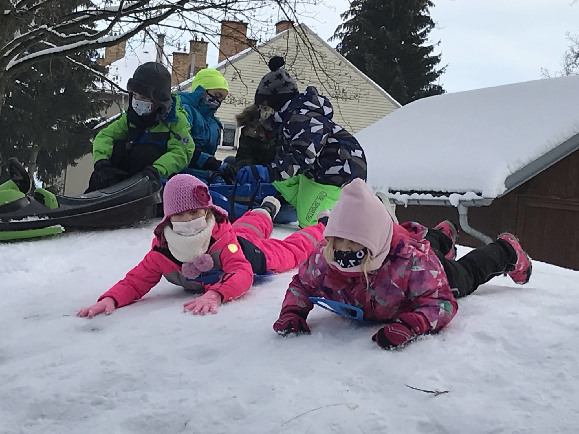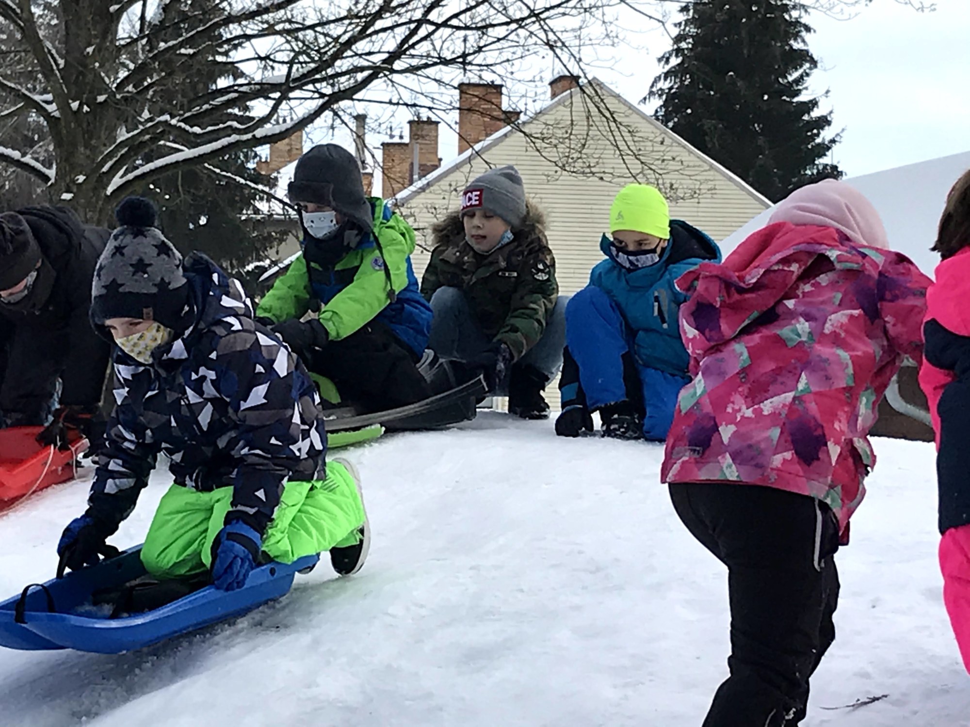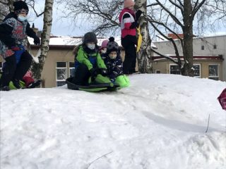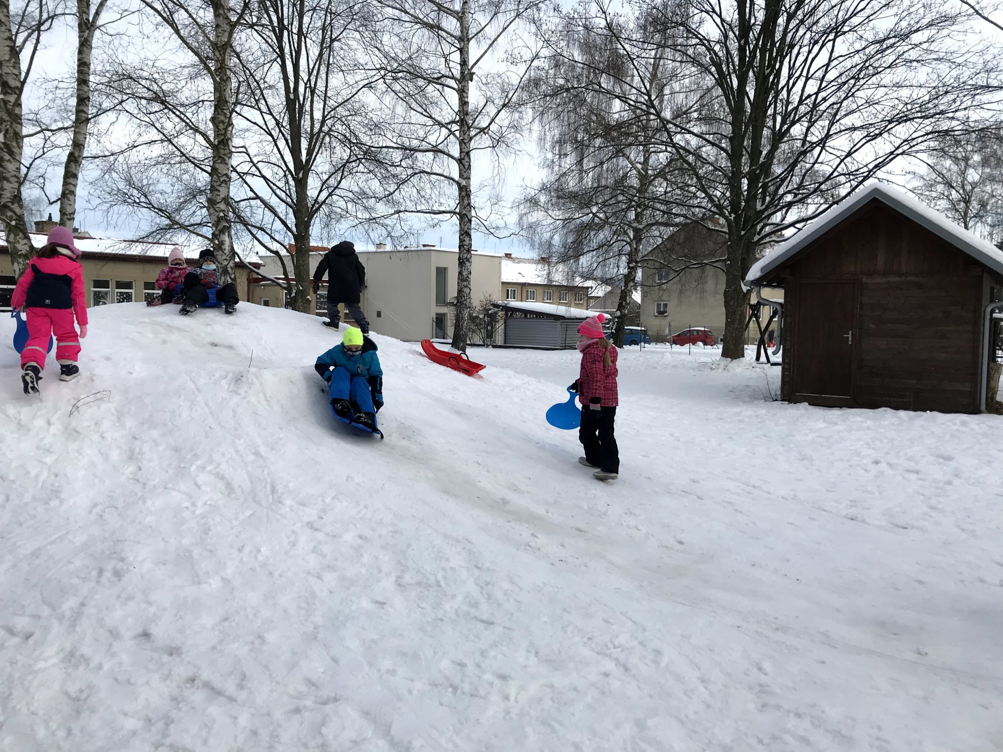 Během měsíců ledna i února napadlo hodně sněhu. Děti ze školní družiny každý den po obědě trávily nejméně hodinu venku. Na zahradě sáňkovaly, bobovaly, a také stavěly sněhuláky. Bylo to moc fajn, protože po dlouhé době si užily sněhu.
