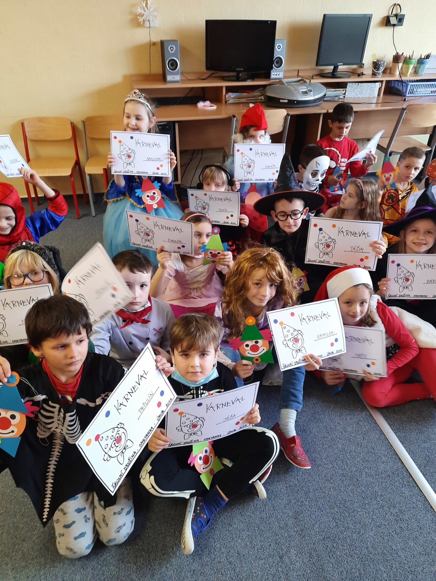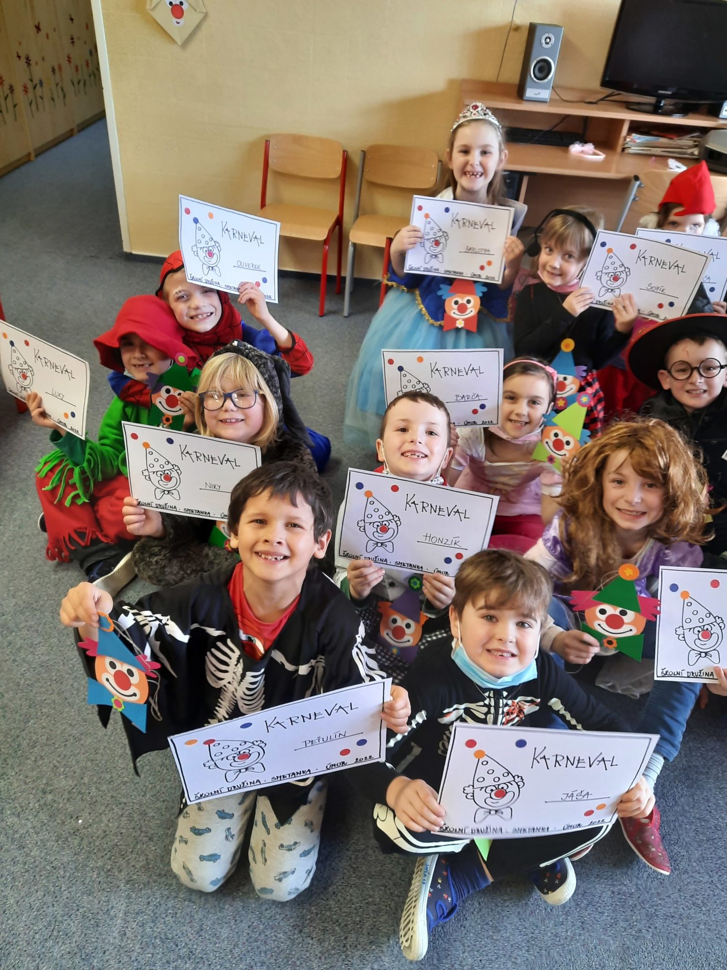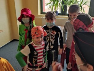 Poslední únorový čtvrtek ve družince patřil karnevalovému „řádění“. Děti se oblékly do barevných kostýmů a zahalily do tajuplných masek.